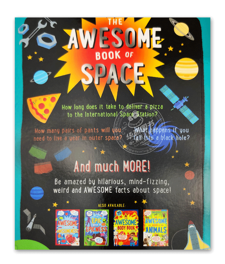 本书The Awesome Book of Space《太空之书》是Adam Frost为儿童编写的“宇宙认知”百科书。通过书中直观生动的插图、以及简单易懂的文字,孩子们将发现关于我们的星球、太阳系等惊人的事实,对我们的宇宙也将有一个全新的认识! 你知道开车去太阳/冥王星要花多长时间吗? 你想去太空度假吗? 海王星上的天气怎么样? 人类在月球上留下了多少吨垃圾? 关于宇宙的各种有趣、甚至看似“荒谬”的事实,都被囊括在这本很棒的书里。小朋友们一起阅读这本书,开启一段奇妙的宇宙认知之旅吧! Do you know how long it would take you to drive to the sun? Or whether you'd like to go on a space vacation? Be truly amazed by these awesome facts about our planet, our solar system, and our universe! Find out: How long it would take you to drive to Pluto? What the weather is like on Neptune? How many tonnes of litter humans have left on the moon? And did you know that next time you look up to the sky and see a shooting start it could actually be a pair of pants? On the ISS undies are ejected into space burning up in the Earth's atmosphere! Find out hilarious, intriguing and ridiculous facts with this awesome book! Are you ready for another EPIC book from the winner of the Blue Peter Book Award 2016 (Best Book with Facts)? Ready, set, BLAST OFF!