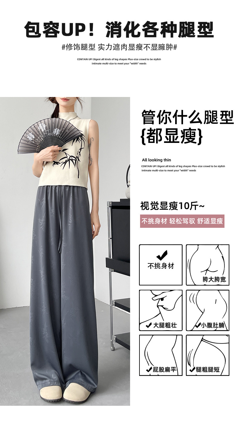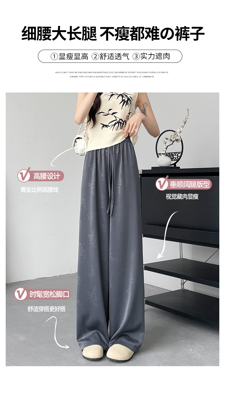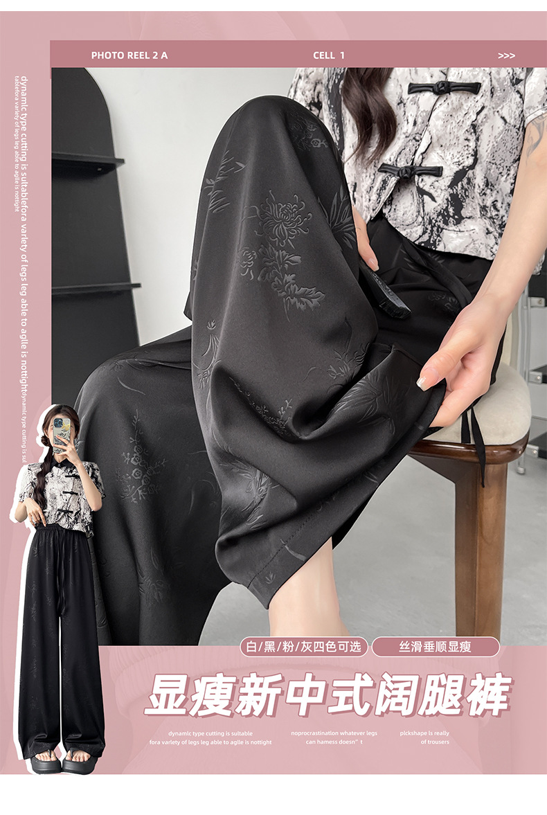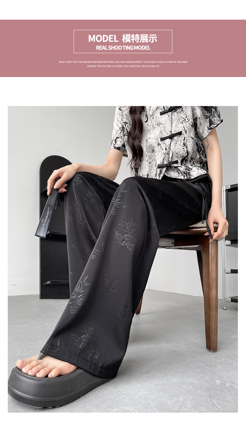 烟雨入江南,花草衔提花!【新中式国风提花冰丝裤】舒适亲肤感,柔软透气不闷吸湿性强,3D立体裁剪设计特色花纹面料,轻薄美观冰凉速干,拯救微胖身材