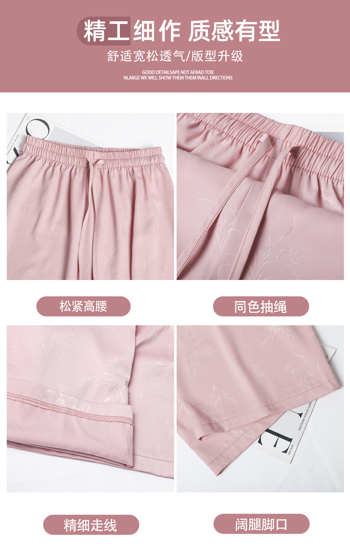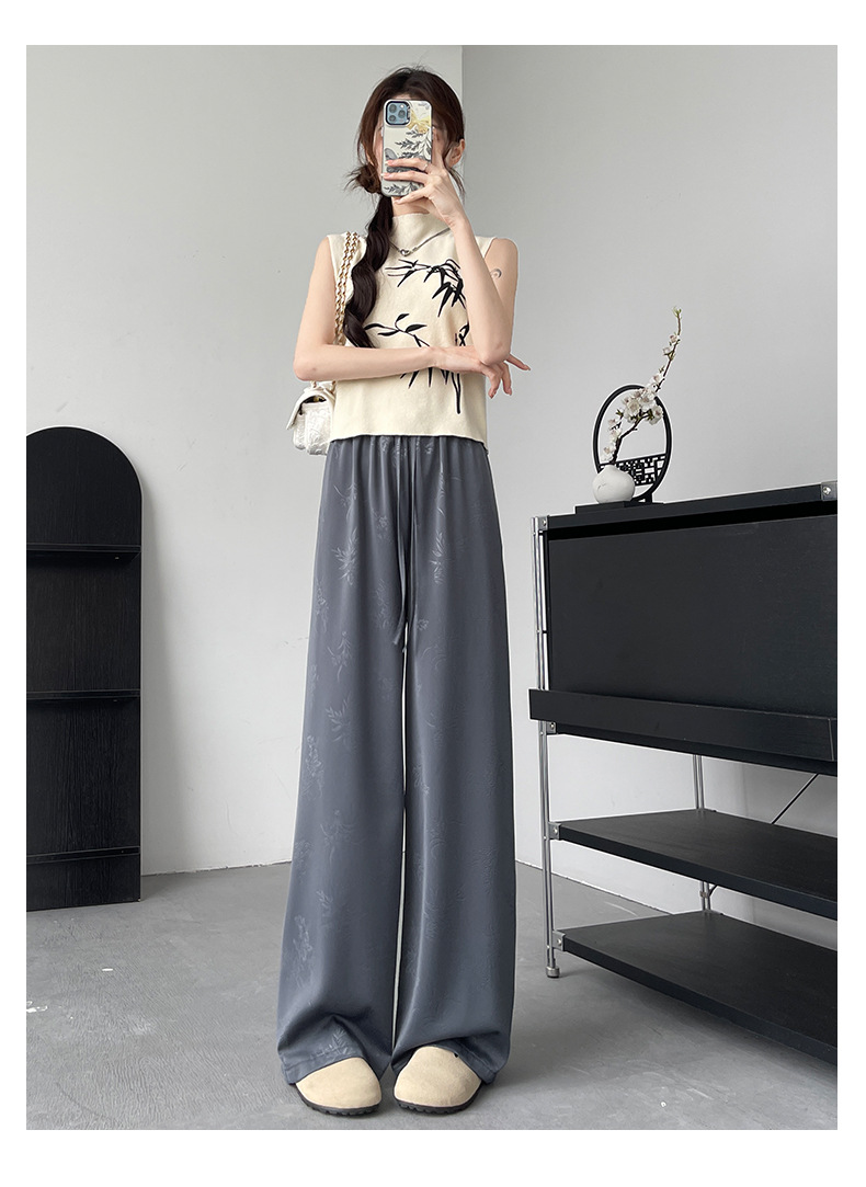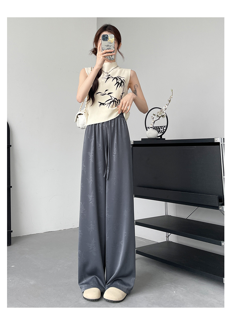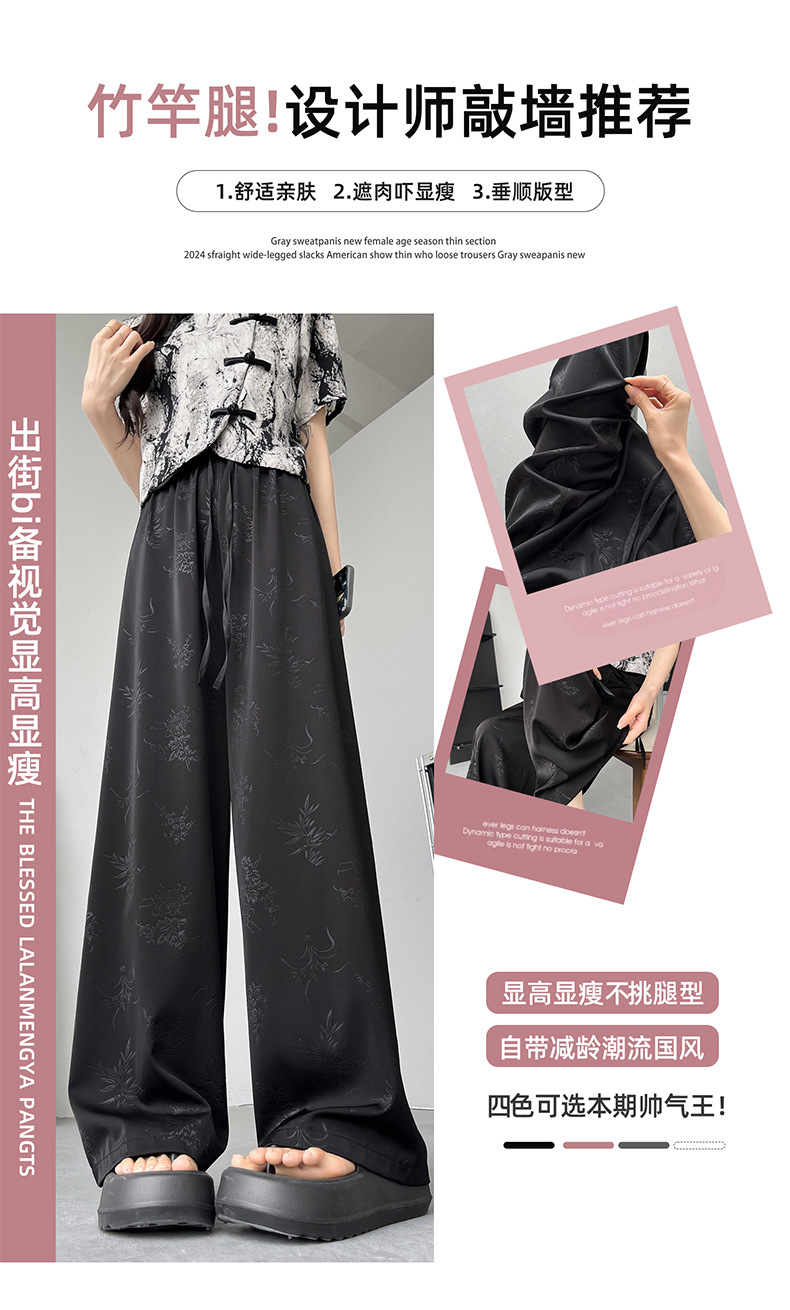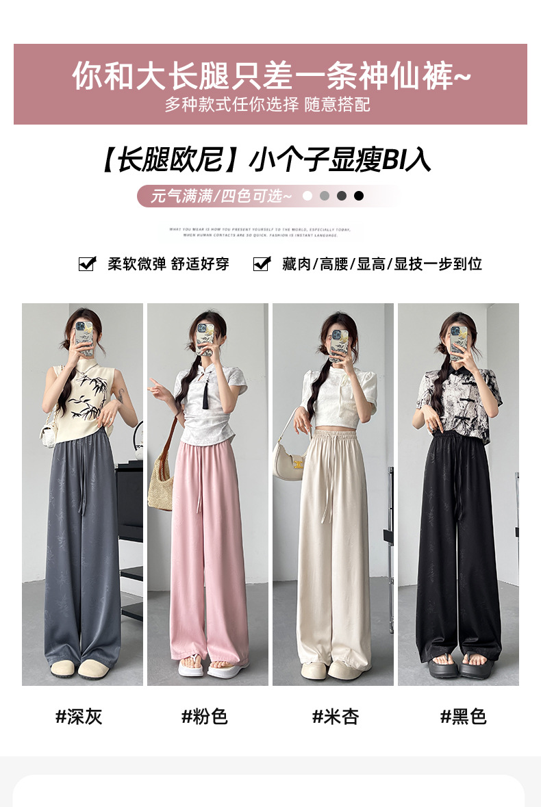 烟雨入江南,花草衔提花!【新中式国风提花冰丝裤】舒适亲肤感,柔软透气不闷吸湿性强,3D立体裁剪设计特色花纹面料,轻薄美观冰凉速干,拯救微胖身材