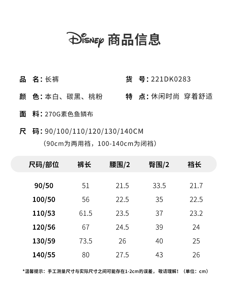 迪士尼童装女童运动休闲裤春秋季新款中大童宝宝长裤