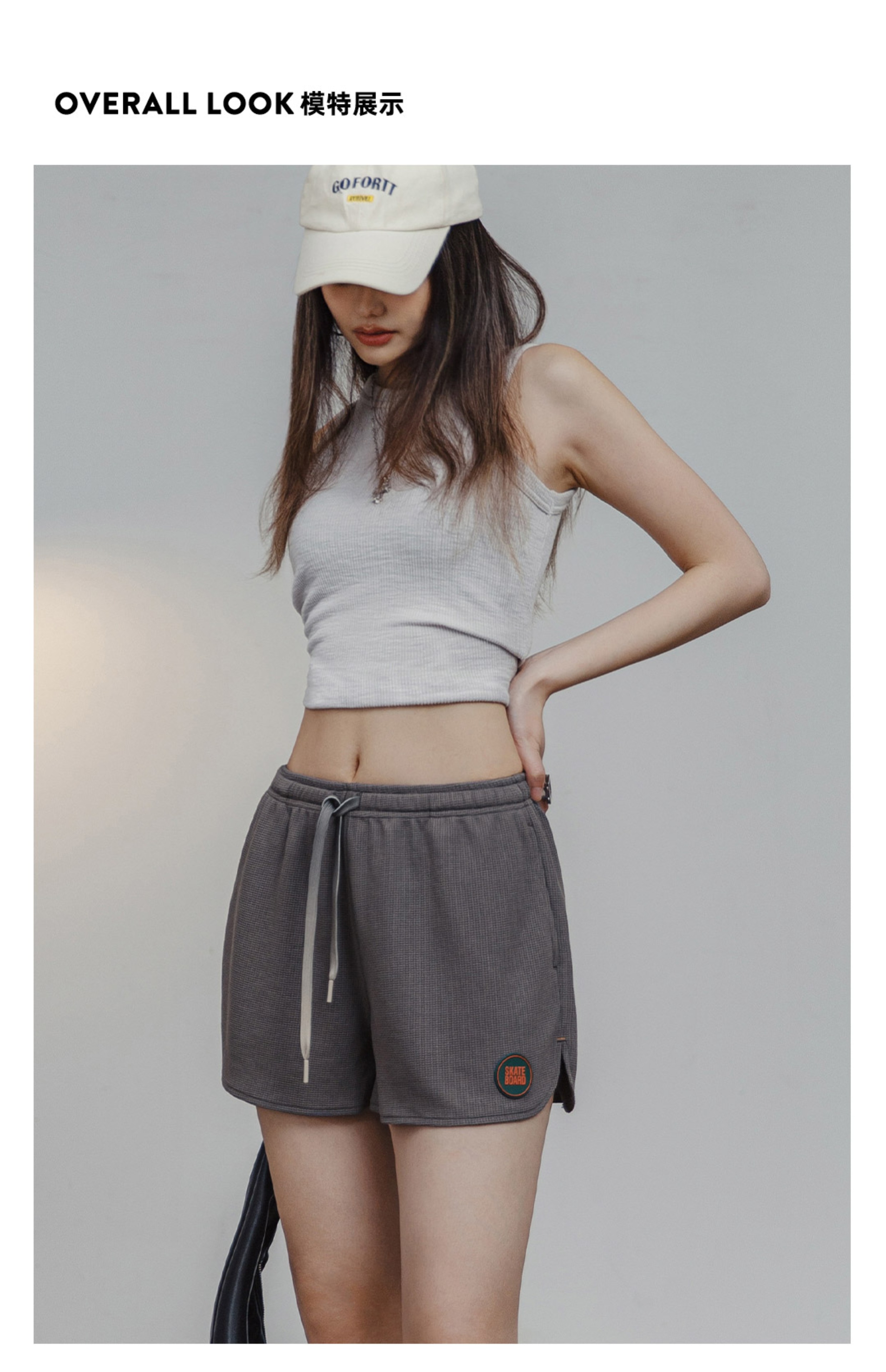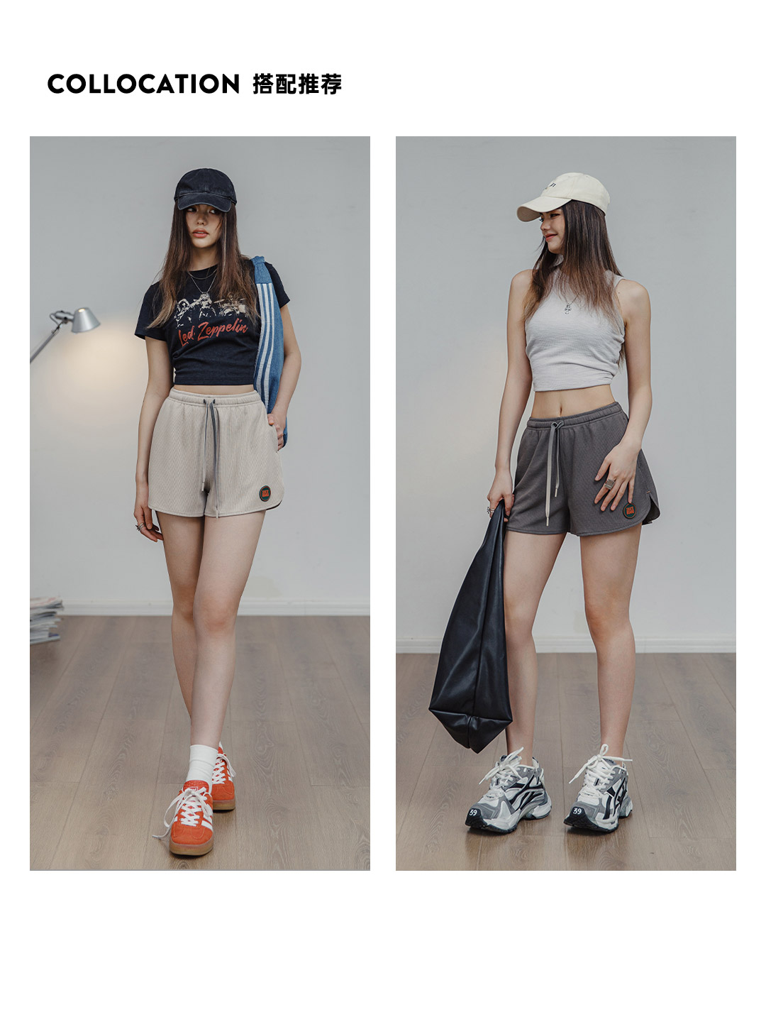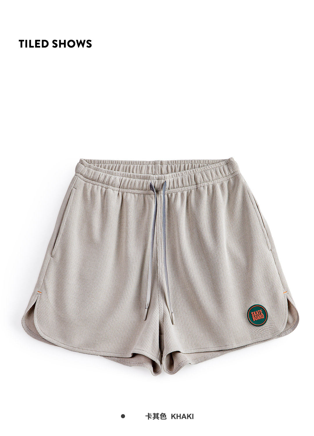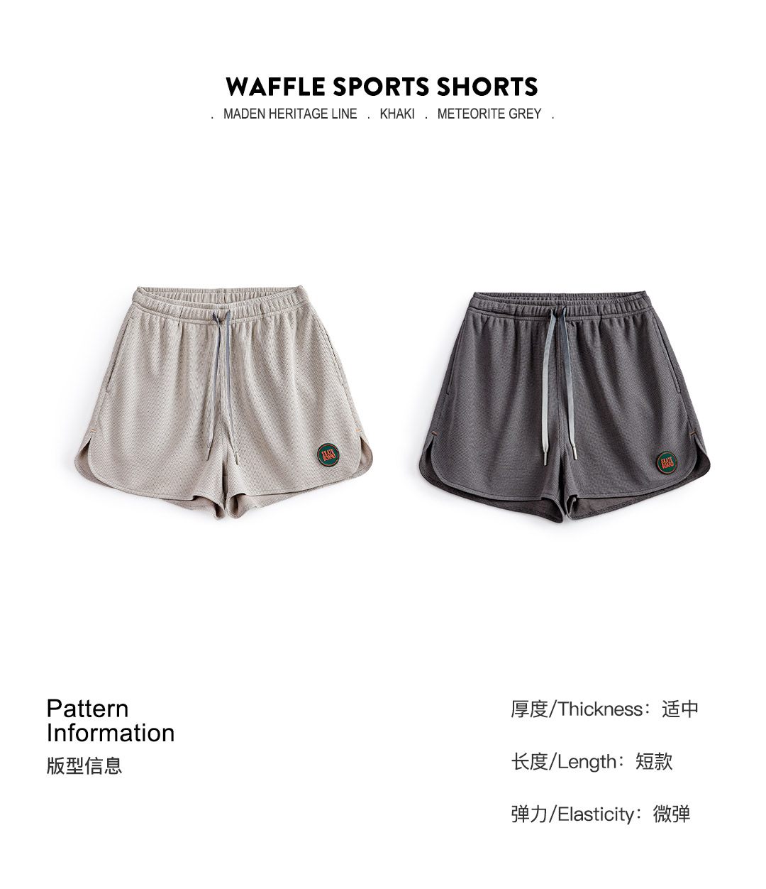马登华夫格短裤松紧腰运动健身热裤休闲宽松外穿家居跑步裤子夏女