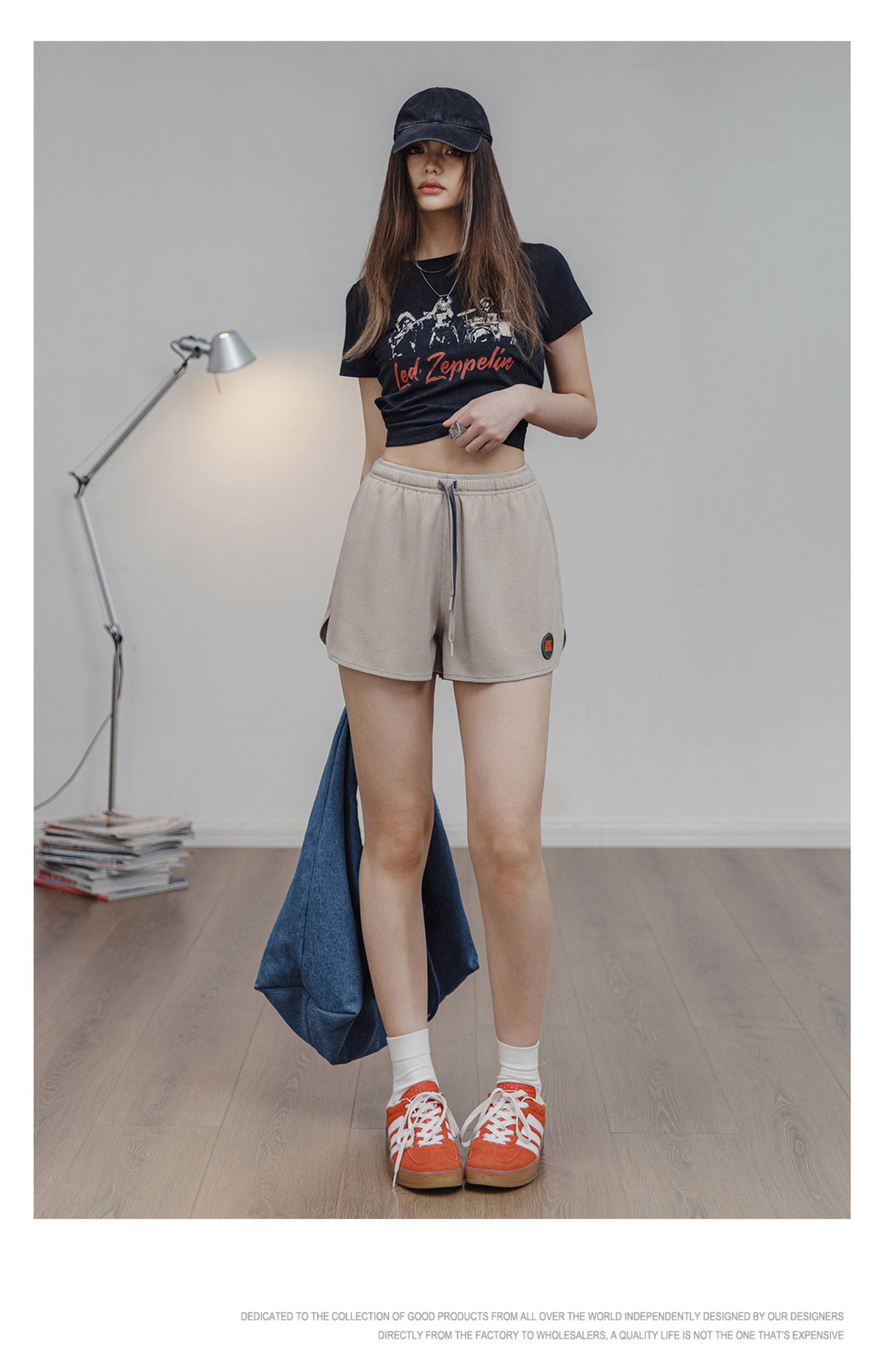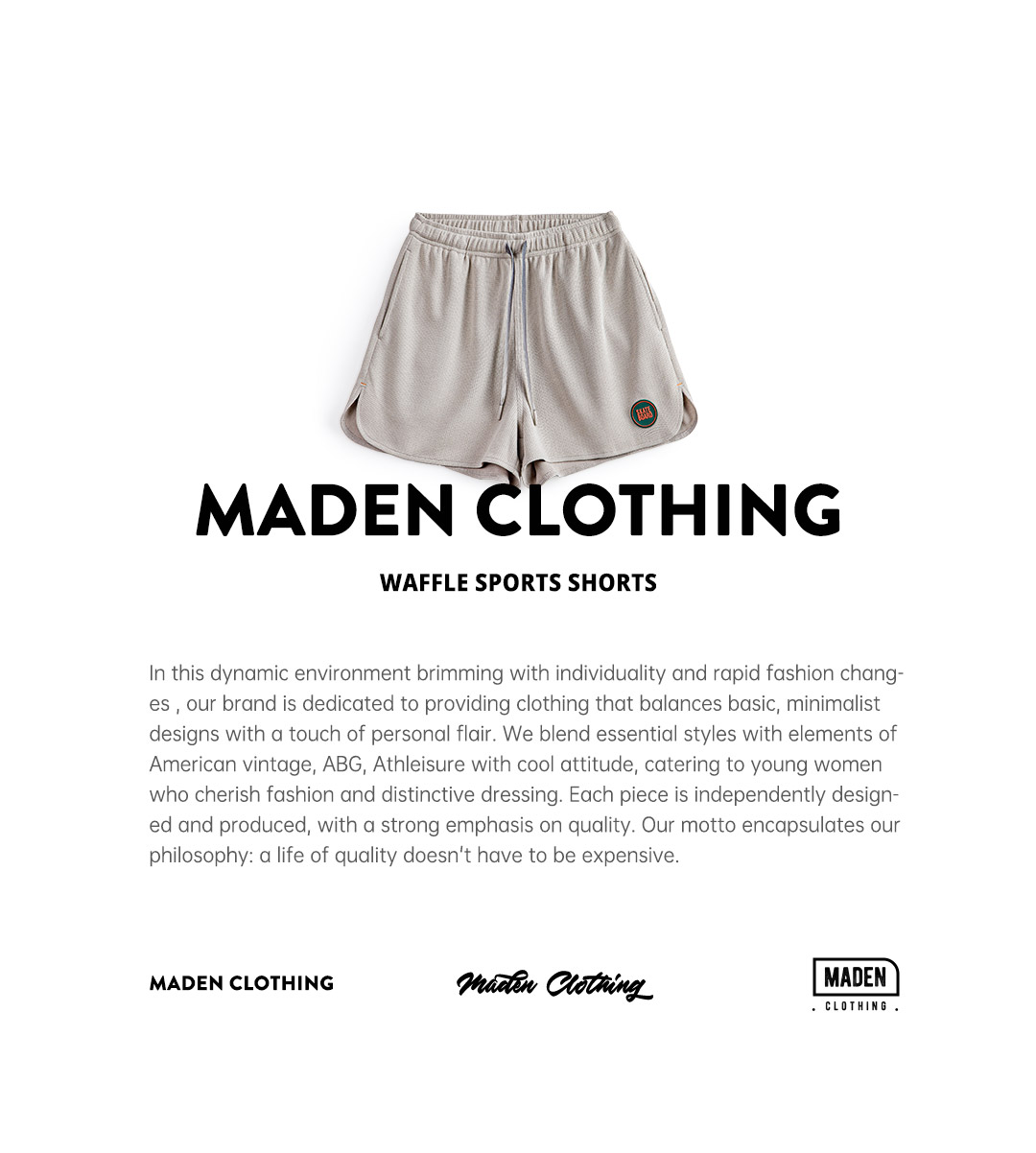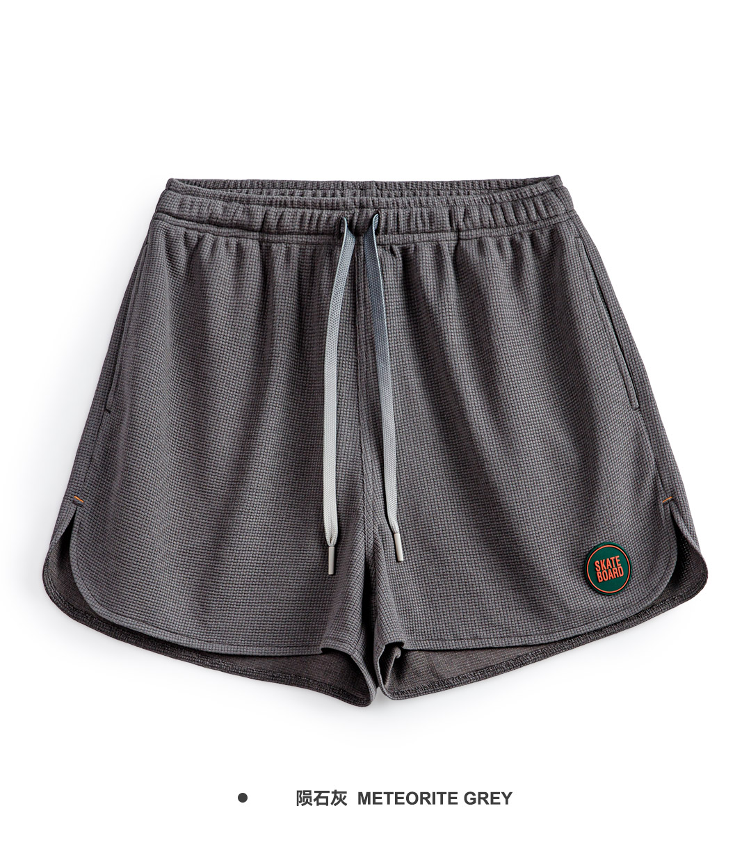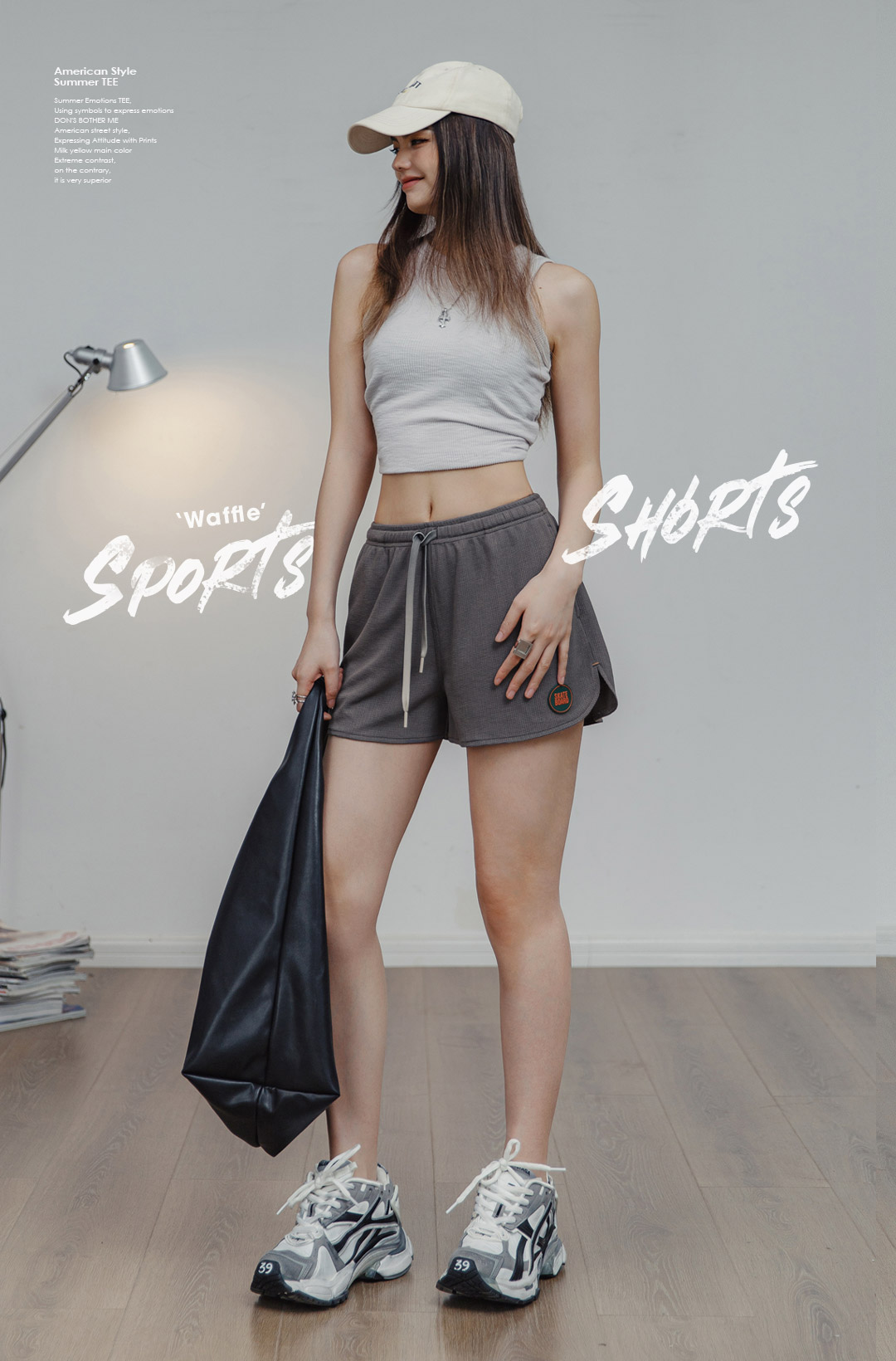 马登华夫格短裤松紧腰运动健身热裤休闲宽松外穿家居跑步裤子夏女