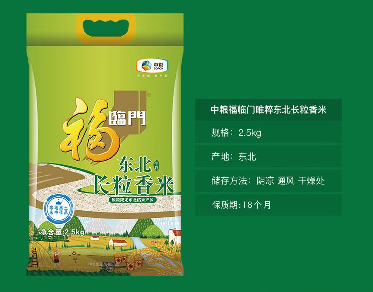 中粮福临门唯粹东北长粒香米2.5kg/袋【CZ】