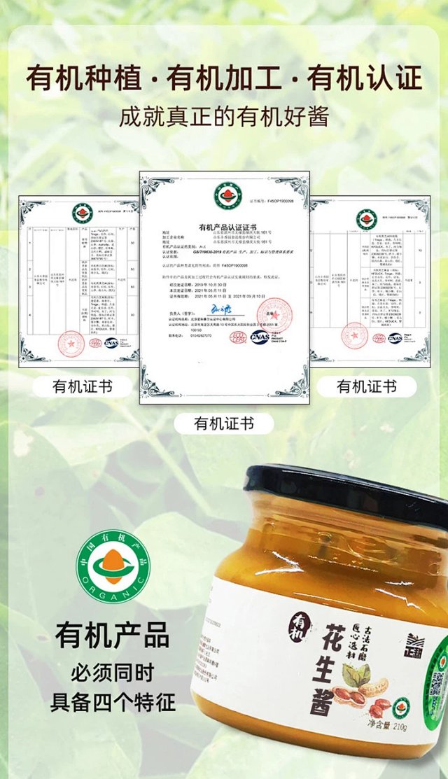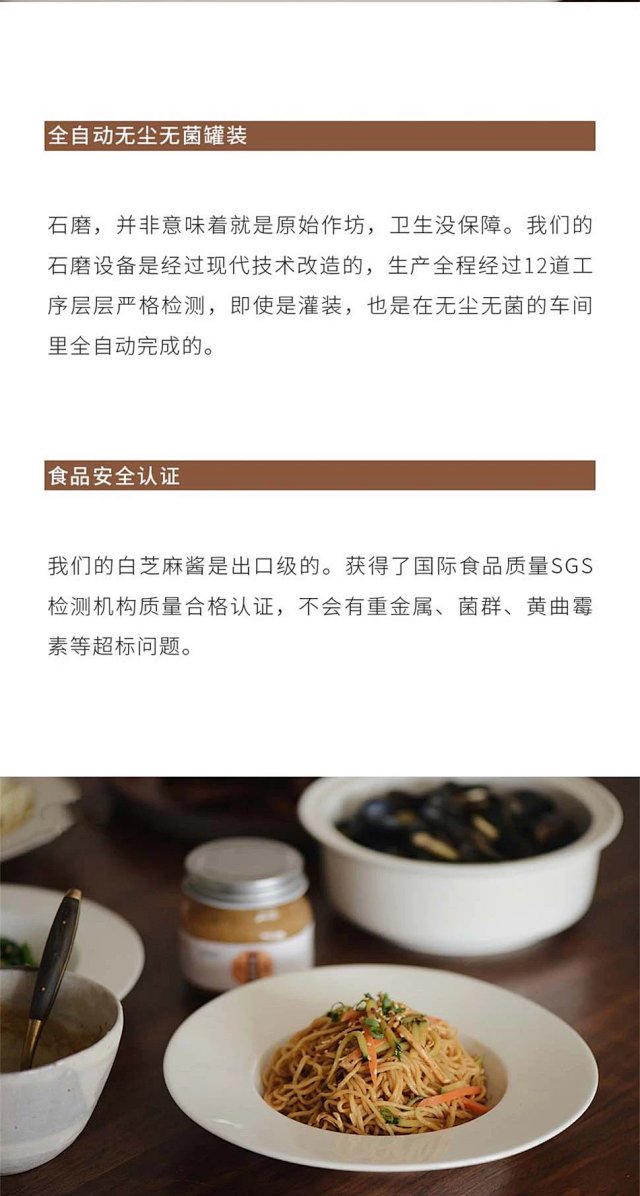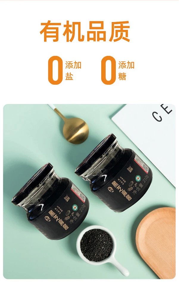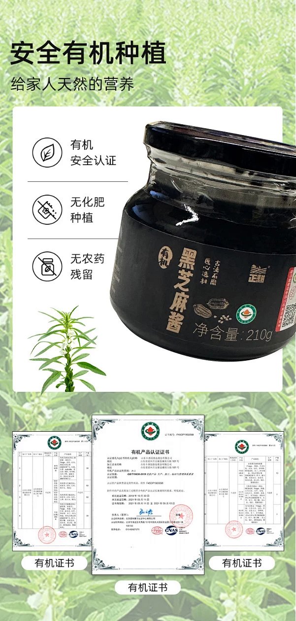 【有机黑、白芝麻酱、花生酱】有机认证、无化学添加剂,无添加盐,无添加糖,低温加工营养不流失