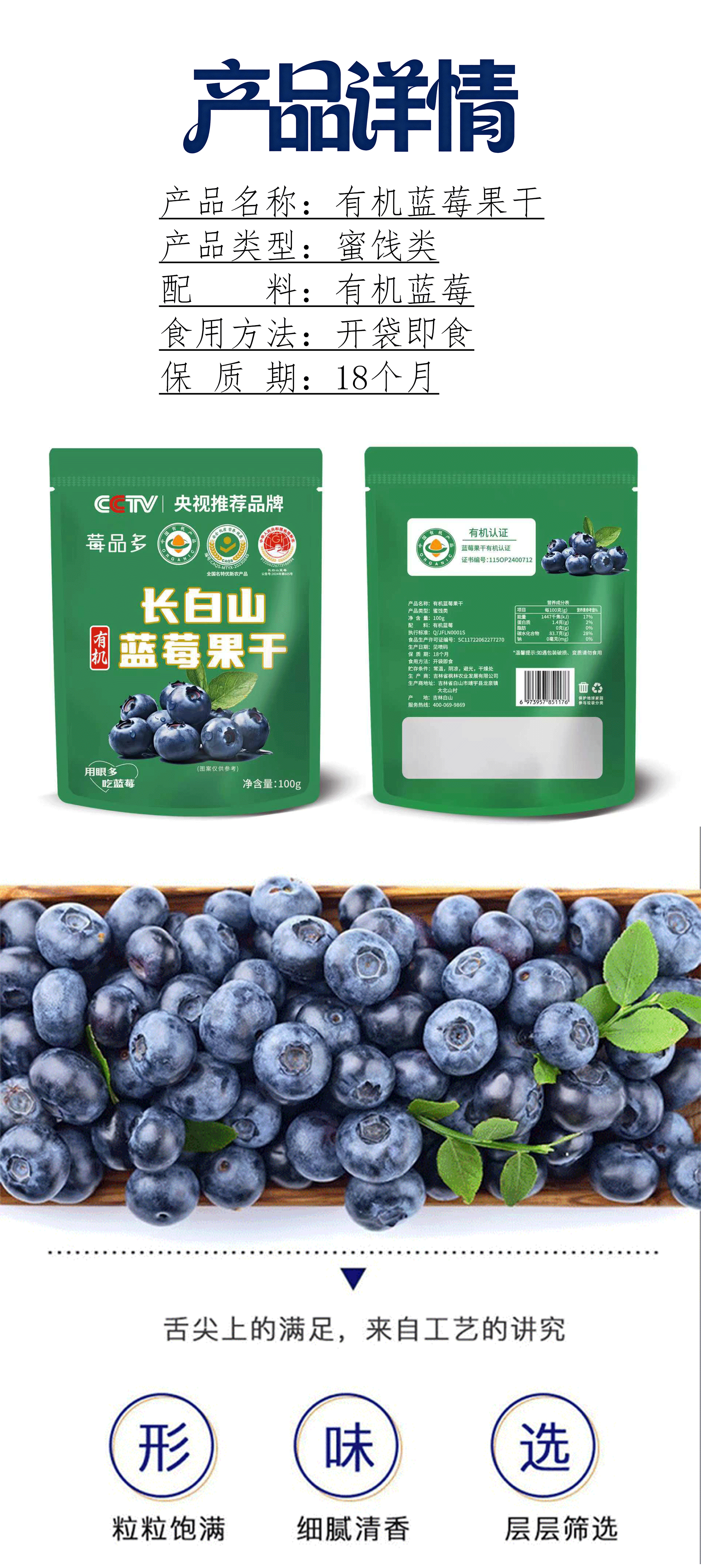【品名】莓品多 长白山蓝莓果干 酸甜可口 营养丰富 100g*5包 【规格】100g*5包 【产地】国内 【保质期】18个月 【发货包装】独立包装 【发货地】吉林 【发货快递】韵达、申通随机发 【不发货区域】新疆、西藏、港澳台 【补邮费地区】海南、内蒙古、甘肃、青海、宁夏+10元/单 【发货时效】48-72小时,周末节假日顺延 |