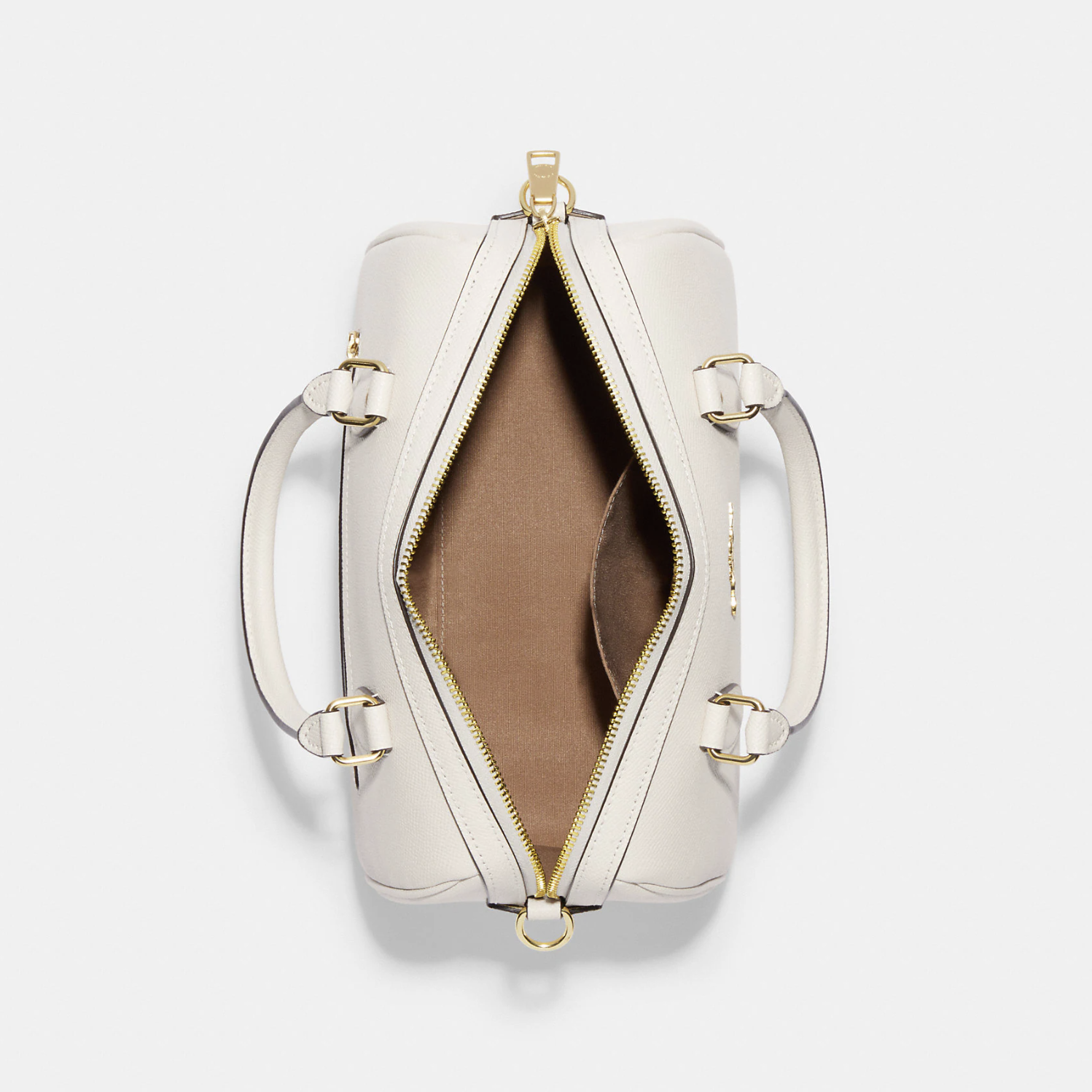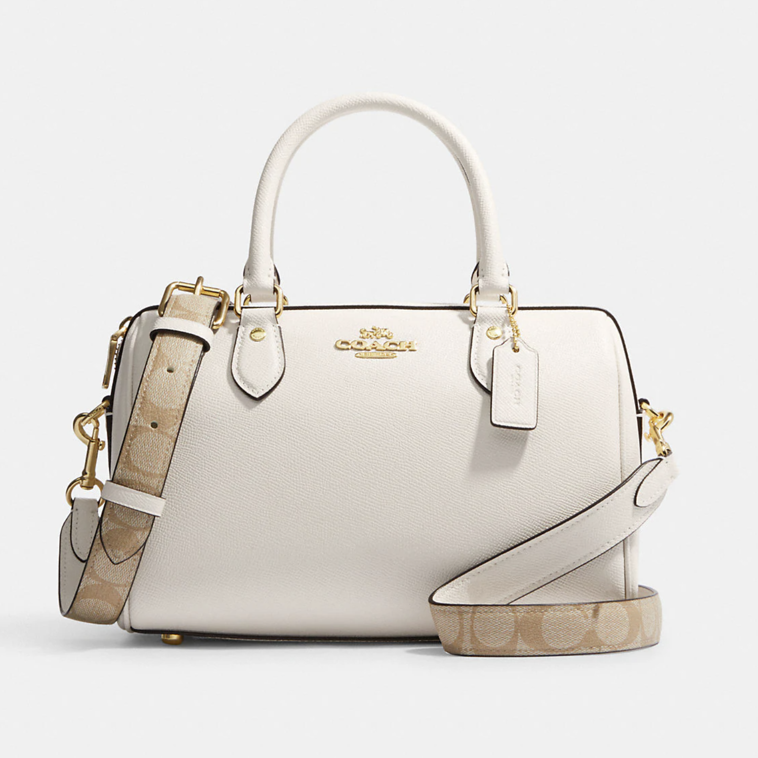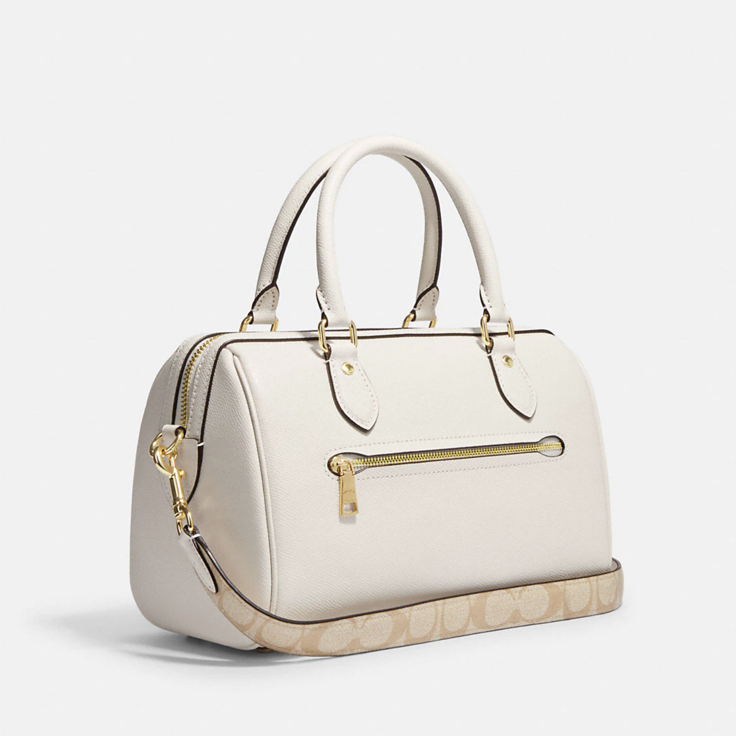 这个配色好看!Coach Rowan超经典波士顿包 白色配米色老花肩带 只要¥1450直邮到手