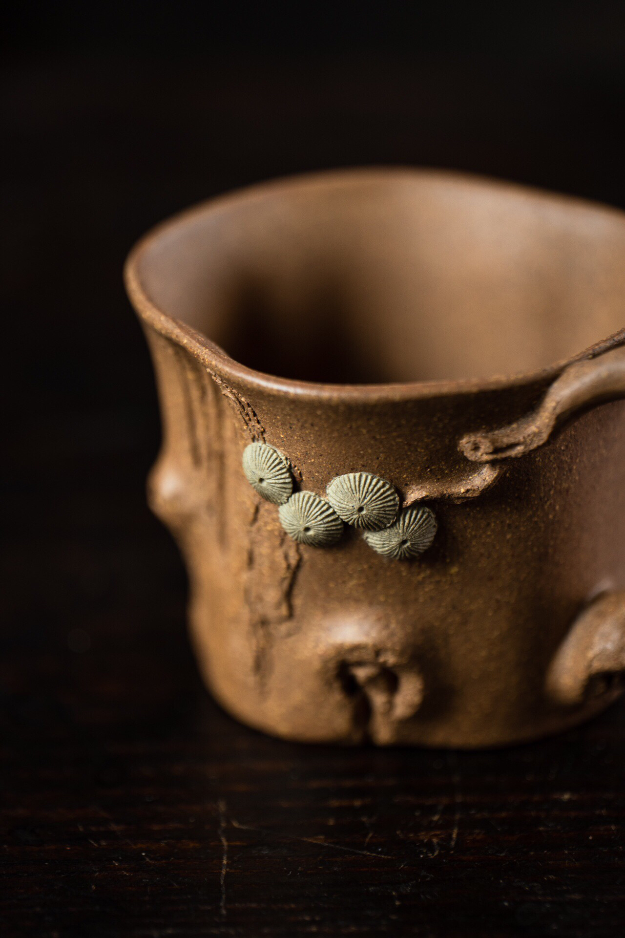 这一款集颜值和实用于一身的杯子,千万不要错过!陶手方勤平师从名家葛岳彬,数十年制作技艺炉火纯青。全手工共制作,线条流畅自然,以松桩为原型,仿生逼真,凹凸不平之感,体现了一种不一样的美!斑驳点缀,别有生趣。好段泥,易泡养,110cc的黄金容量,送礼或者自用的佳品,千万不要错过哦