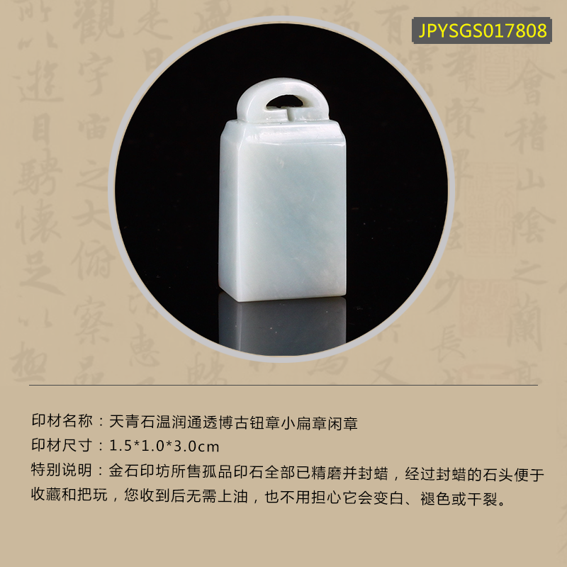 孤品17808天青石温润通透博古钮章小扁章闲章1.5*1.0*3.0cm