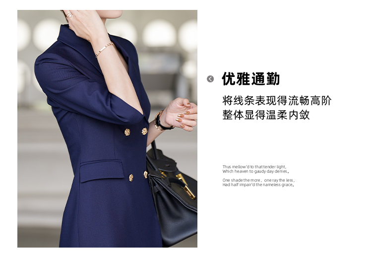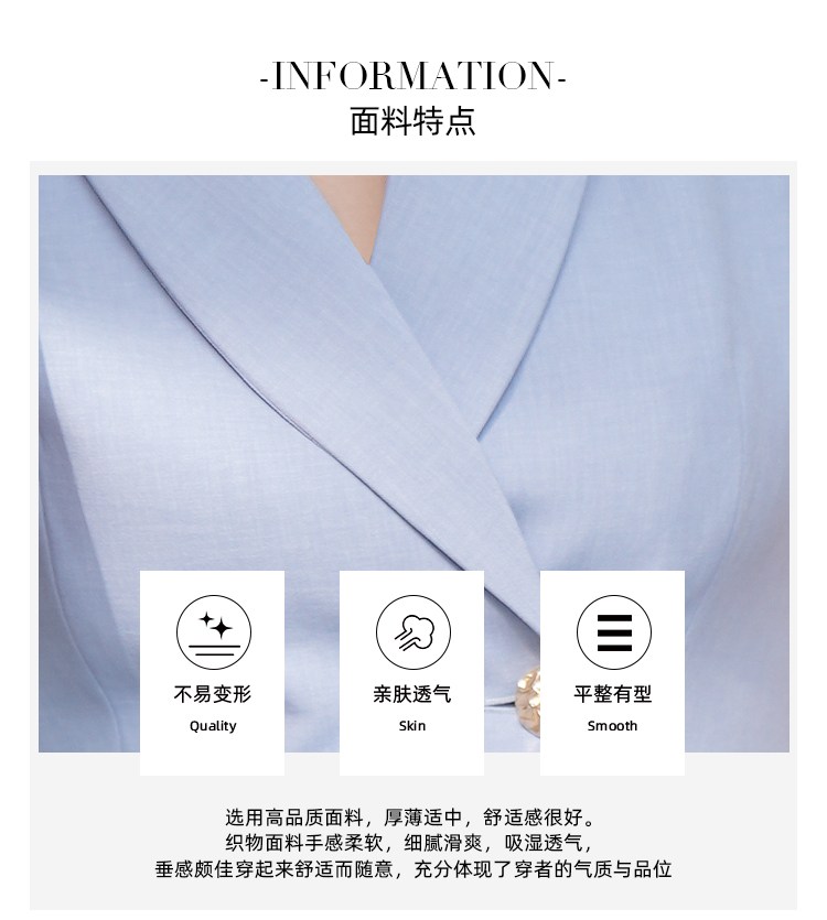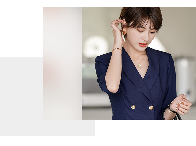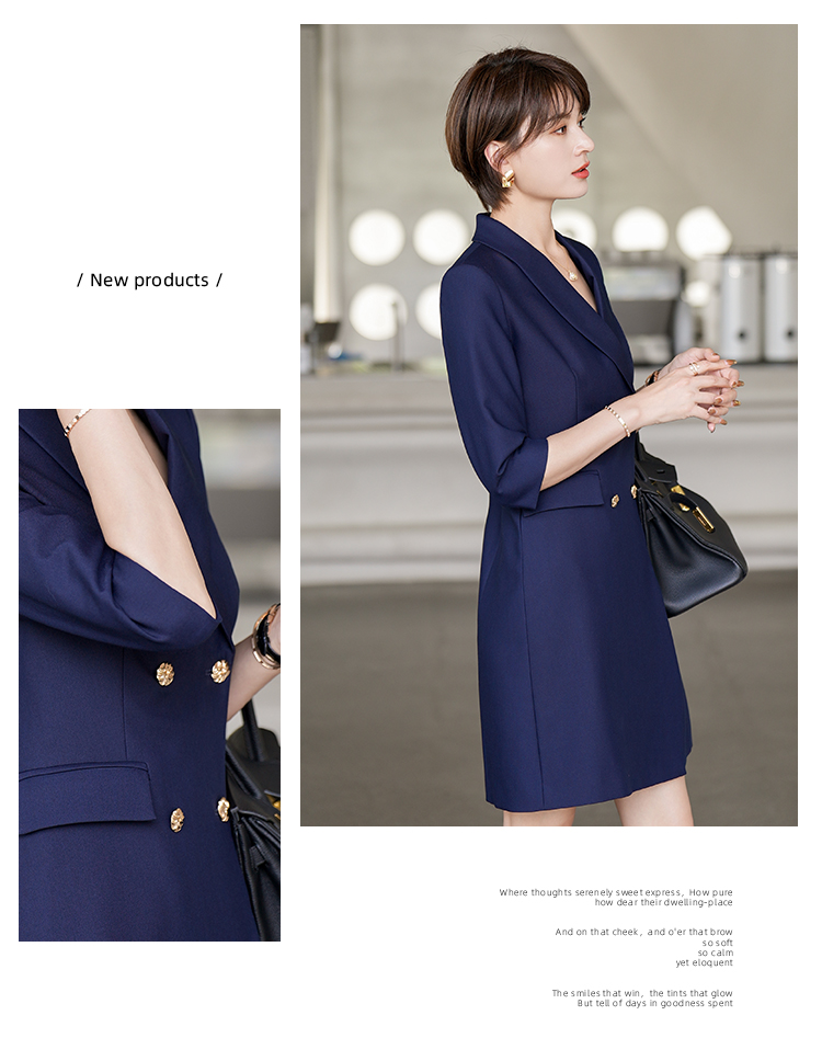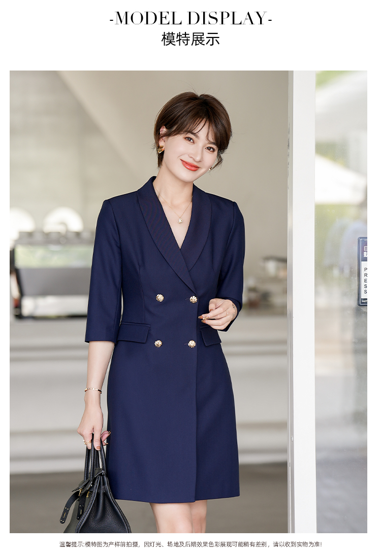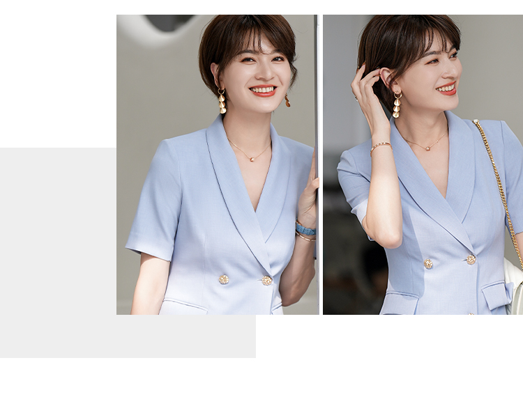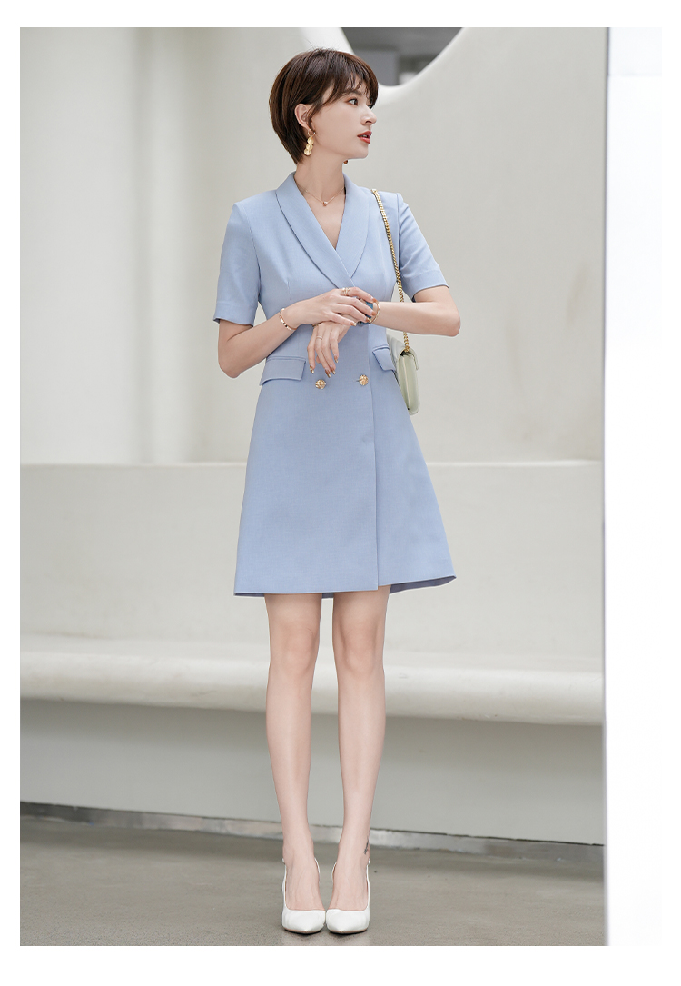 蓝色连衣裙女夏短袖薄款2023新款双排扣西装裙正装工作服