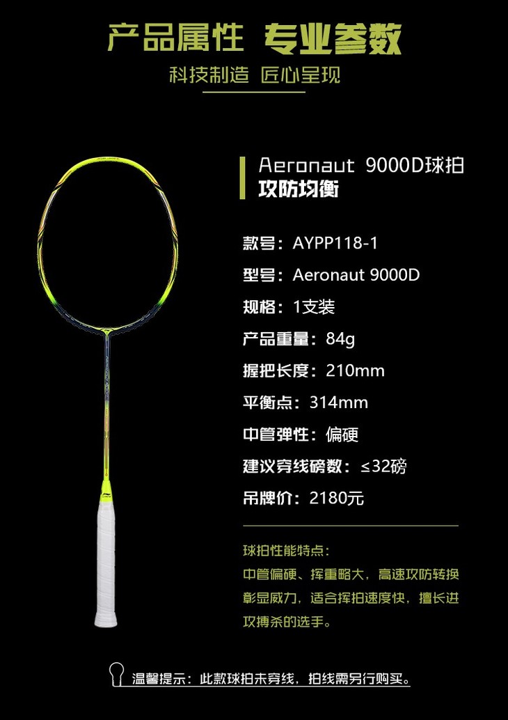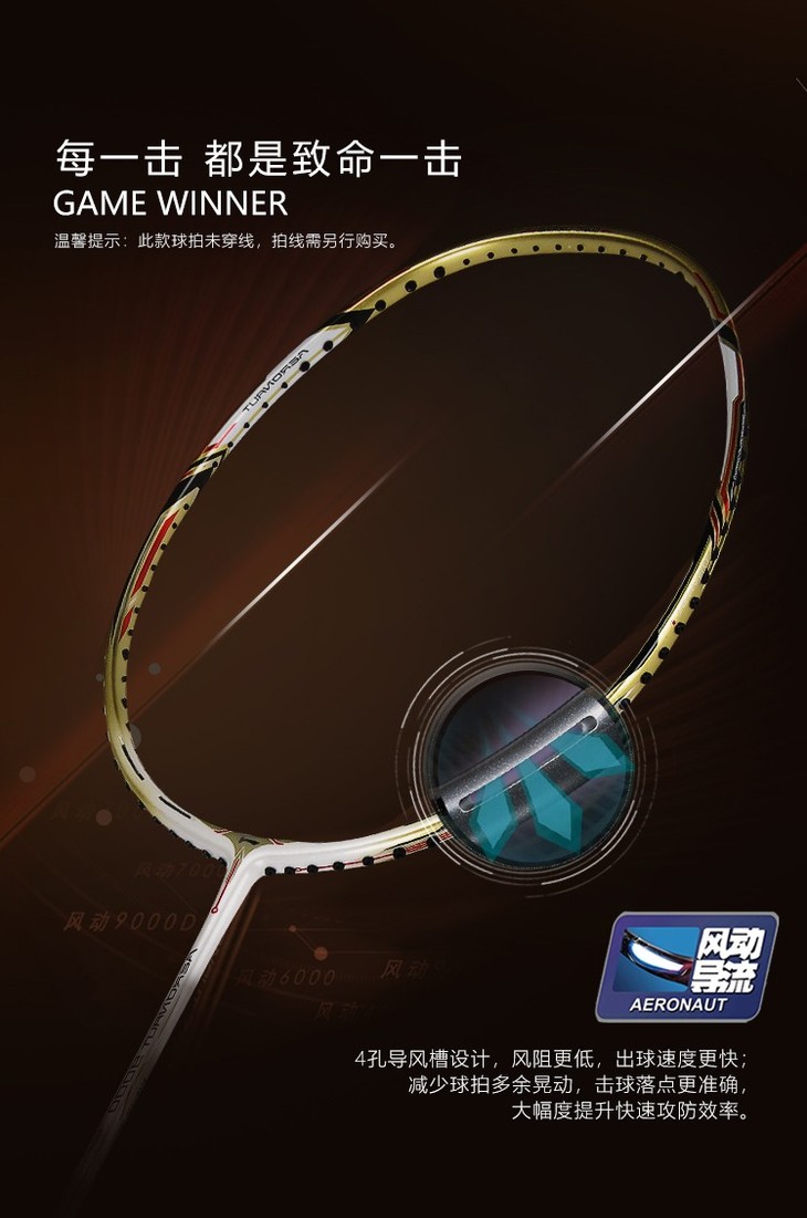 李宁羽毛球拍风动9000白金/风动9000C/风动9000D/风动9000I 李宁高端拍风动导流【特卖】
