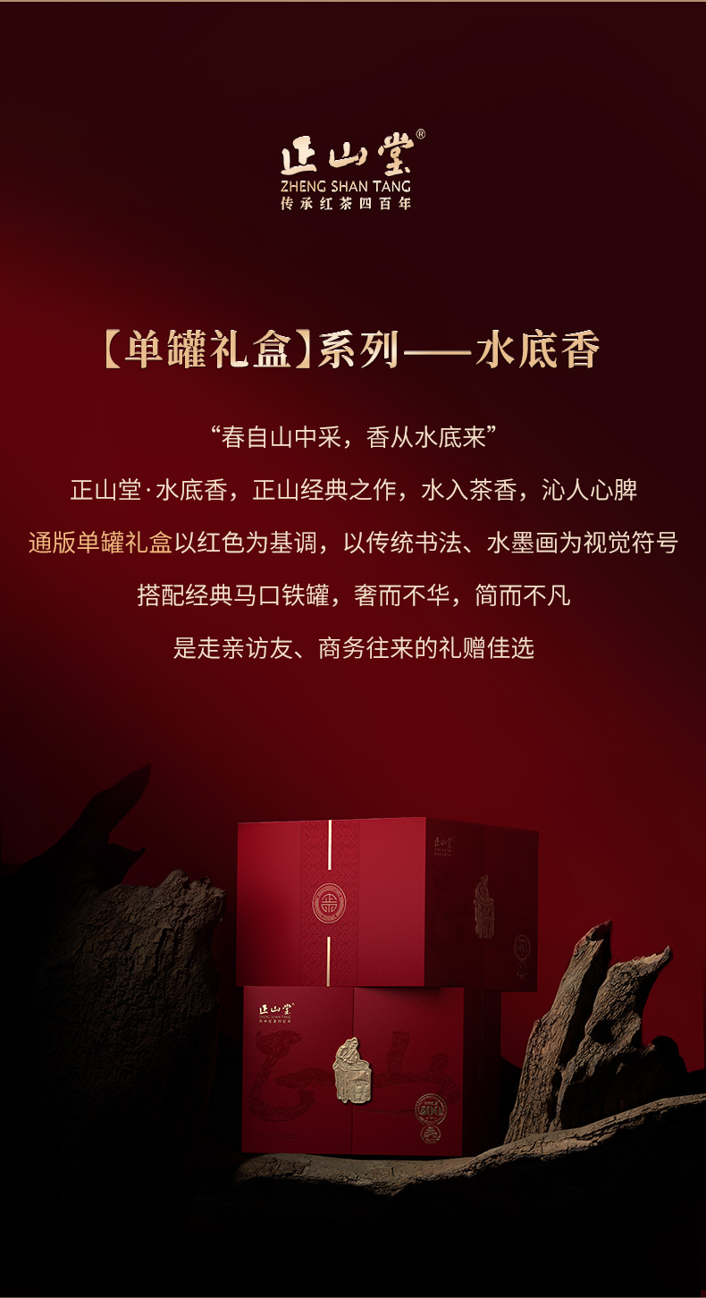 正山堂 水底香红茶单罐礼盒装 正山小种特级正宗武夷红茶叶送礼100g/200g
