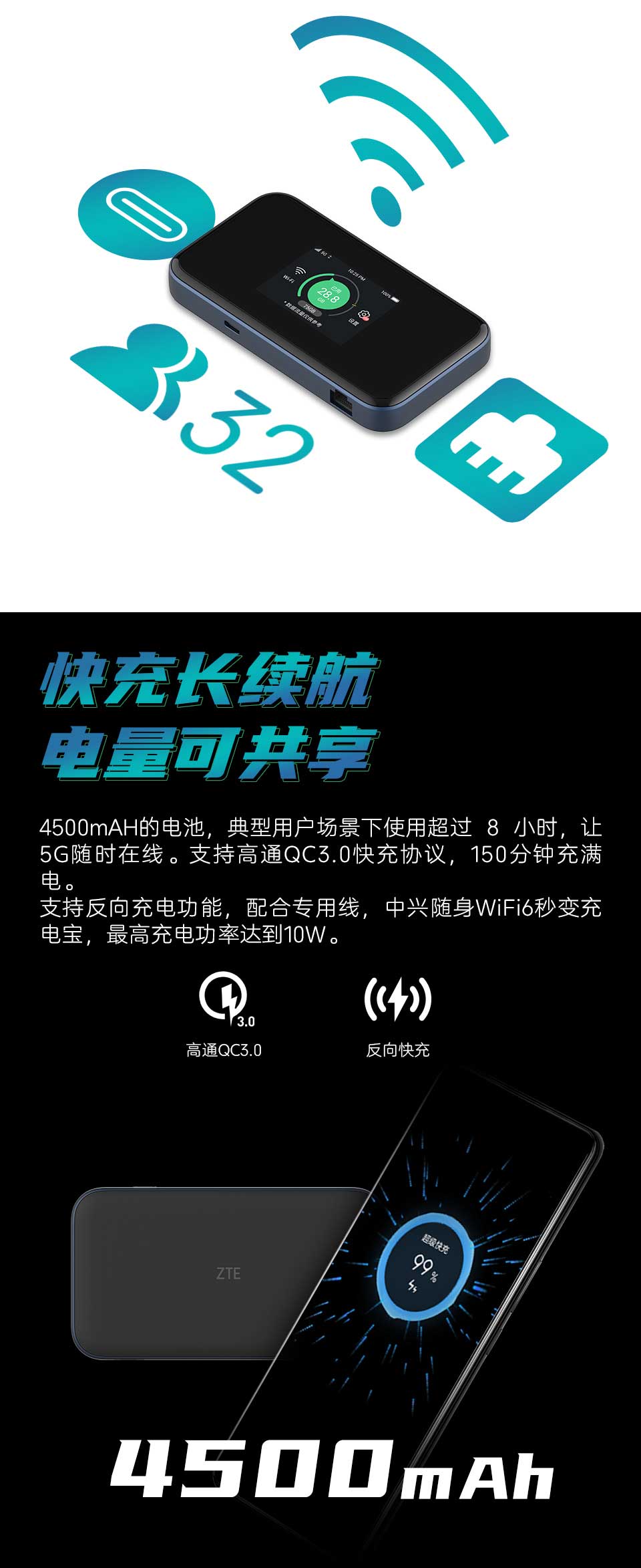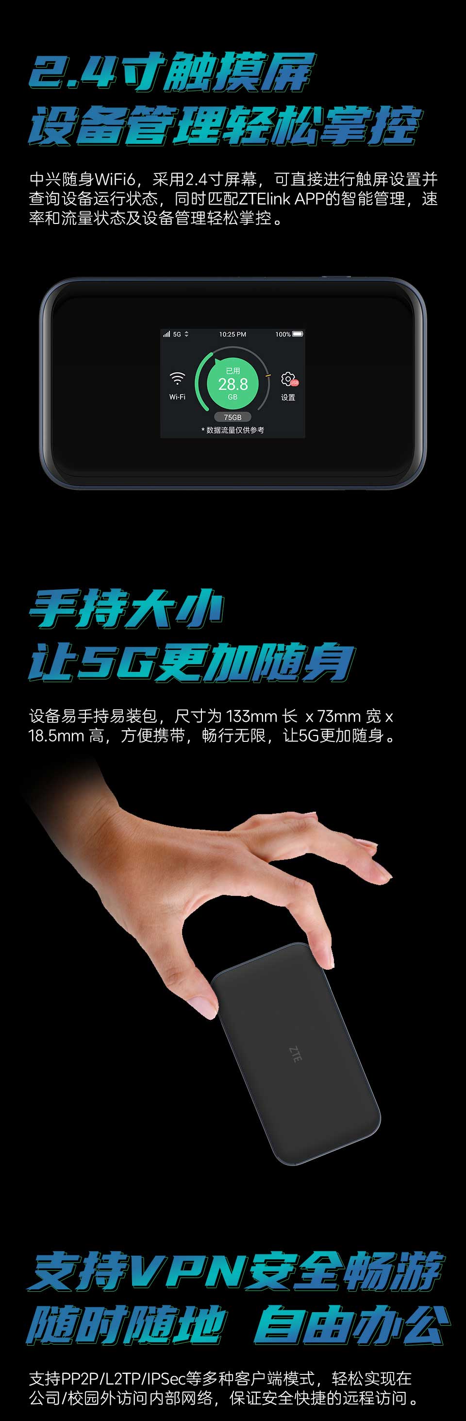 中兴5G CPE随身移动车载wifi6插卡上网神器家用户外宽带【全国联保】