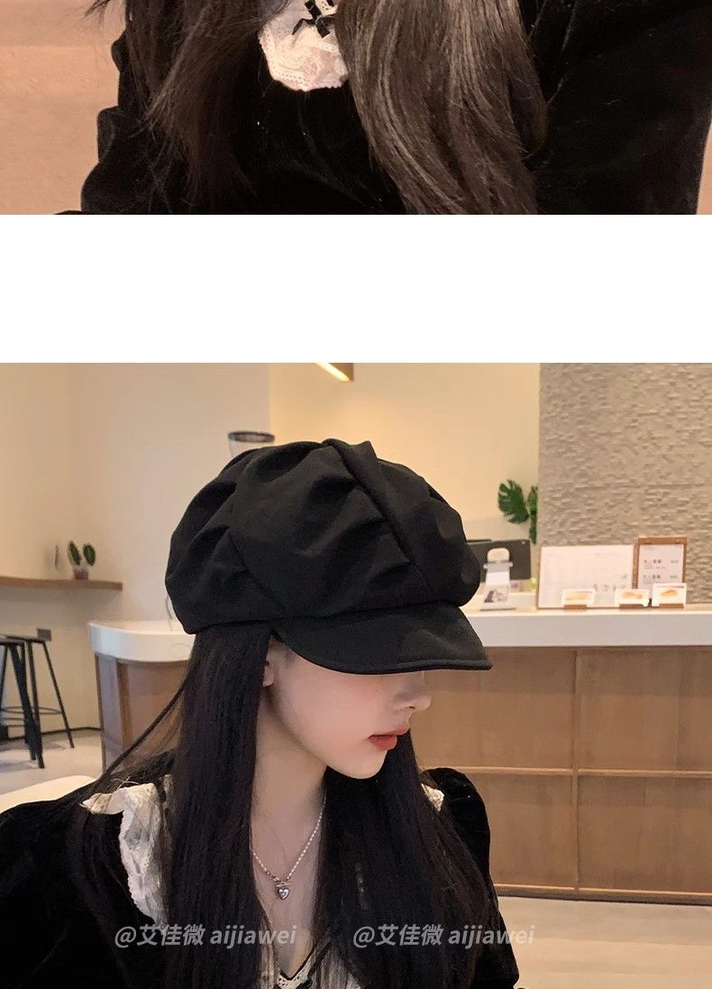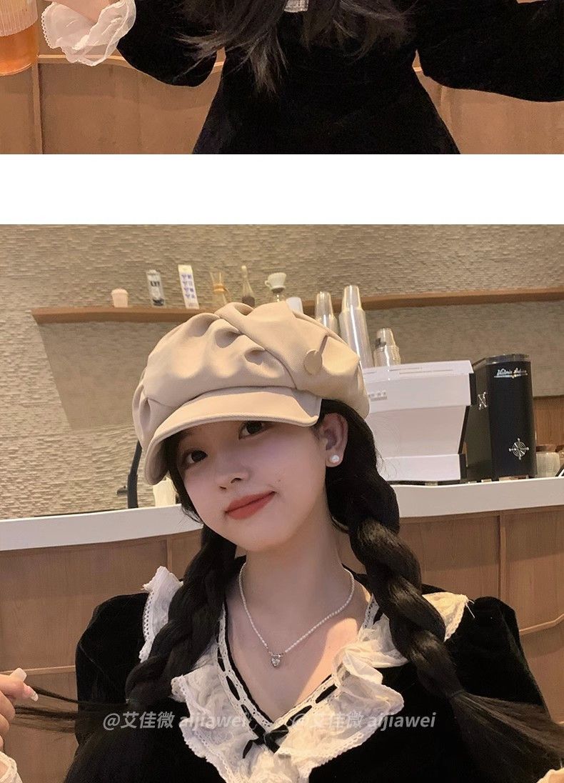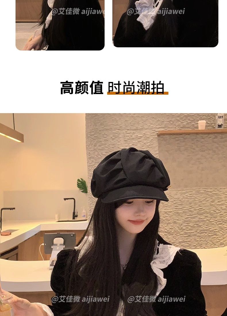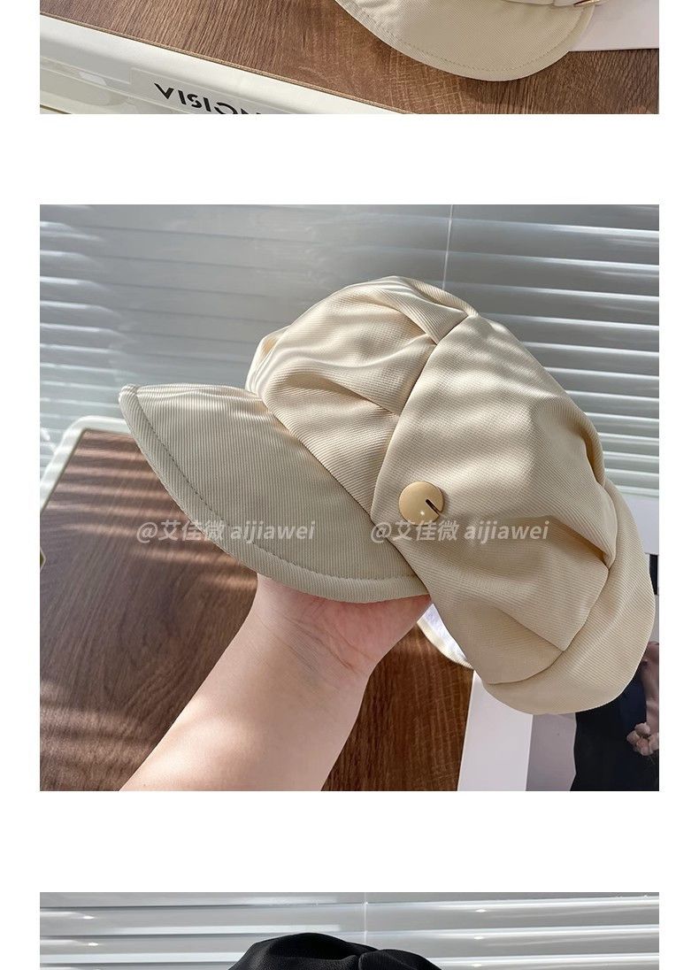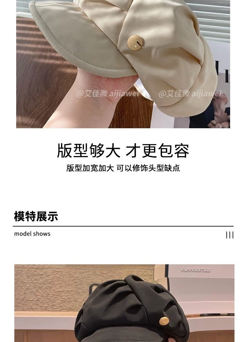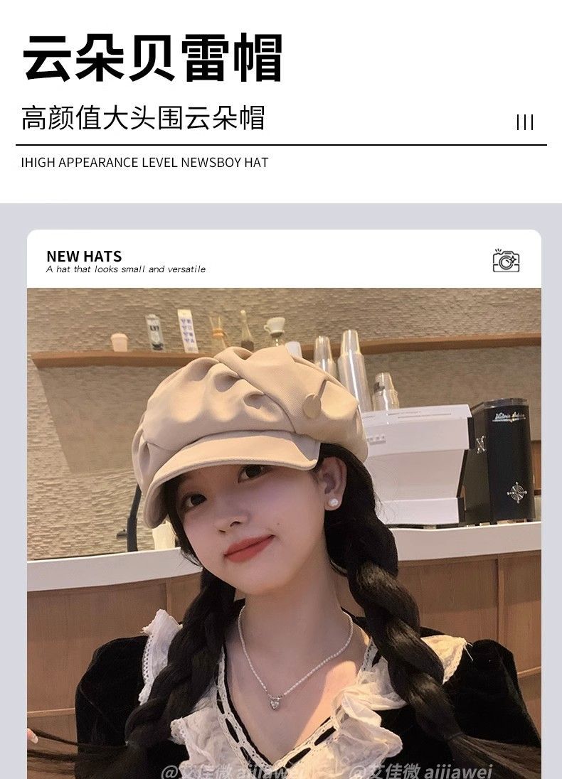 大码云朵帽子女褶皱包脸显脸小八角帽出游休闲韩版百搭素颜贝雷帽