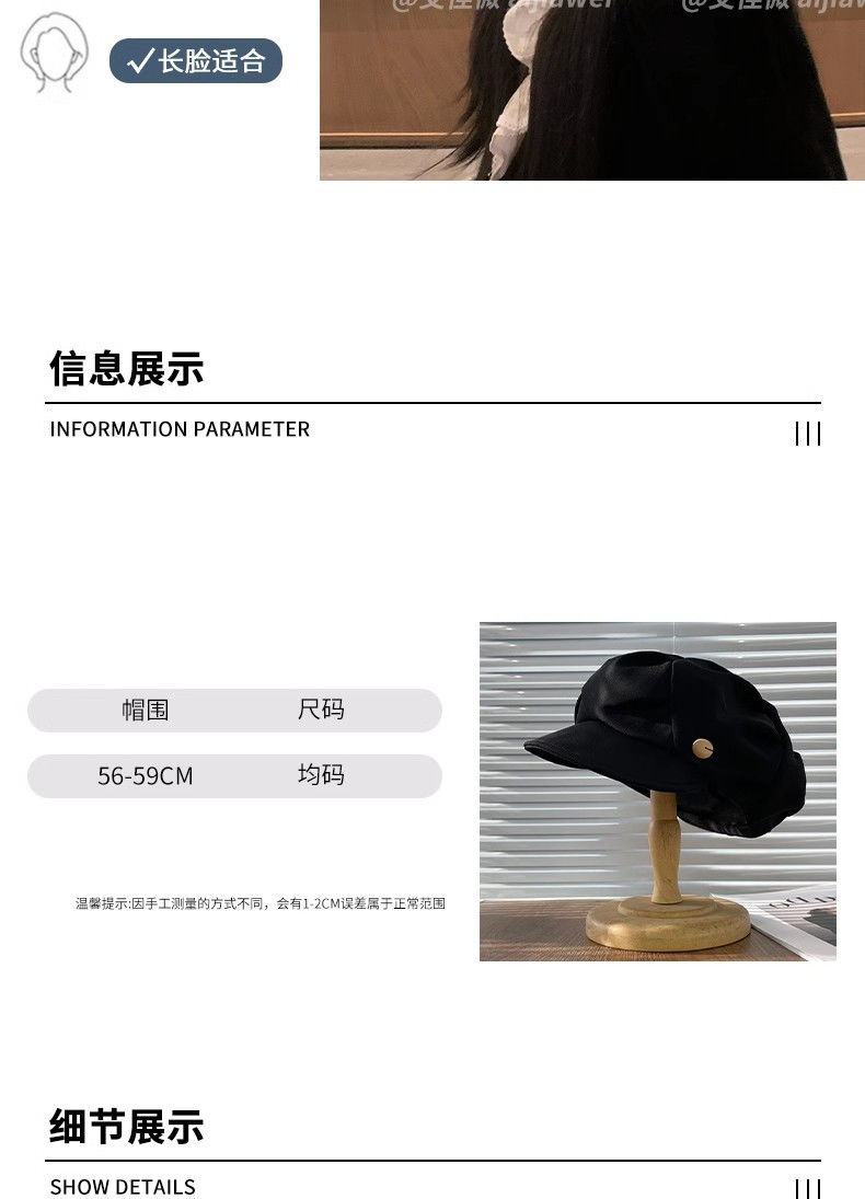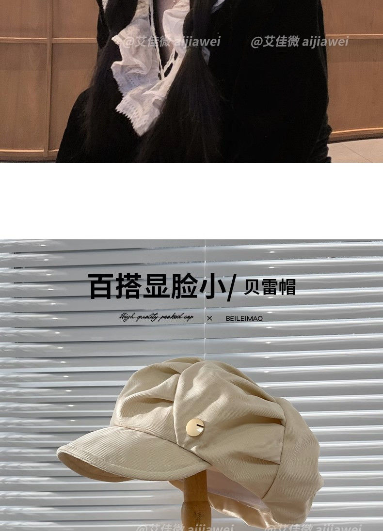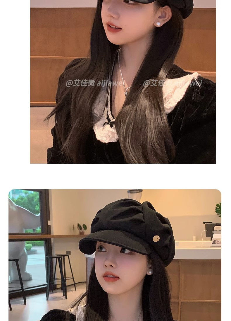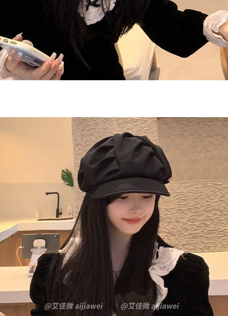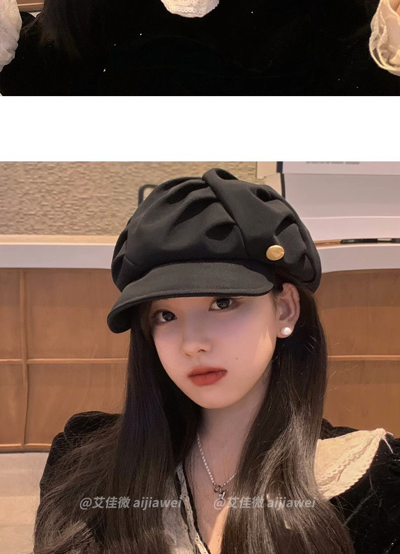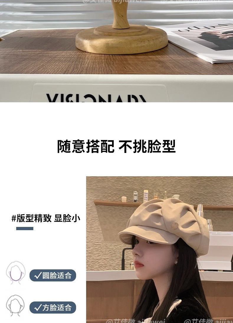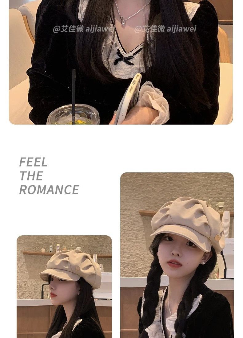 大码云朵帽子女褶皱包脸显脸小八角帽出游休闲韩版百搭素颜贝雷帽