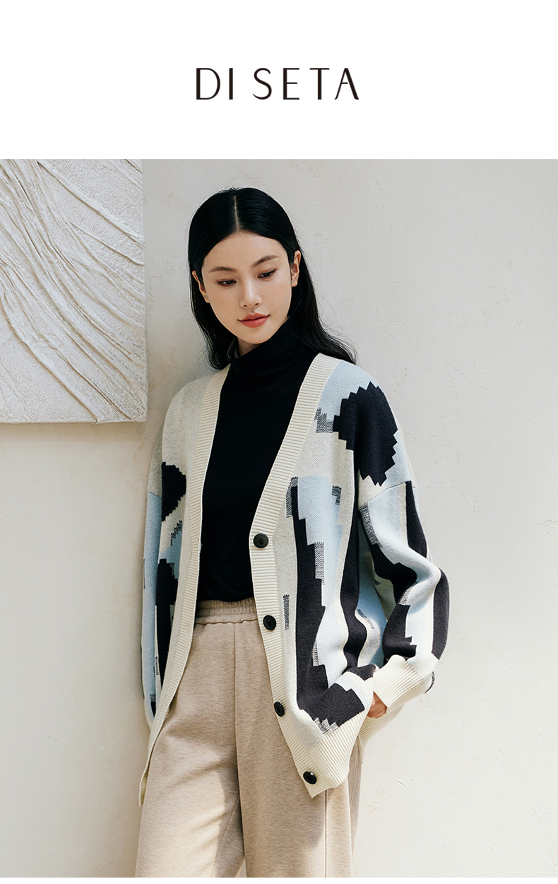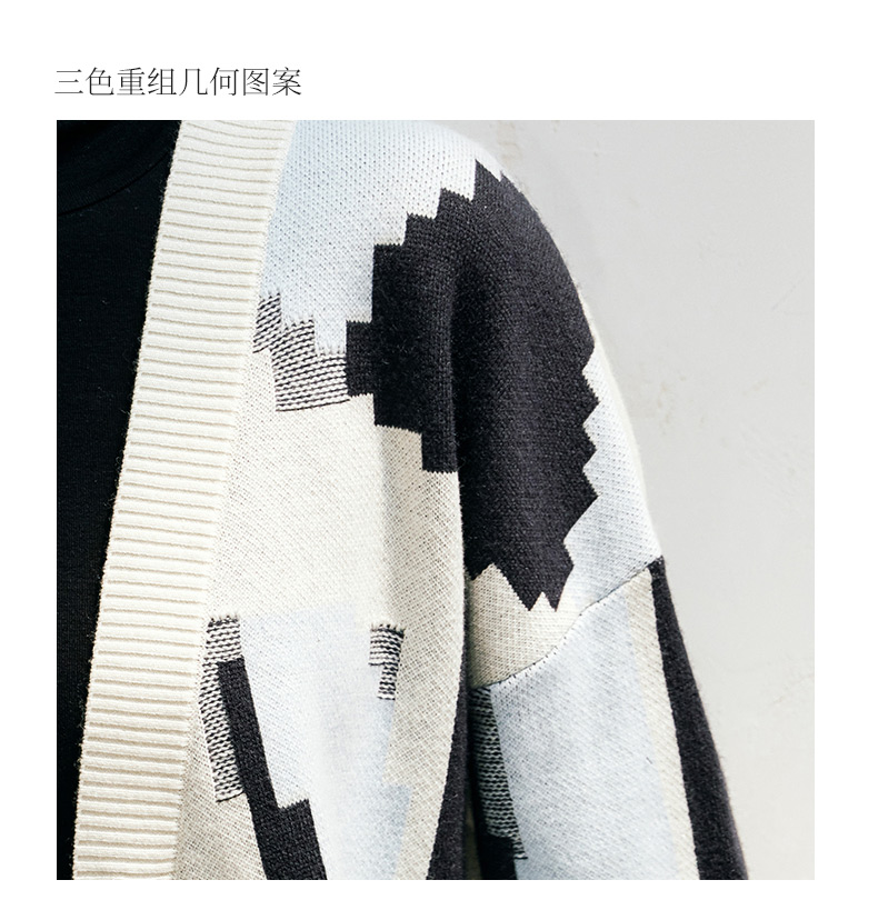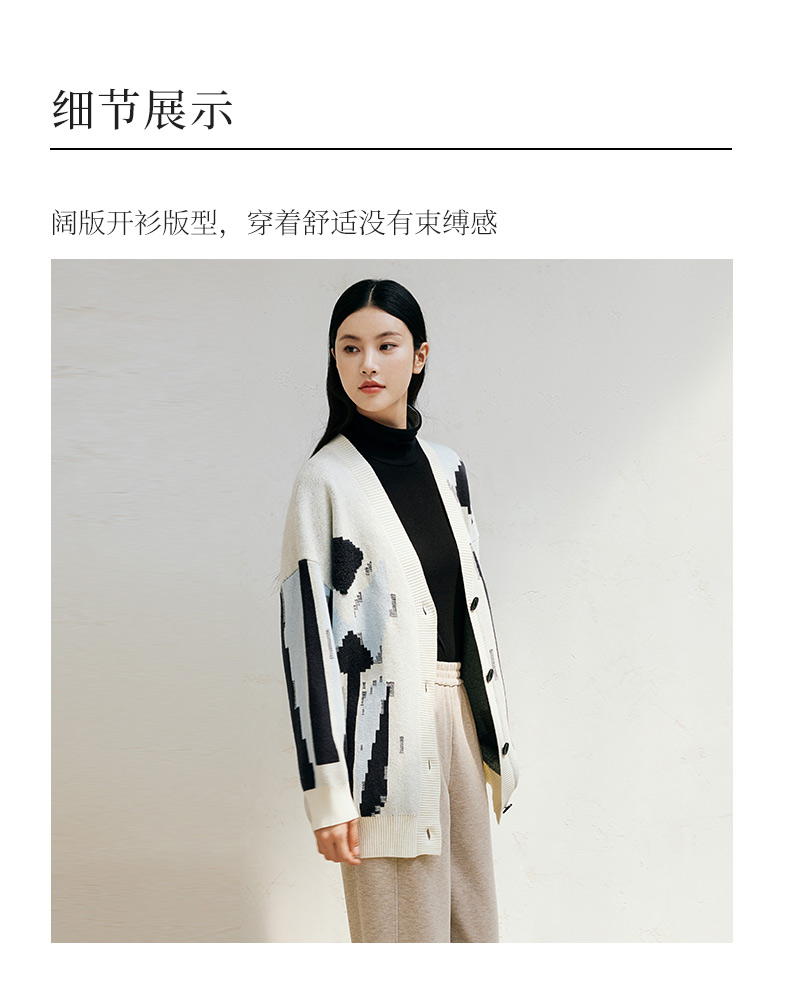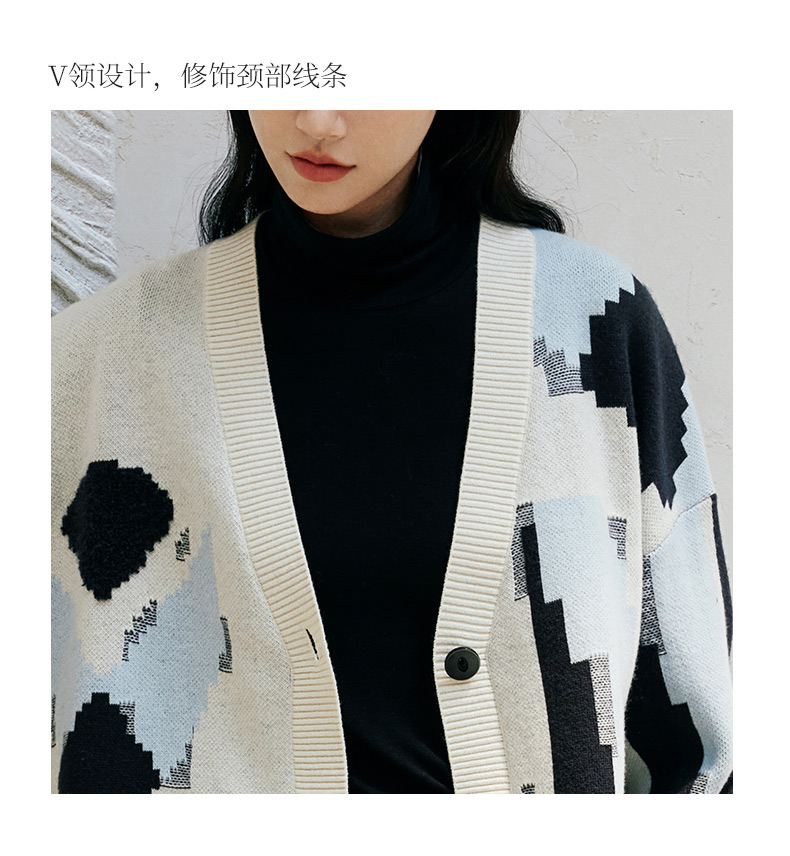 玳莎提花宽松针织开衫女2024年冬季新款通勤休闲慵懒风落肩袖外套 ED33309