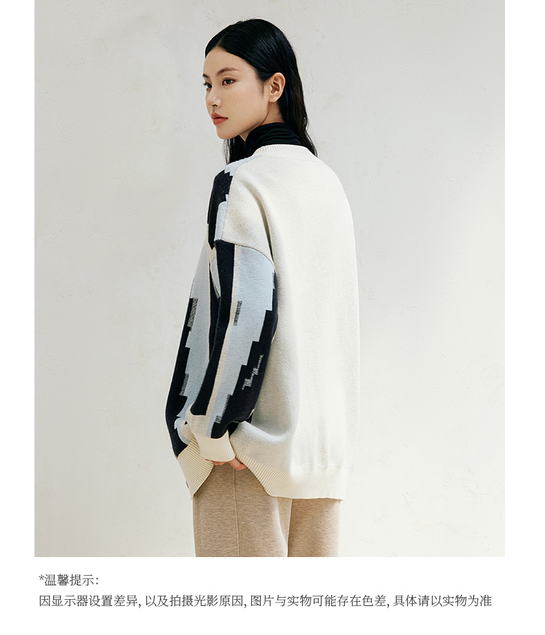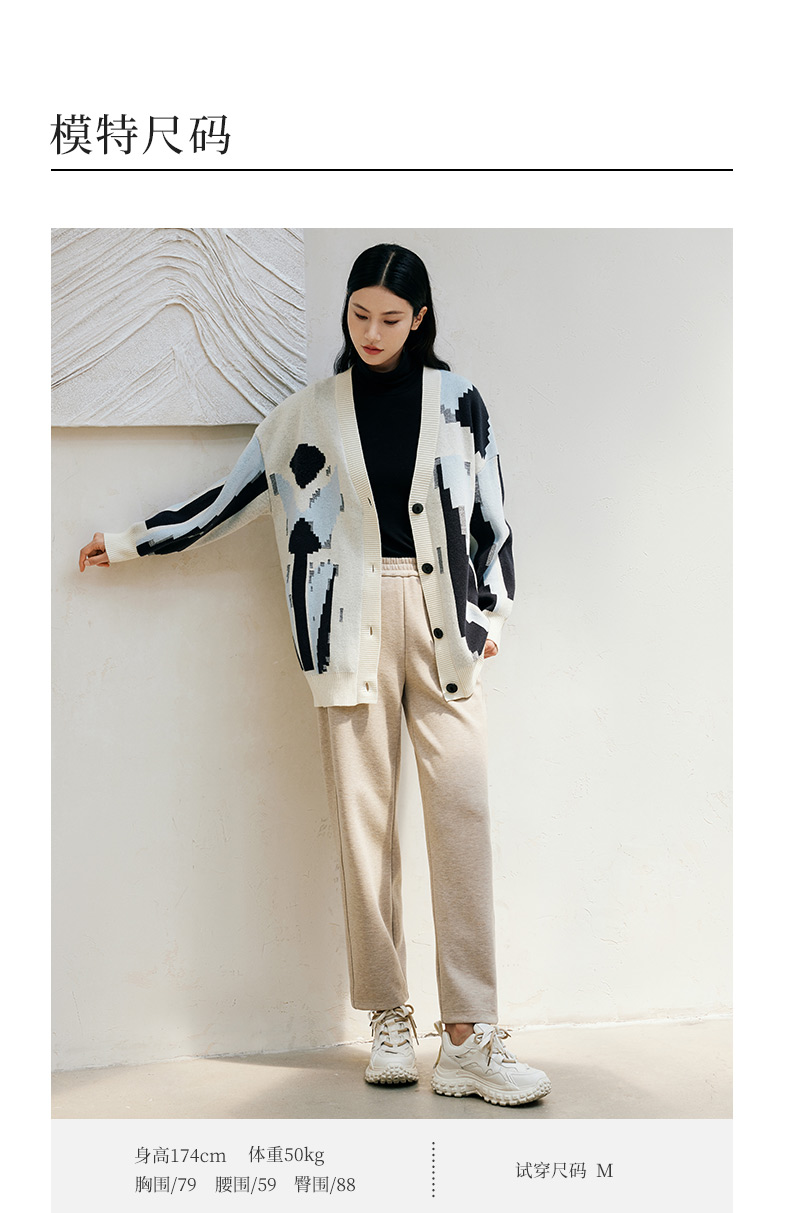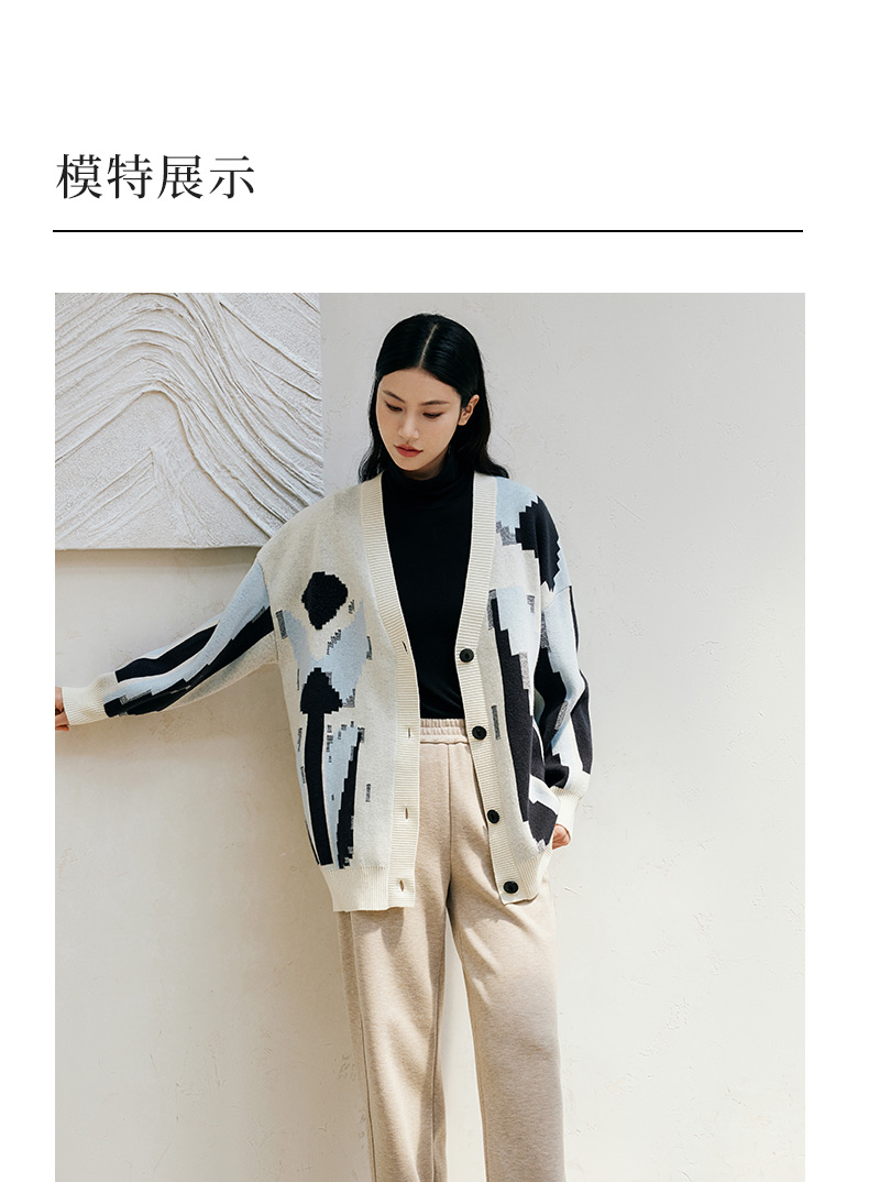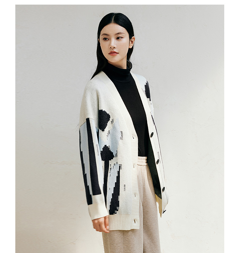 玳莎提花宽松针织开衫女2024年冬季新款通勤休闲慵懒风落肩袖外套 ED33309
