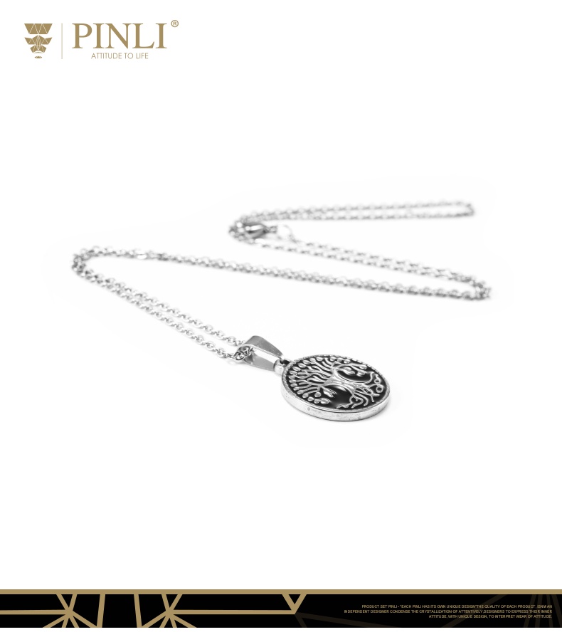 PINLI品立2021夏季潮牌不锈钢圆形吊坠男饰品首饰项链D212628381