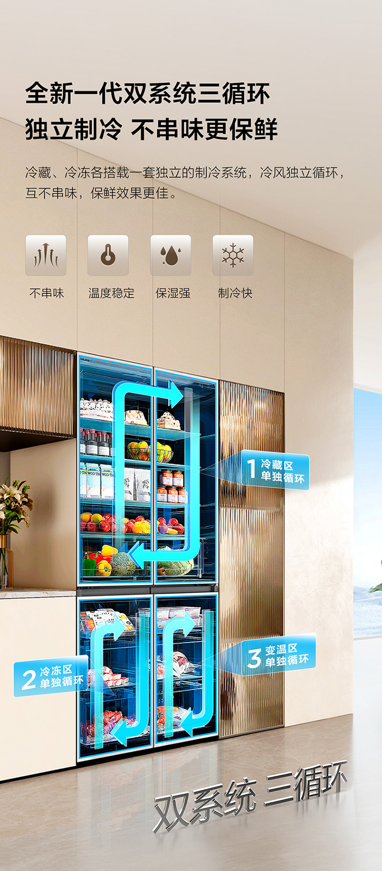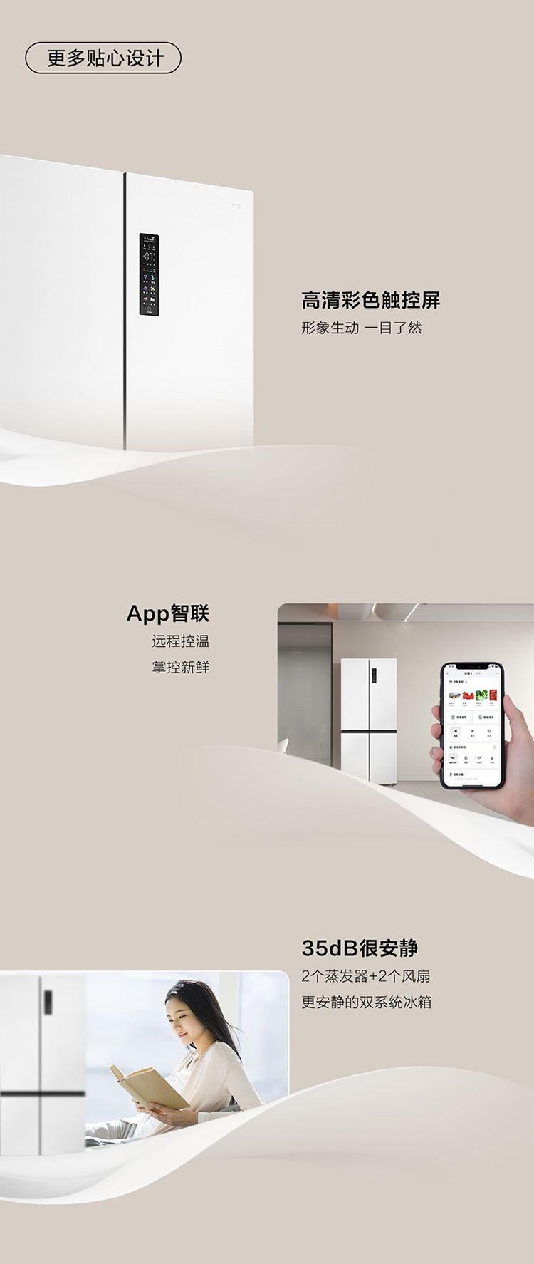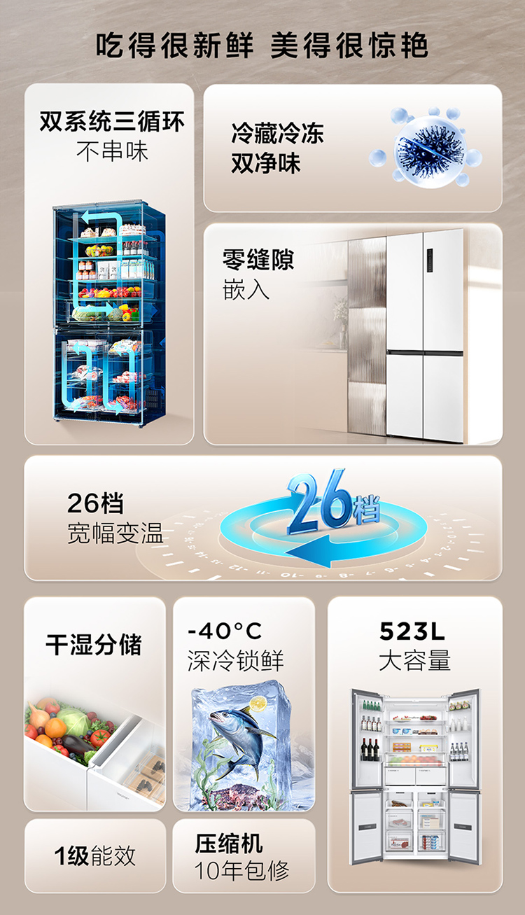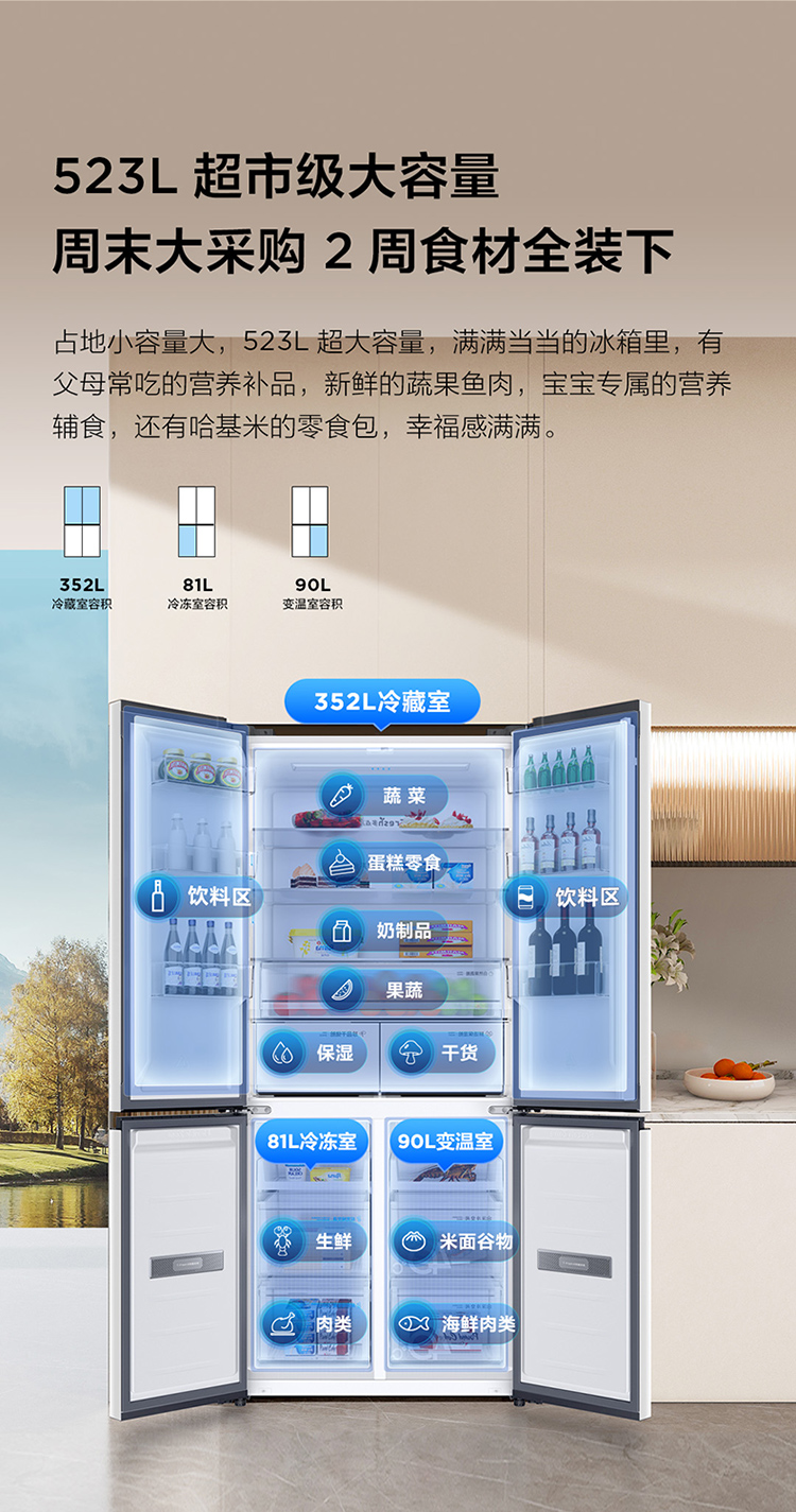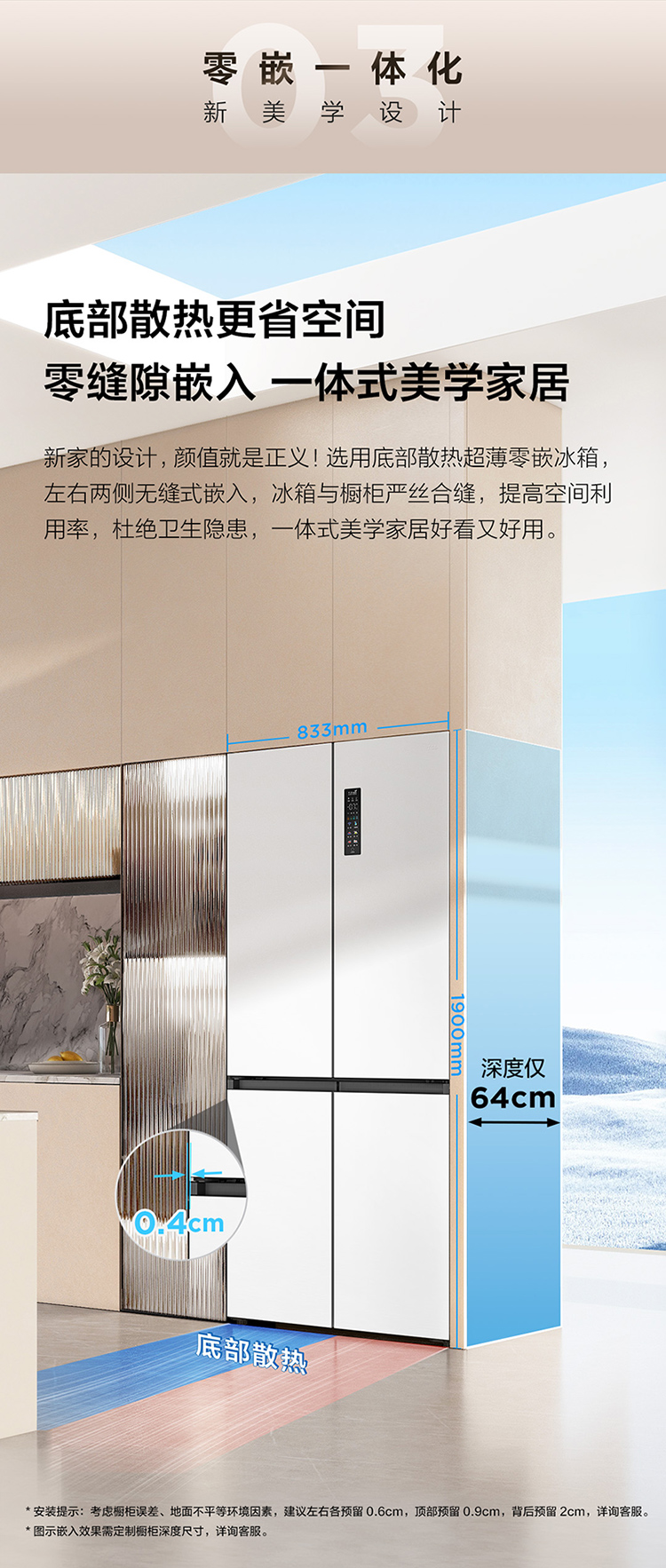 TCL 523升T9 Pro十字对开四开门双系统双净味超薄零嵌入式底部散热冰箱 R523T9-UQS