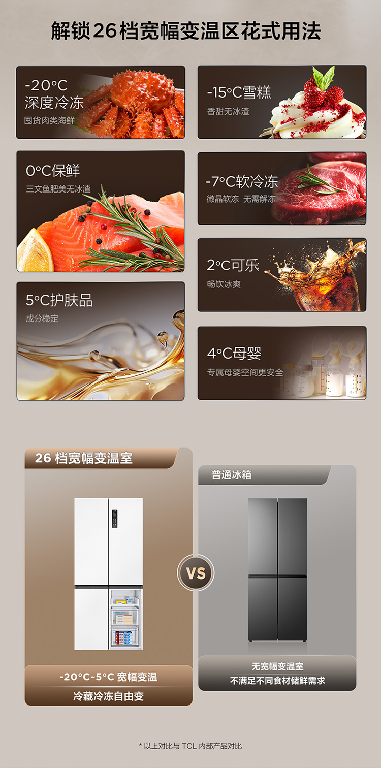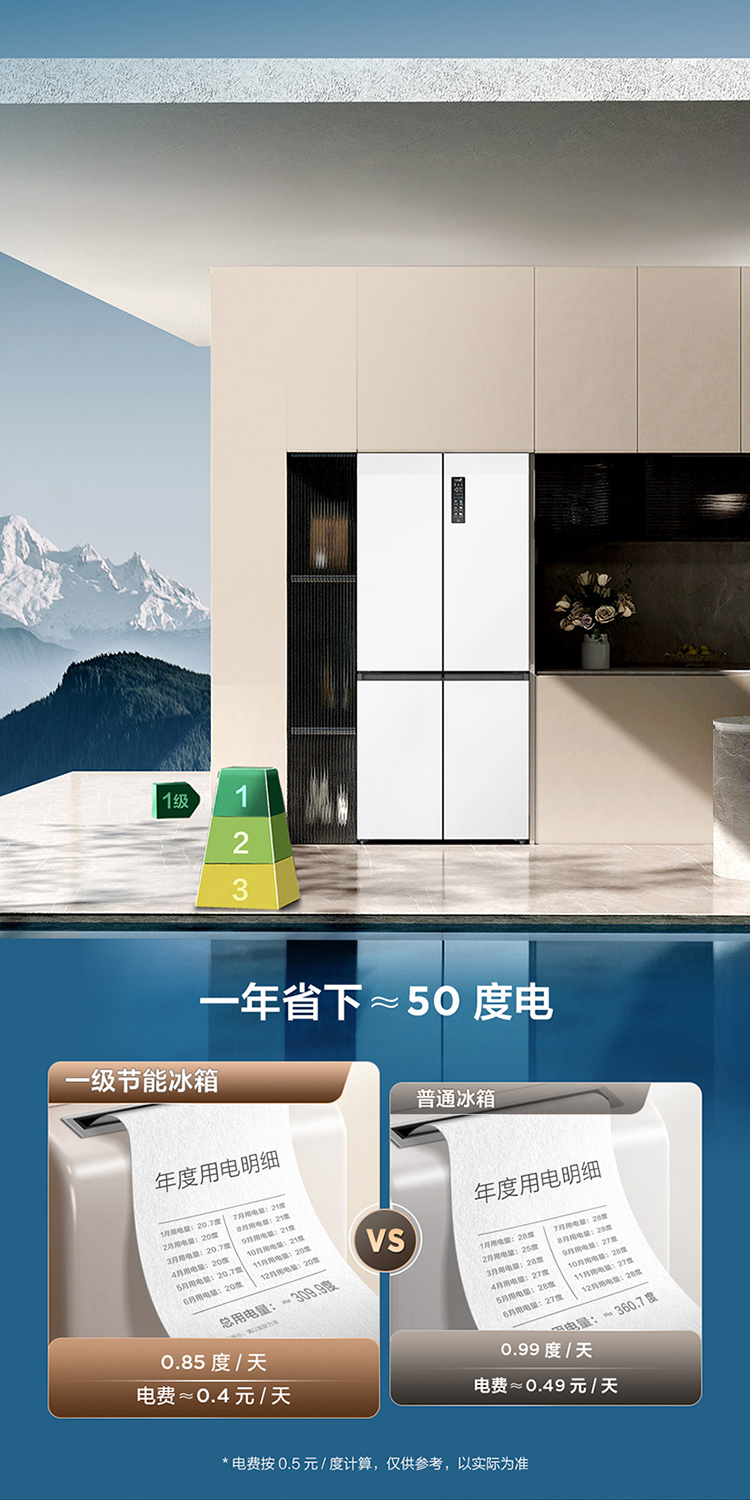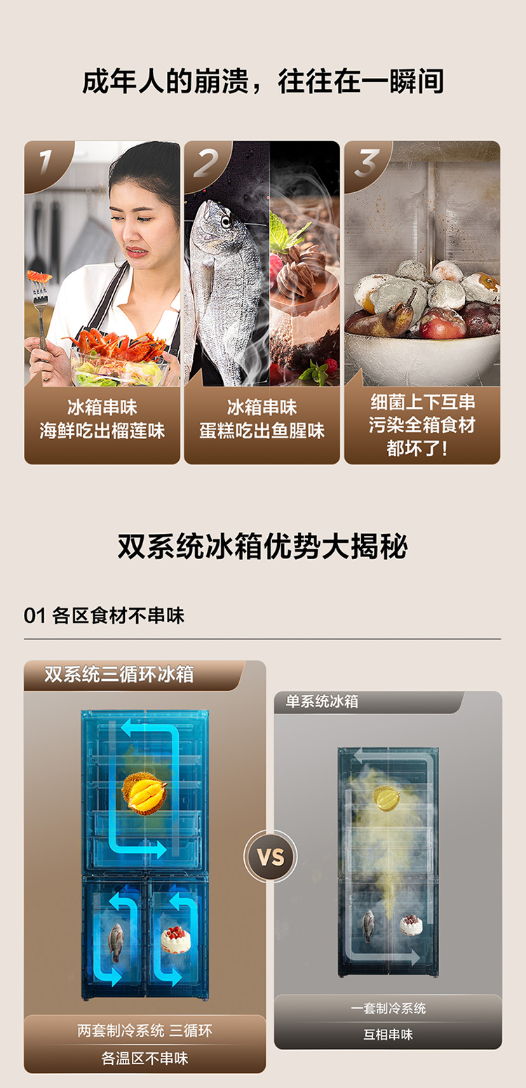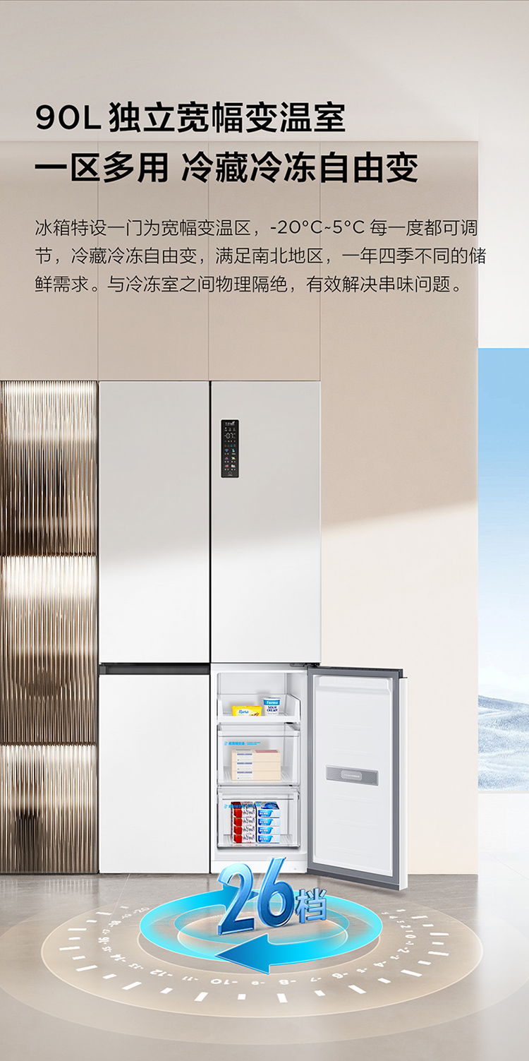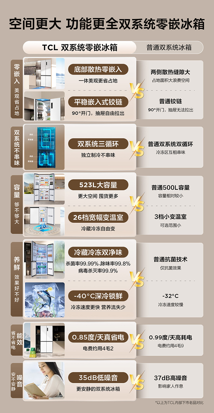 TCL 523升T9 Pro十字对开四开门双系统双净味超薄零嵌入式底部散热冰箱 R523T9-UQS