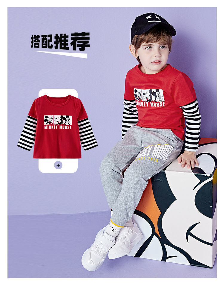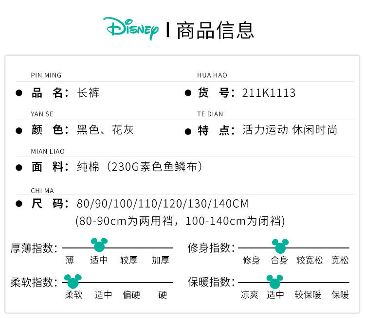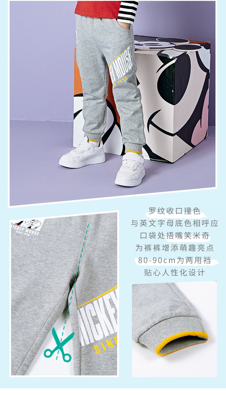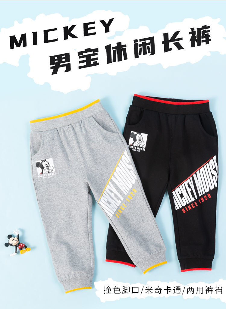 迪士尼童装 男童裤子春秋季新款儿童中大童洋气运动裤长裤潮211K1113
