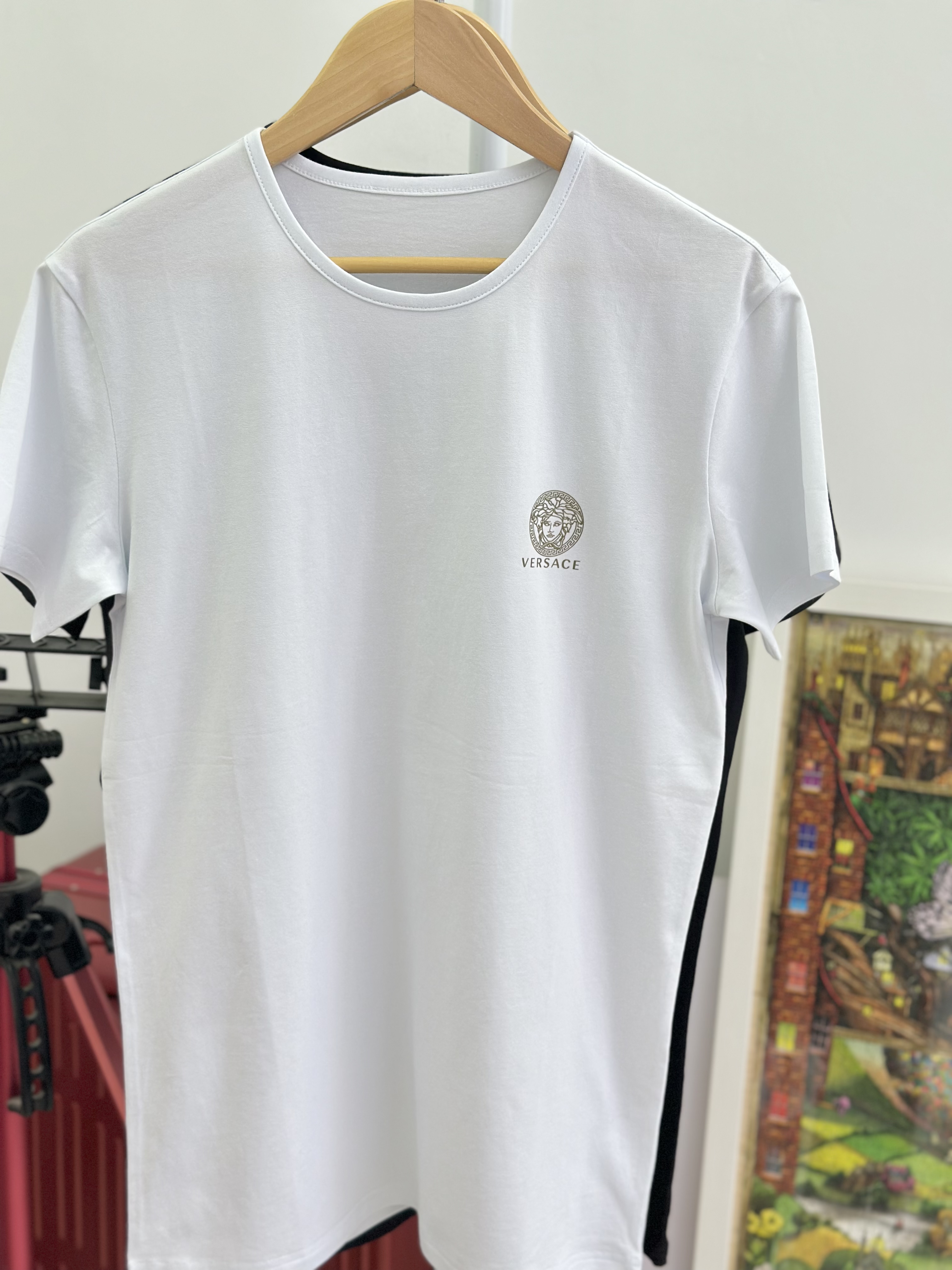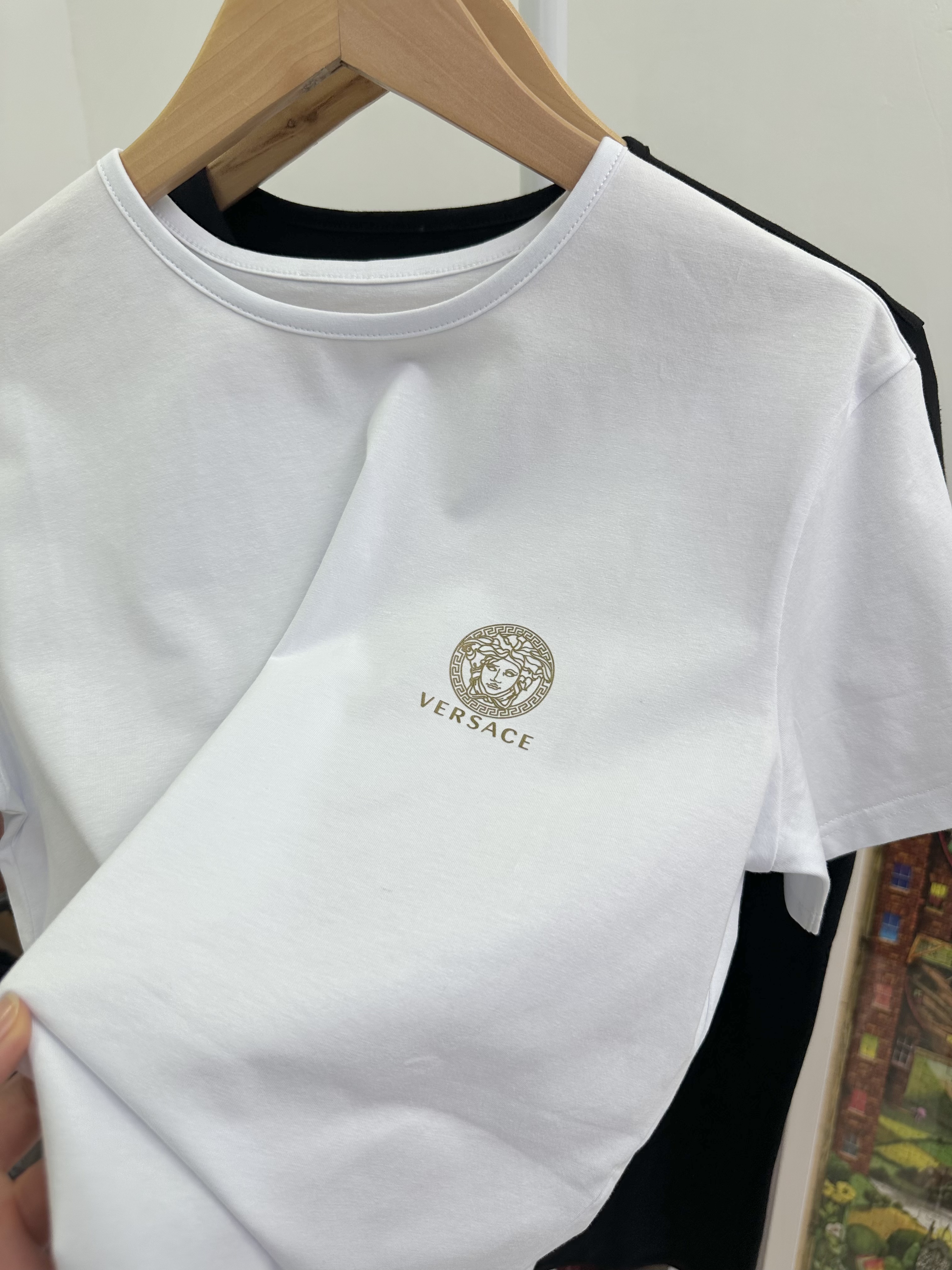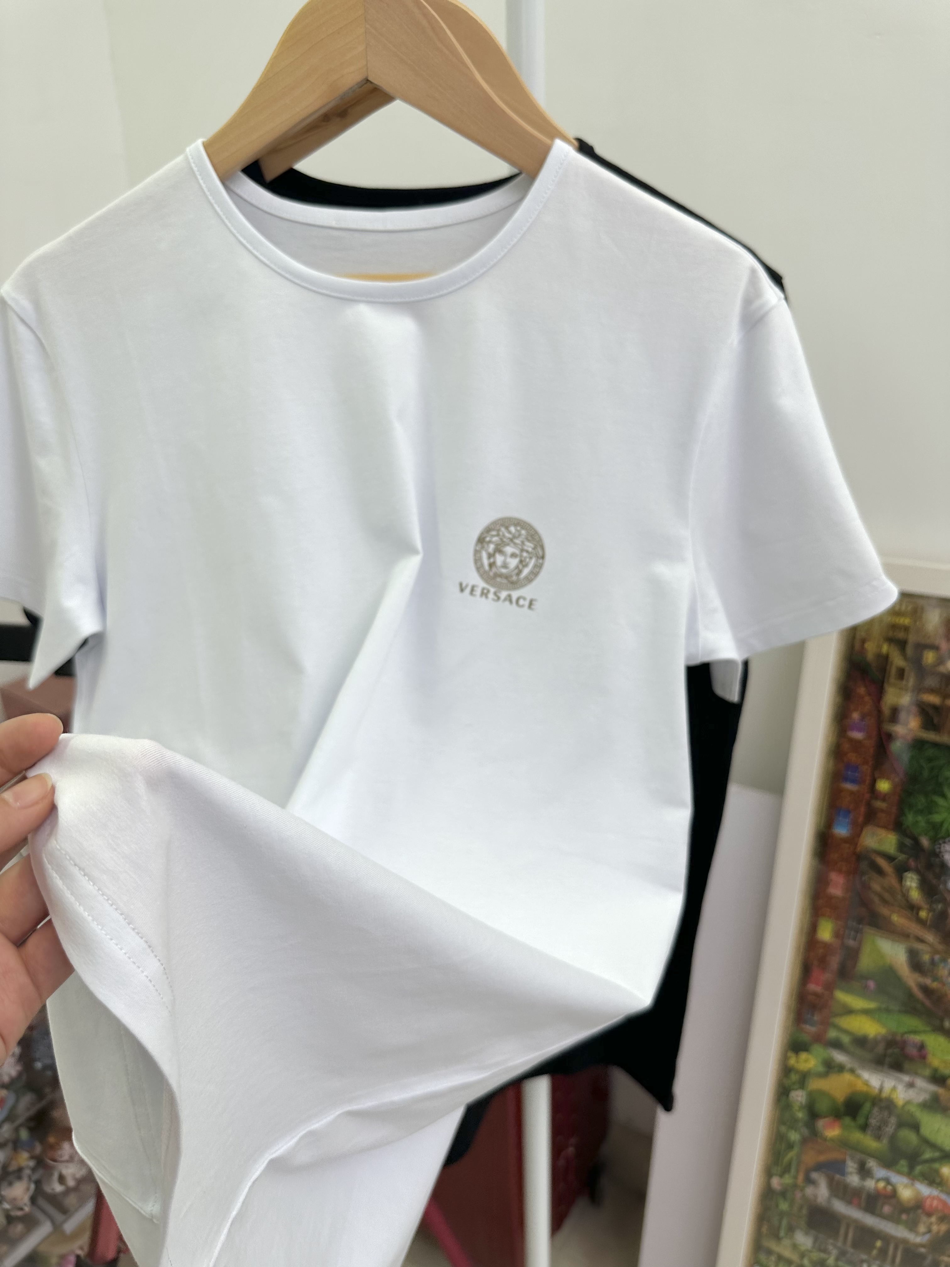 付款减库存!5码推荐80-115斤,原单范思哲男女同款!美杜莎烫金logo圆领短袖T恤