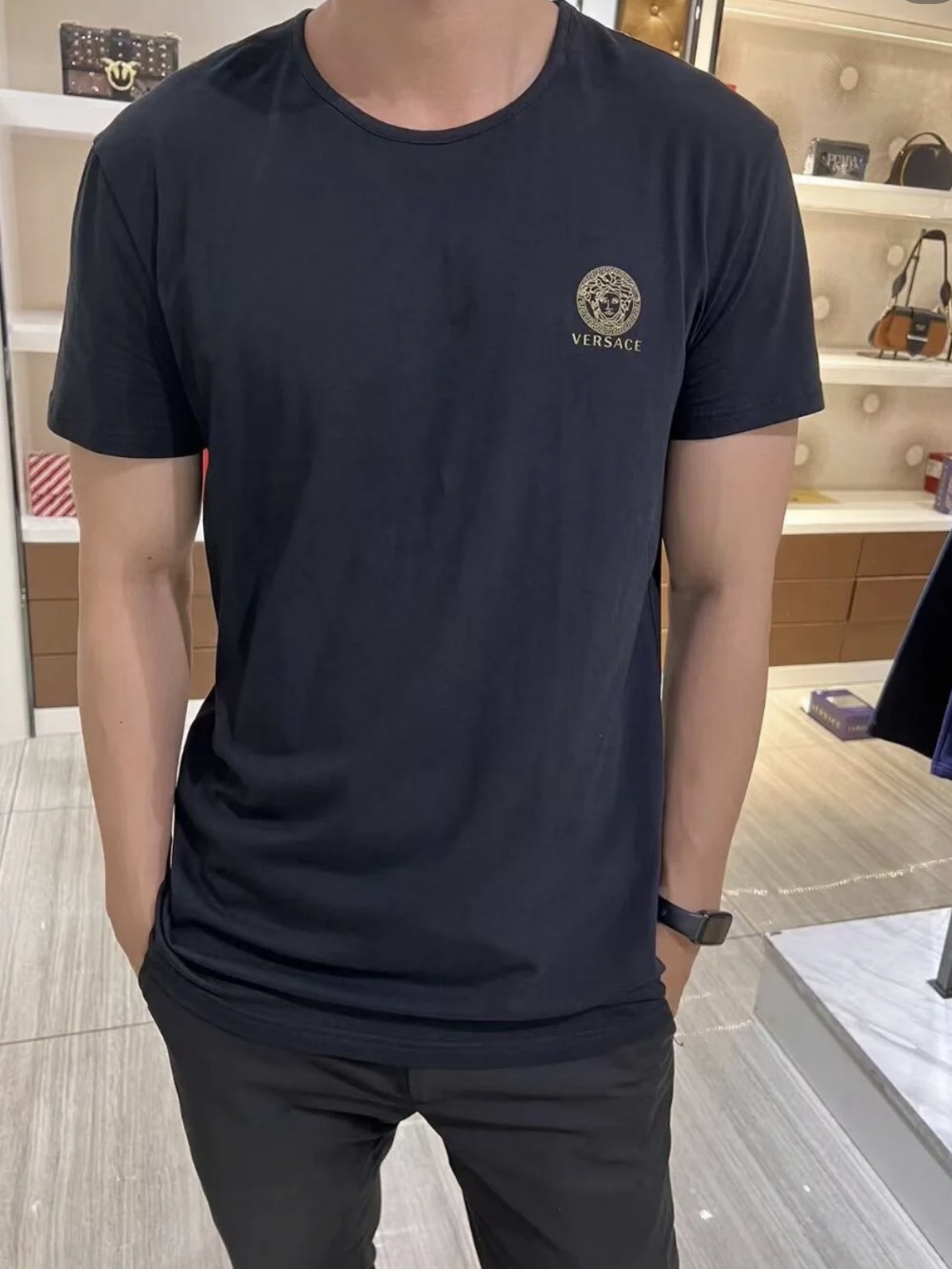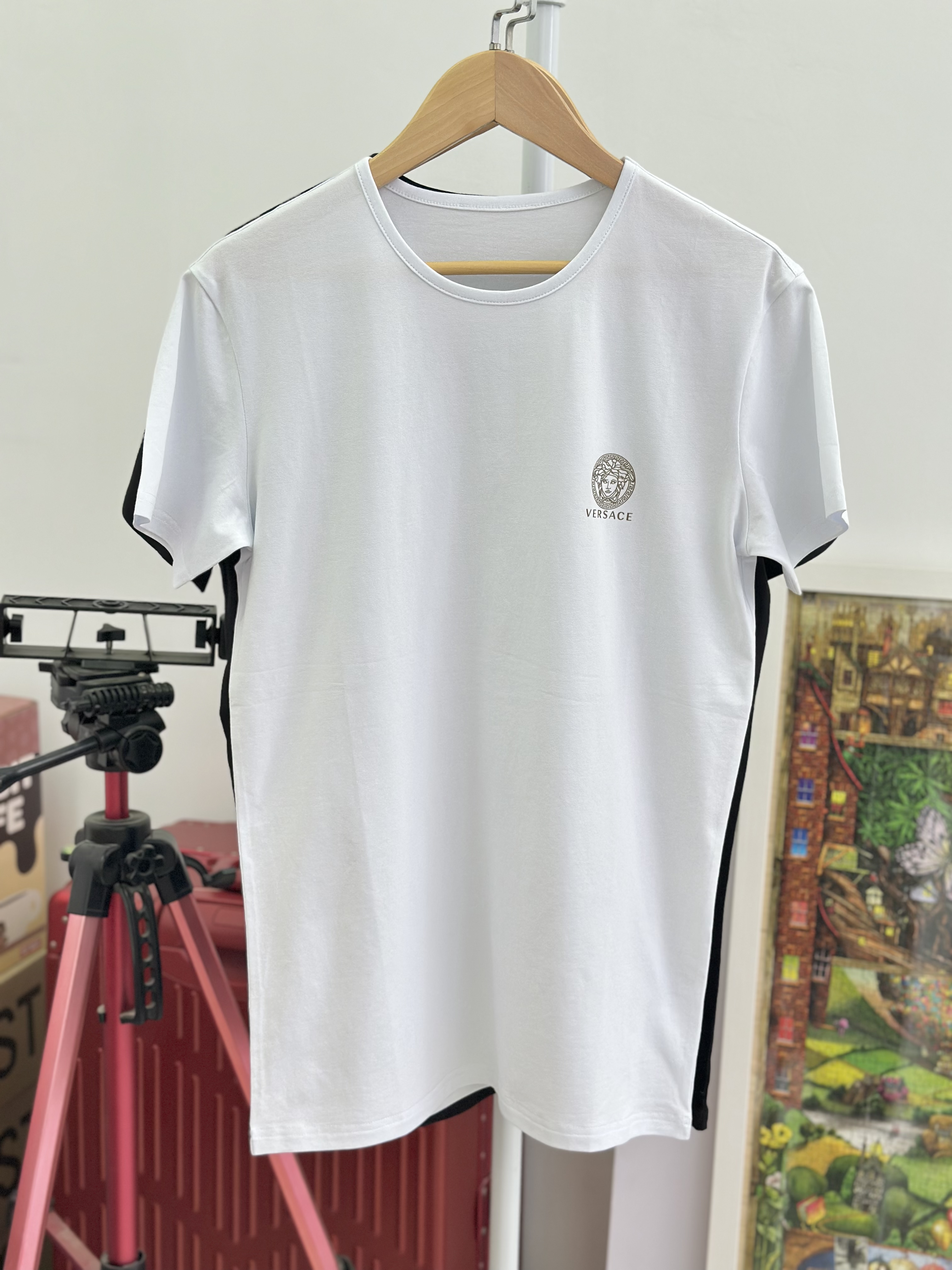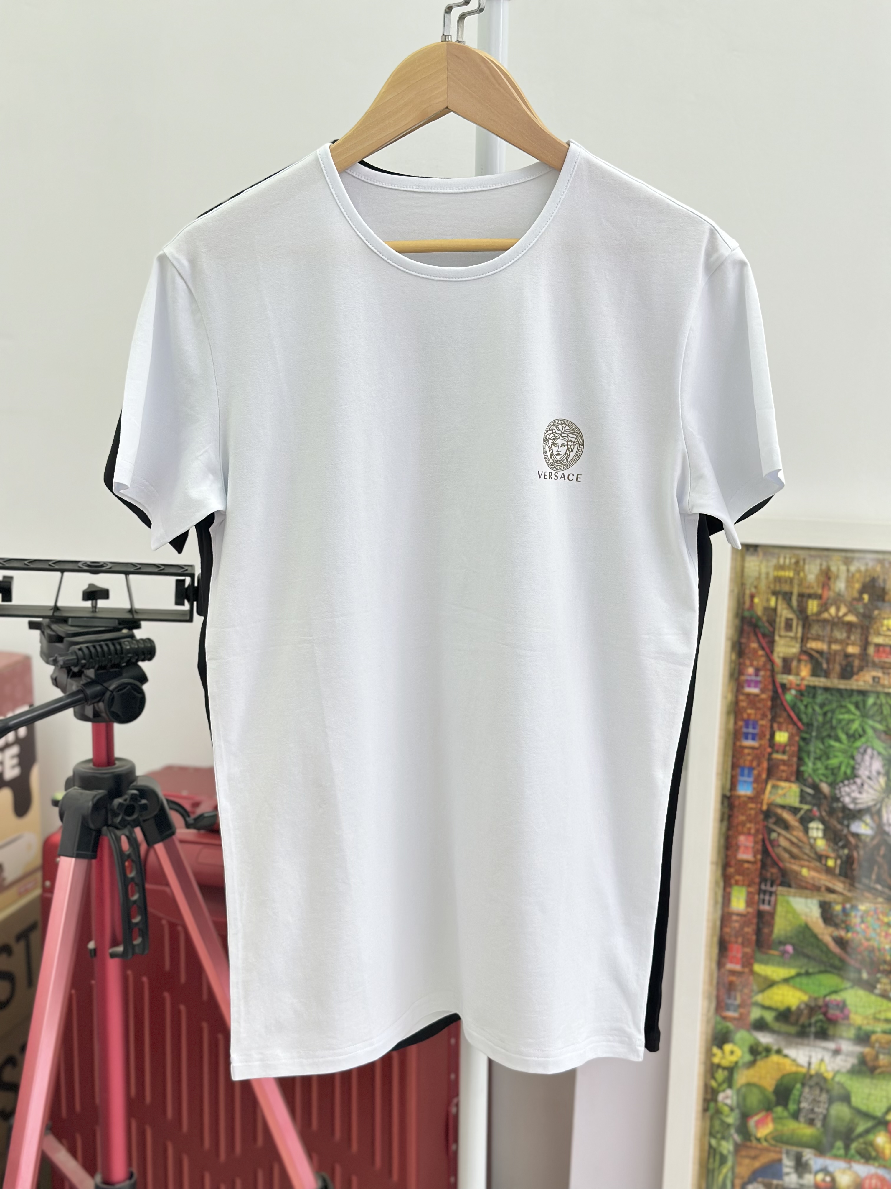 付款减库存!5码推荐80-115斤,原单范思哲男女同款!美杜莎烫金logo圆领短袖T恤