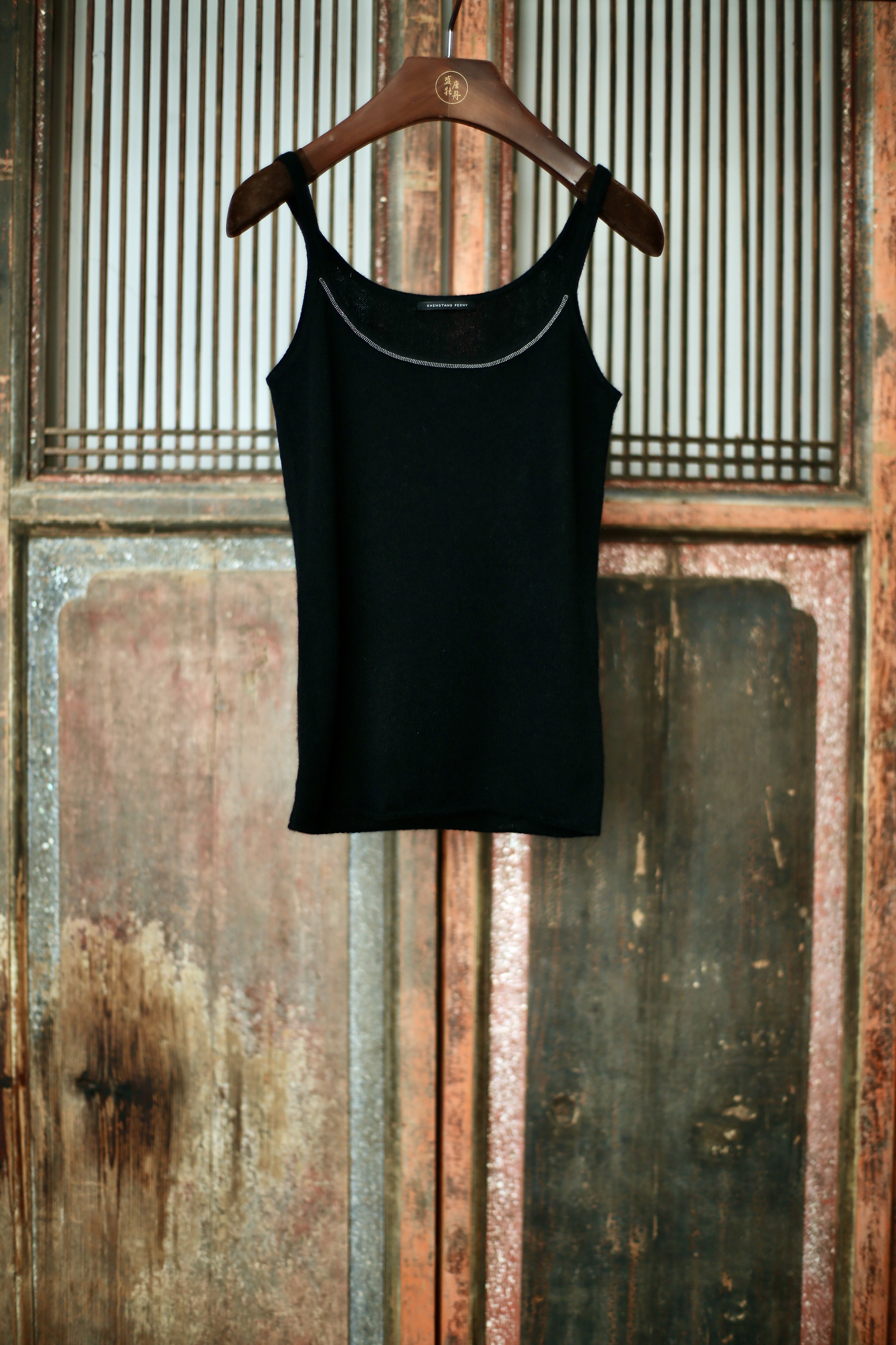 盛唐牡丹 | 黑色针织羊绒吊带[特价品]