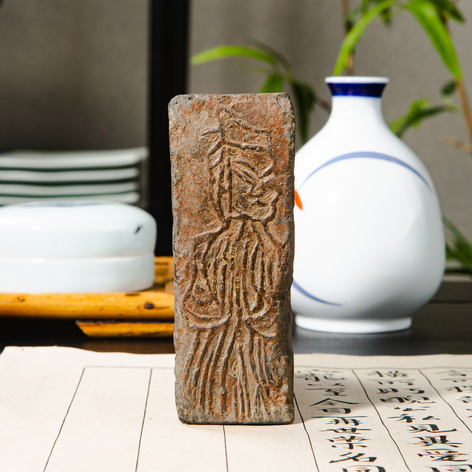 南北朝时期人物古砖制砚,人物形象刻画生动,题材少见,器型典雅,胎质细腻,稀有难得。