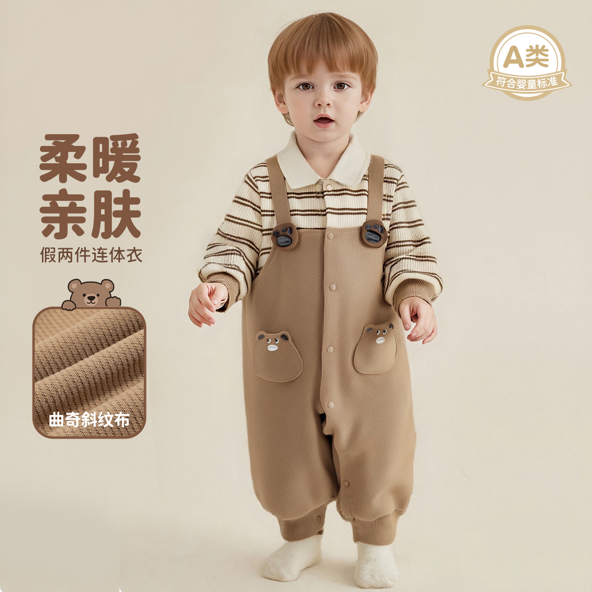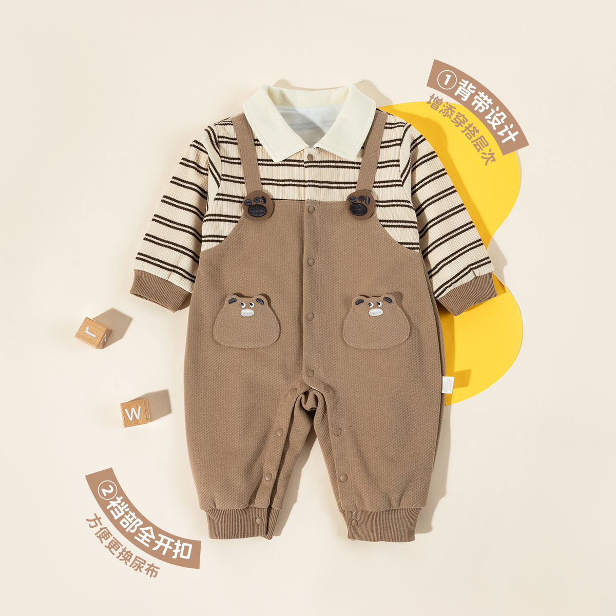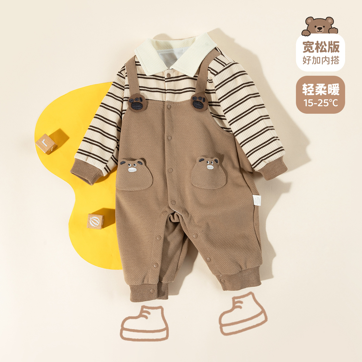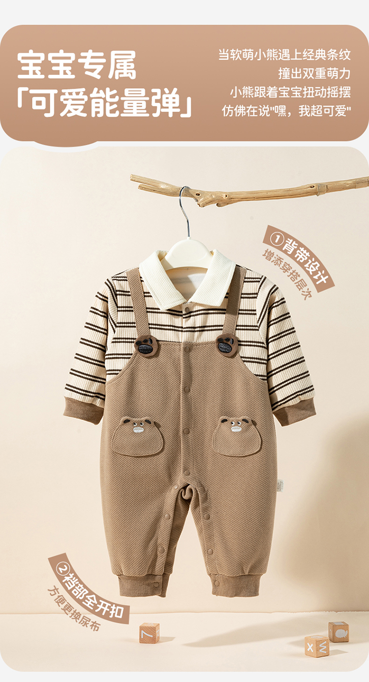ZB3EL001贝贝怡童装婴幼儿童前开连体衣春秋2025新款宝宝秋装爬服哈衣