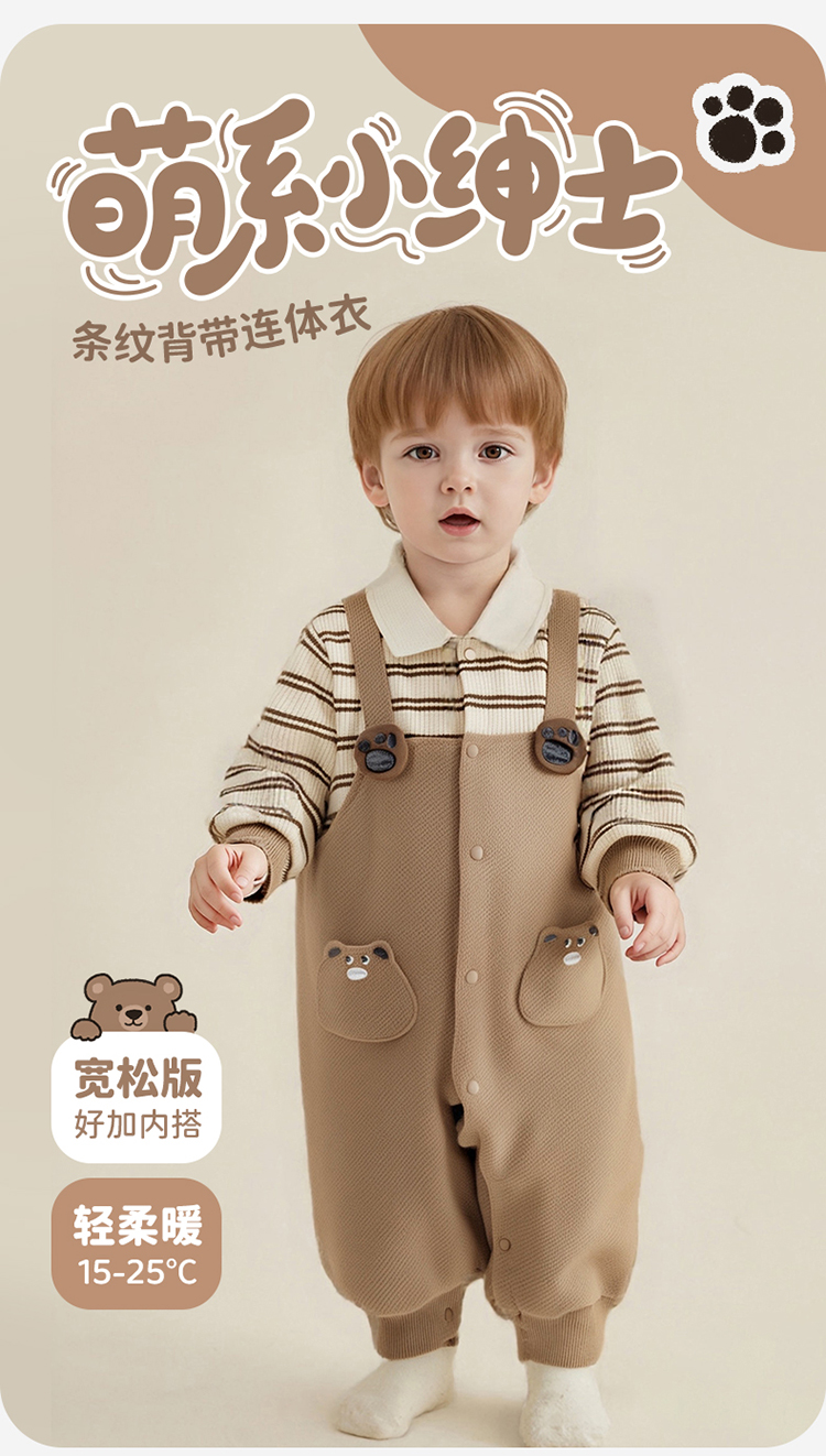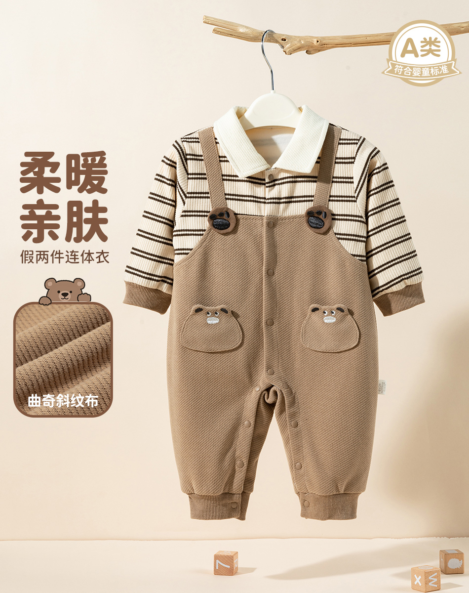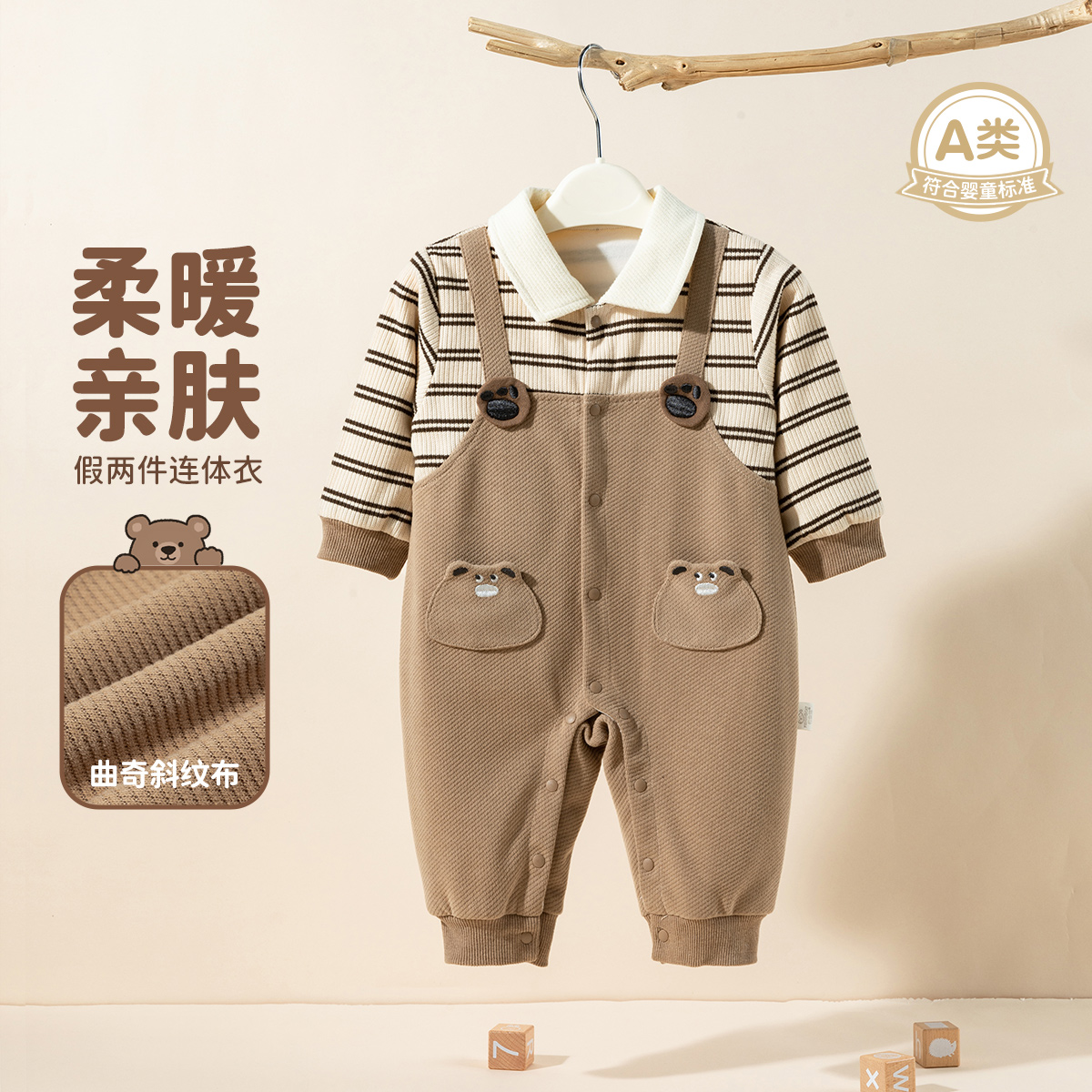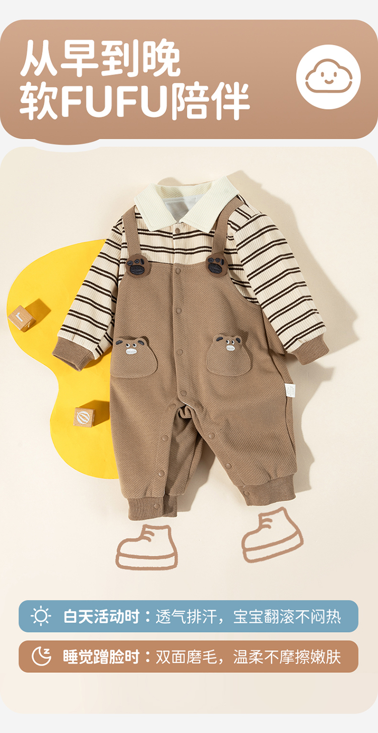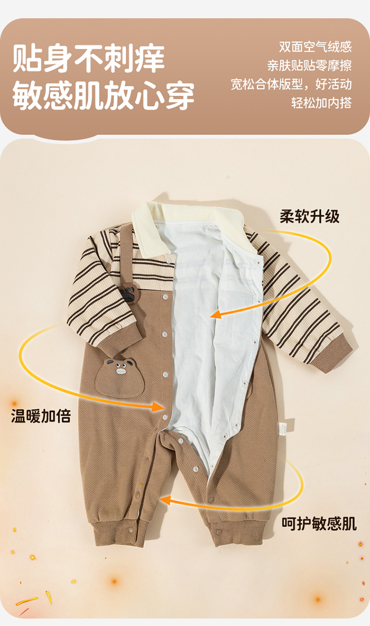 ZB3EL001贝贝怡童装婴幼儿童前开连体衣春秋2025新款宝宝秋装爬服哈衣
