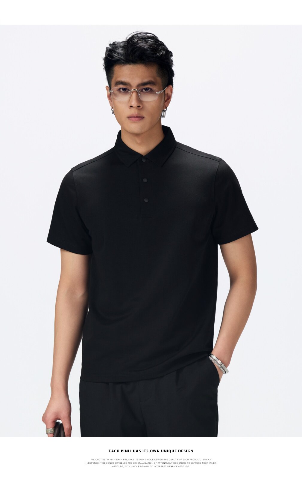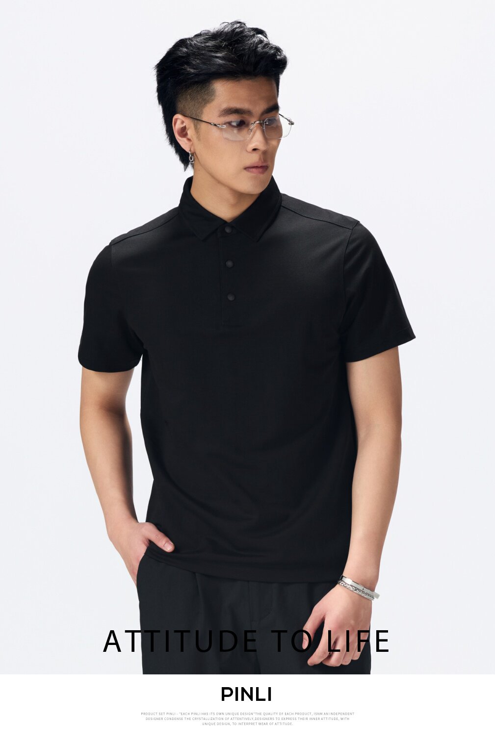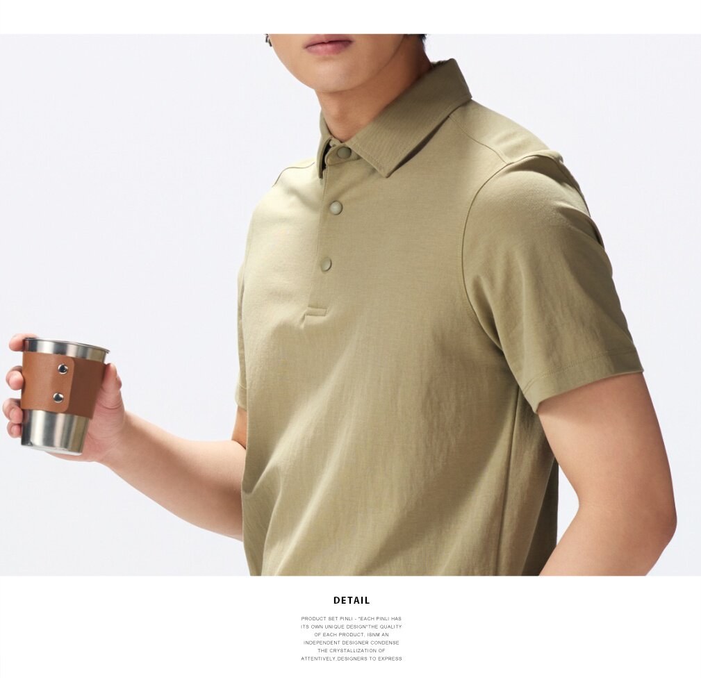 PINLI品立2026夏季新款青年纯色纽扣领短袖上衣POLO衫体恤潮牌男GD262112051