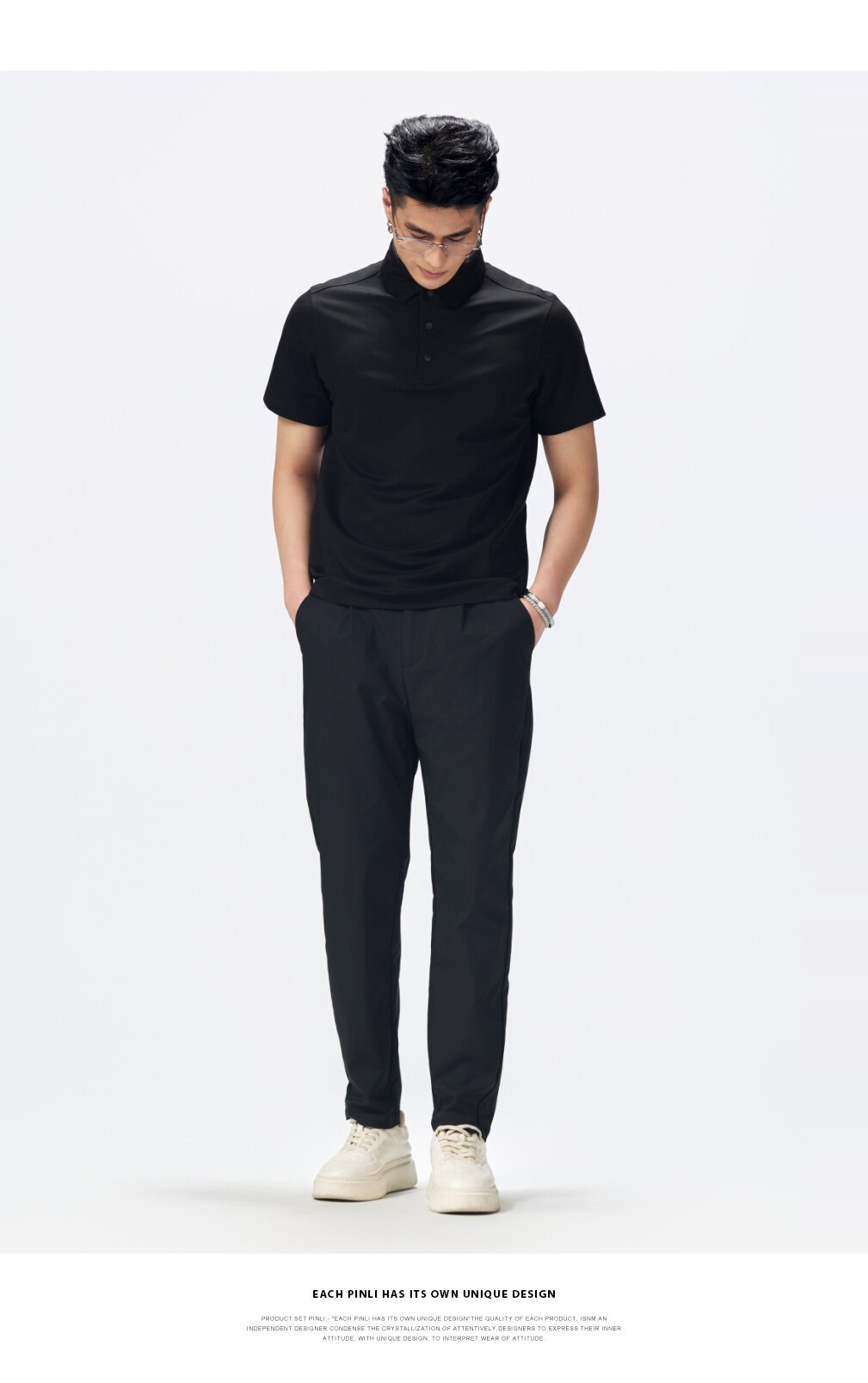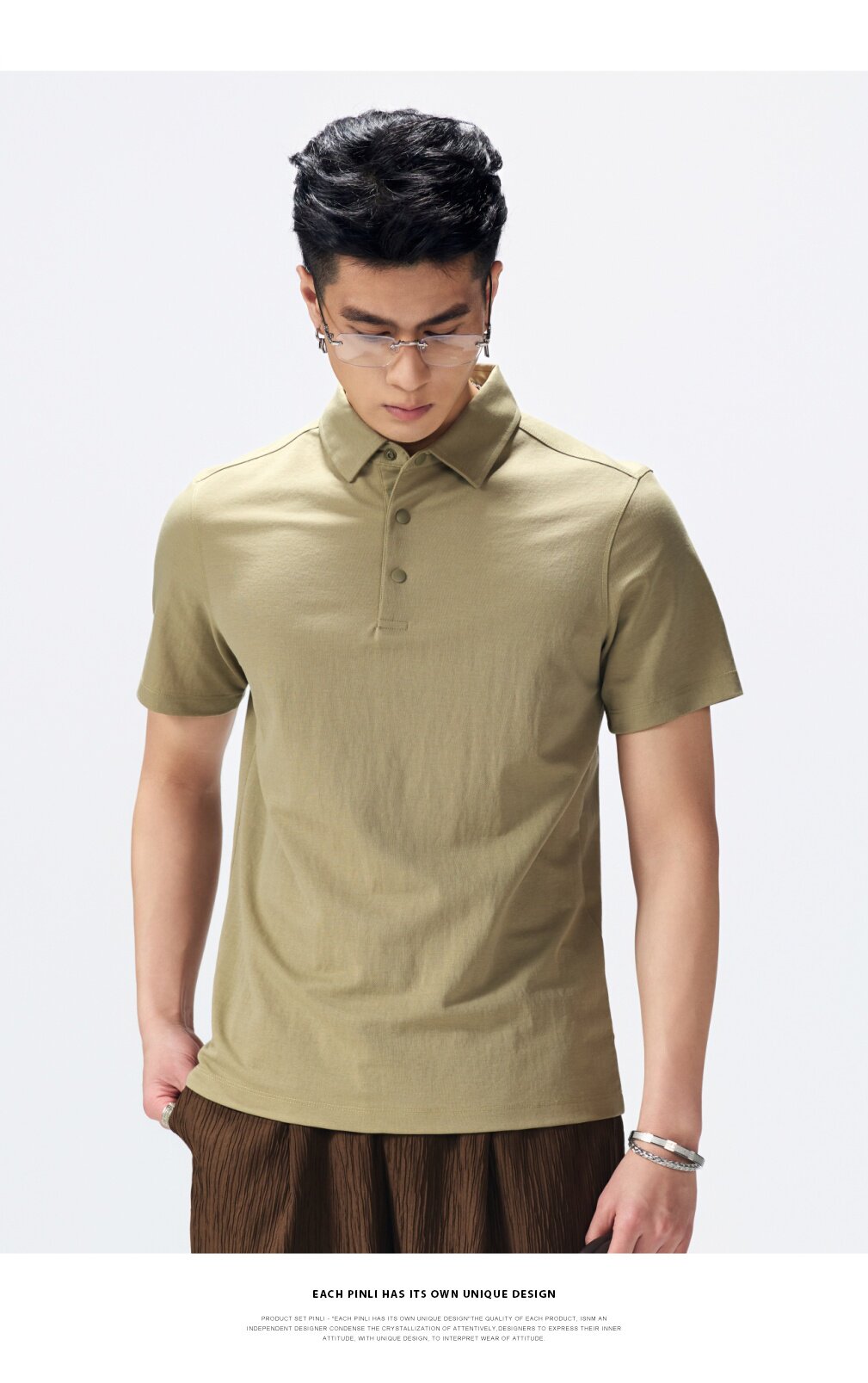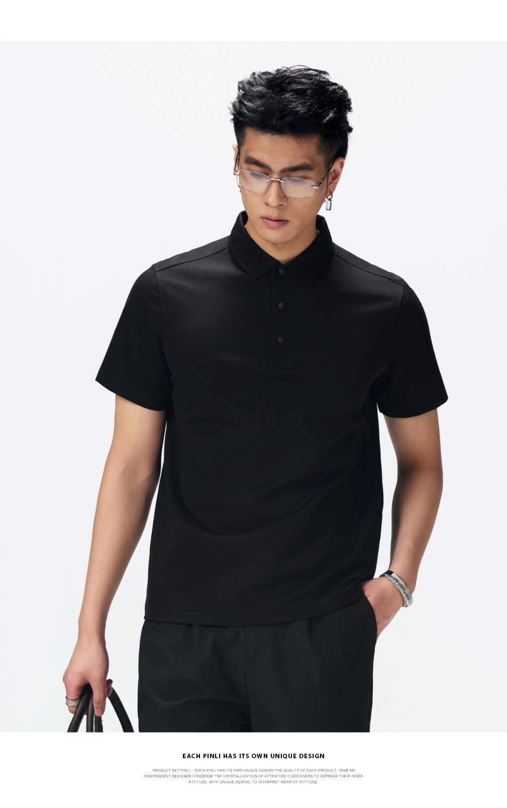 PINLI品立2026夏季新款青年纯色纽扣领短袖上衣POLO衫体恤潮牌男GD262112051