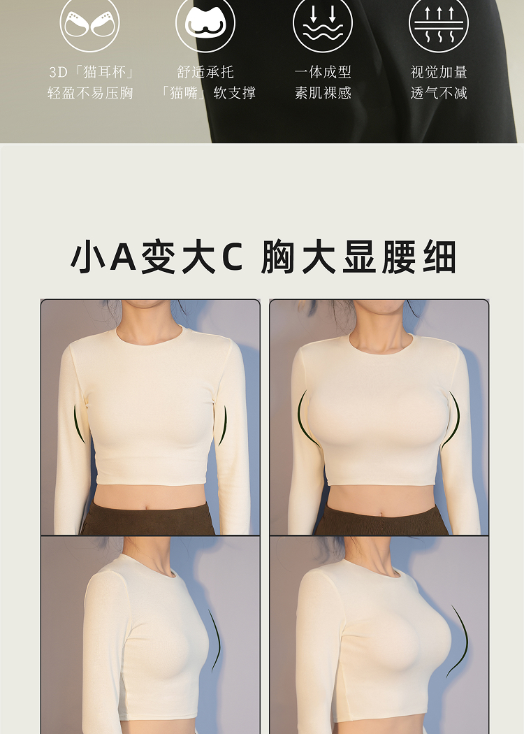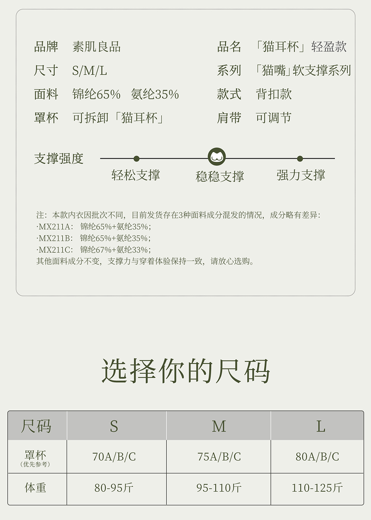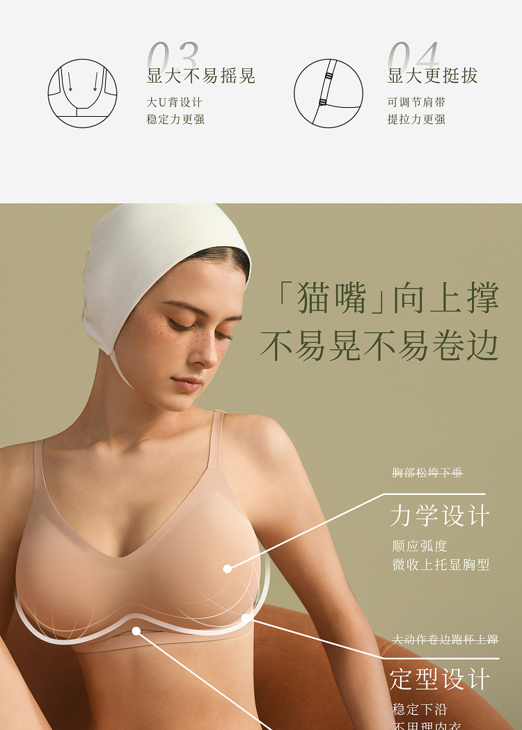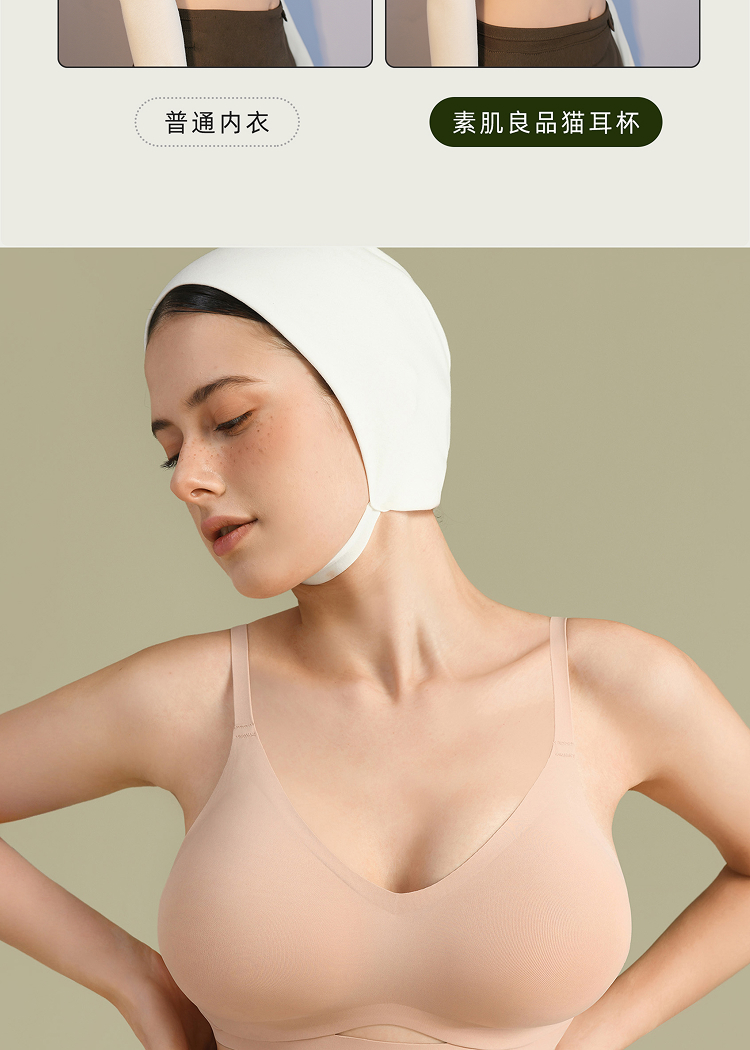 素肌良品猫耳杯外扩型胸内衣女小胸聚拢显大无痕漫画胸加厚文胸罩MX206-FX
