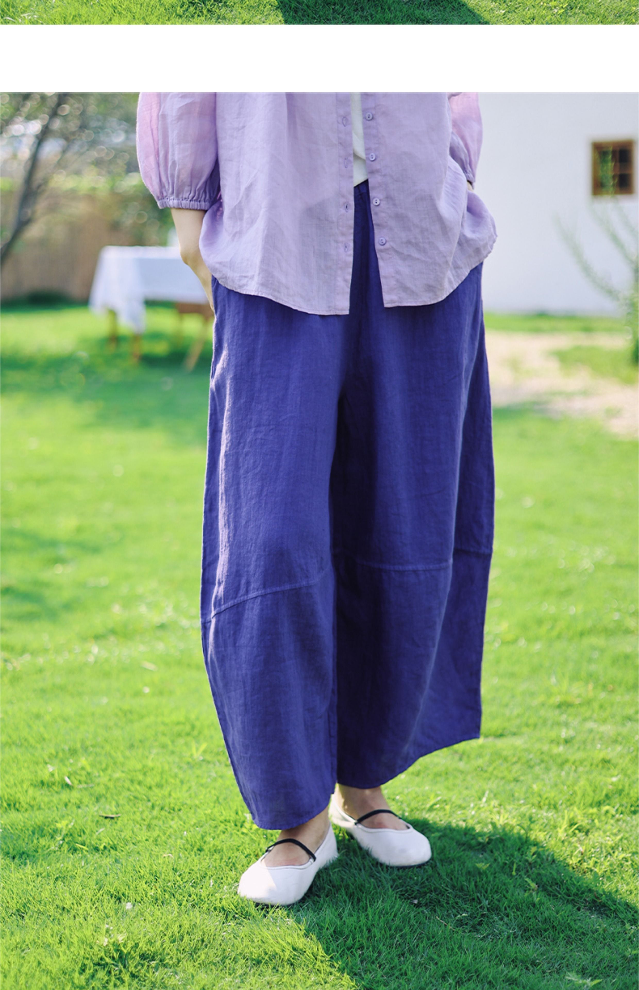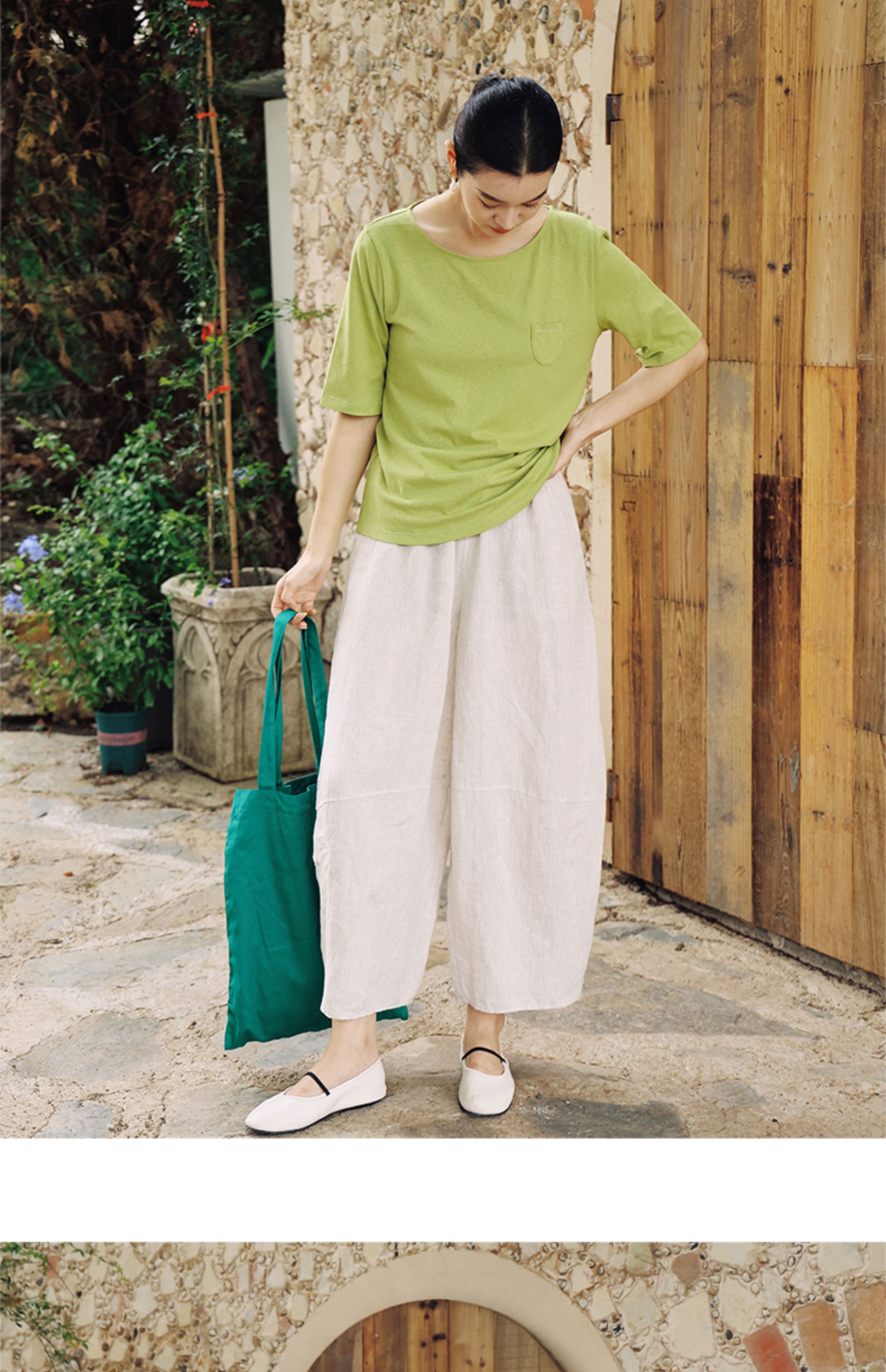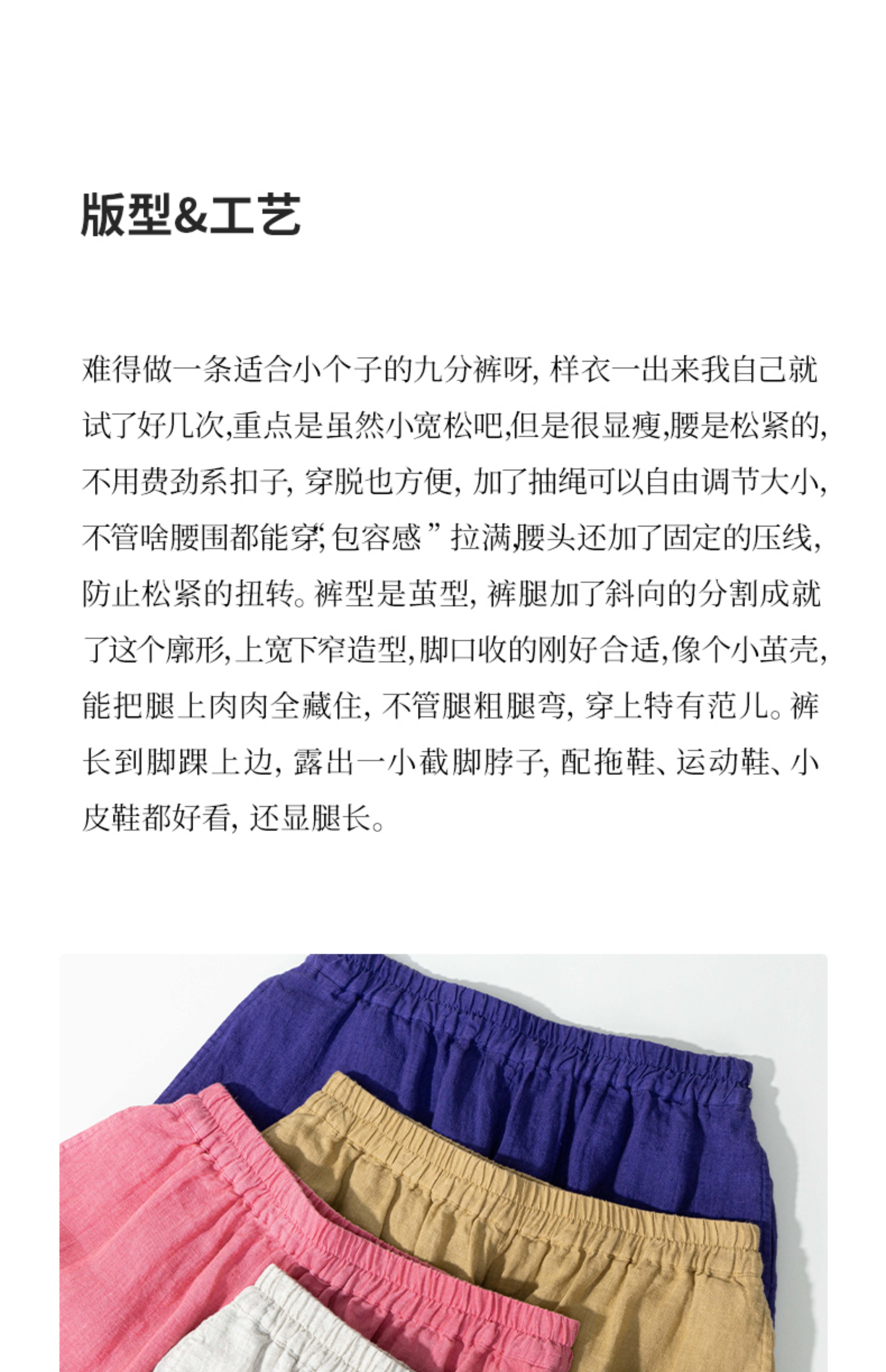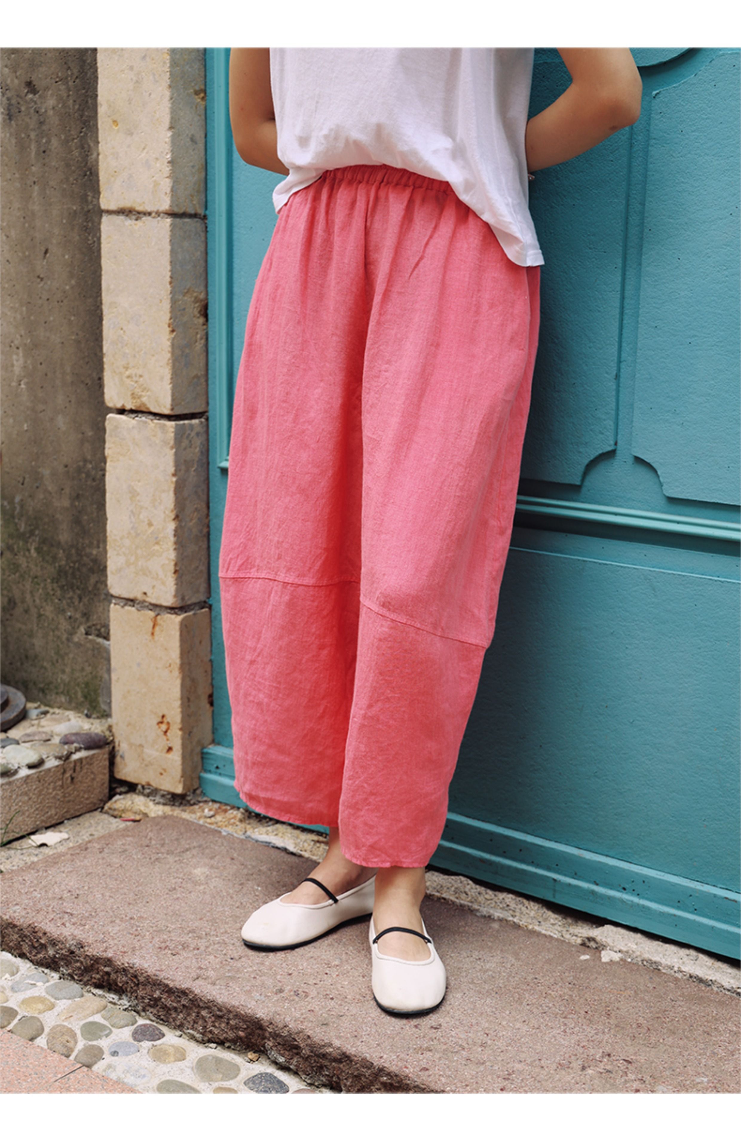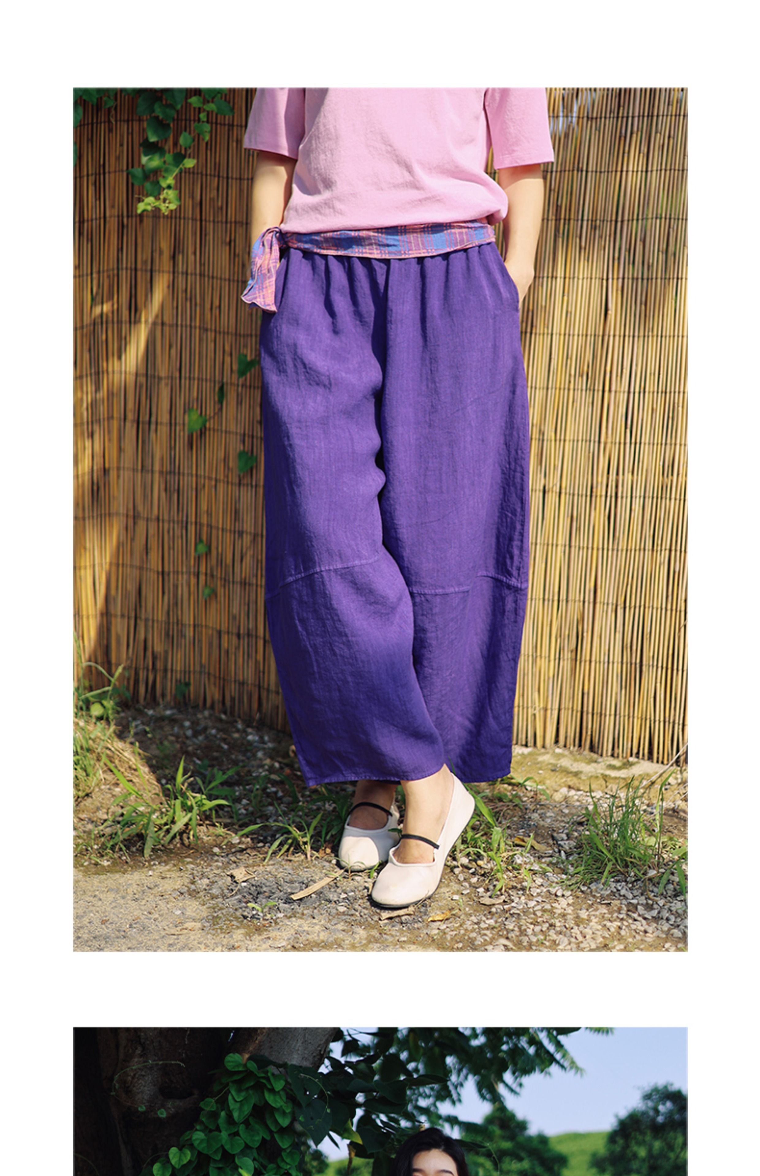 绽放368朵/【多巴胺系列·遛弯裤】高支砂洗薄款亚麻松紧腰九分裤