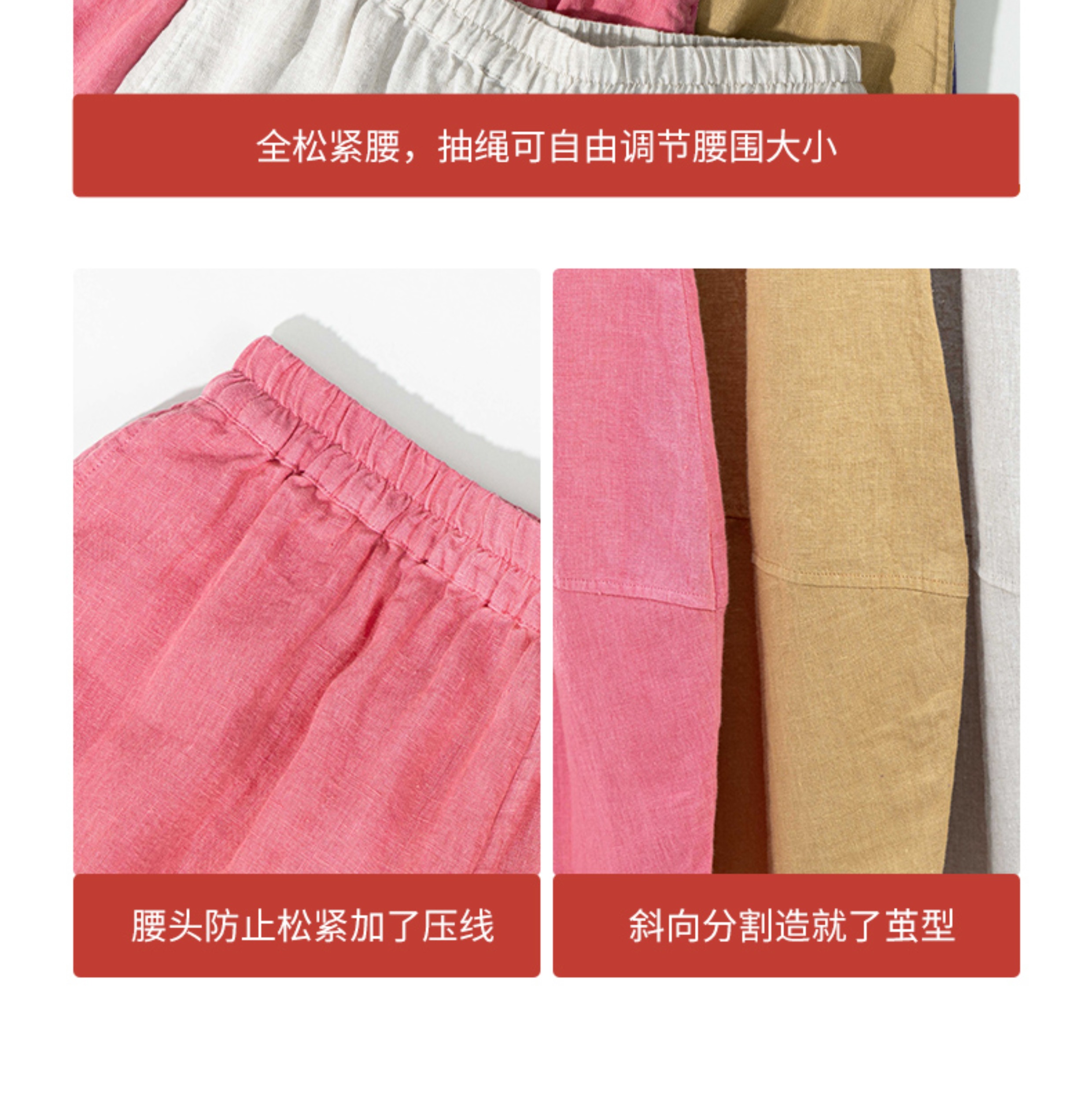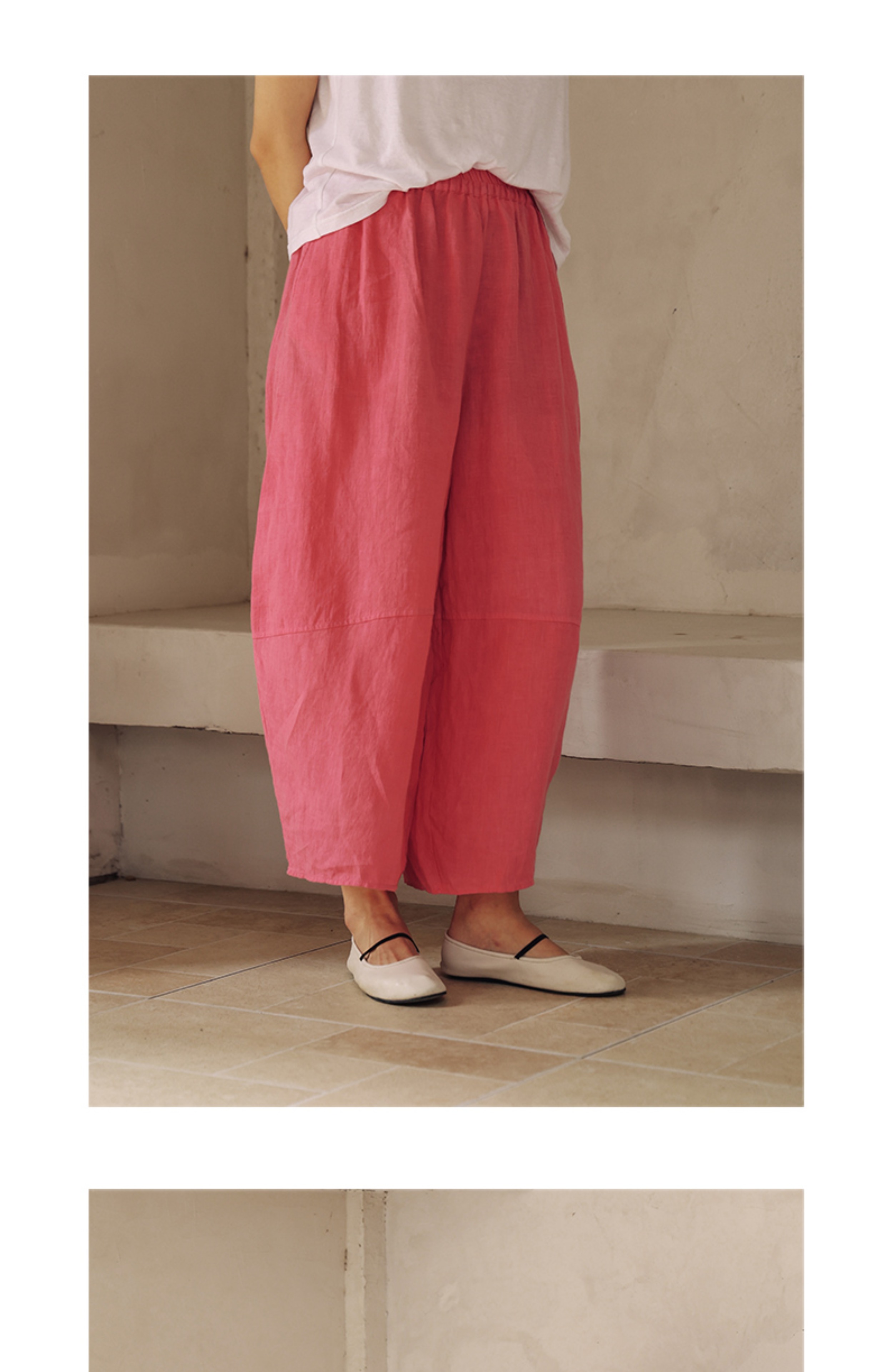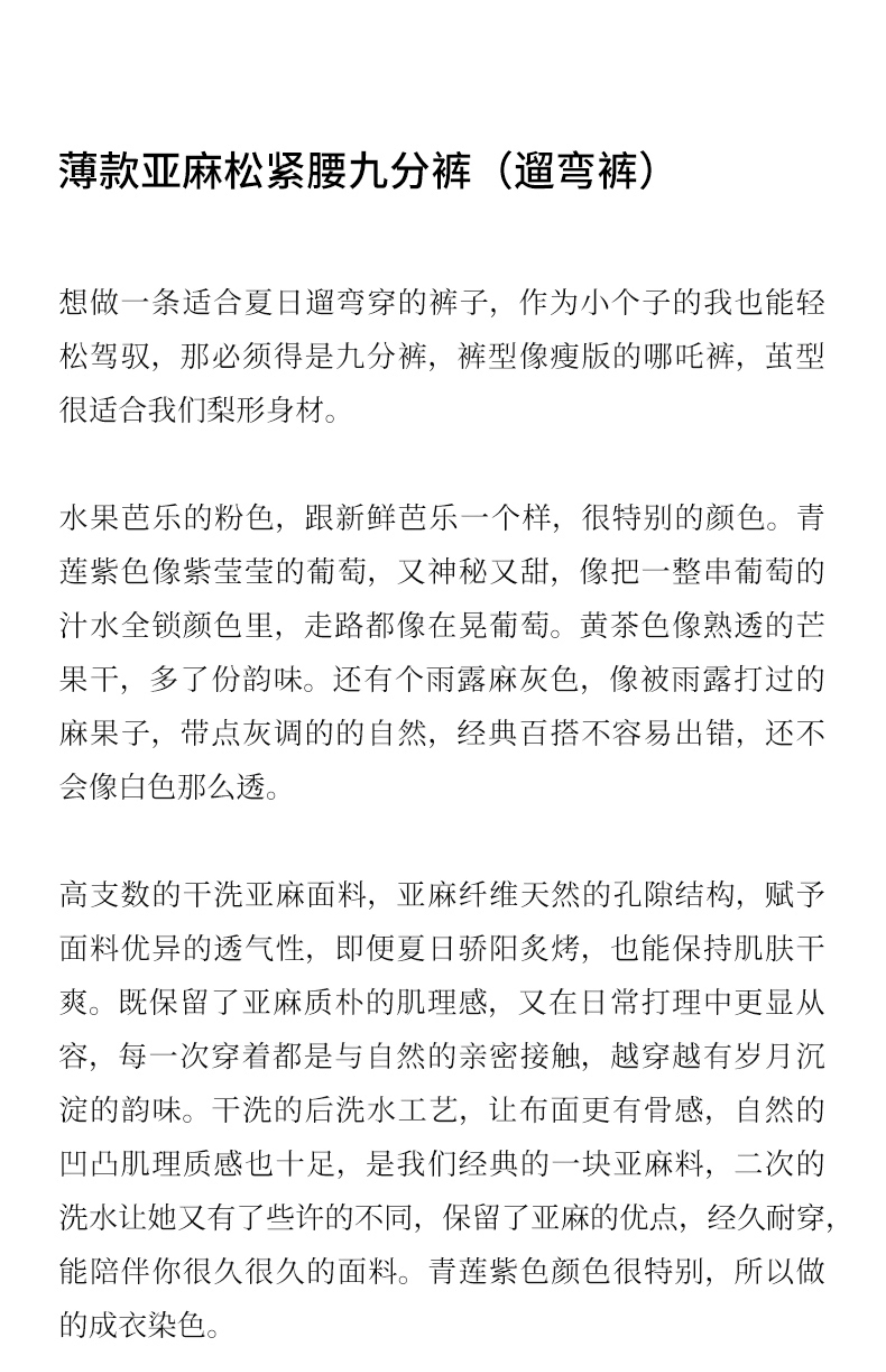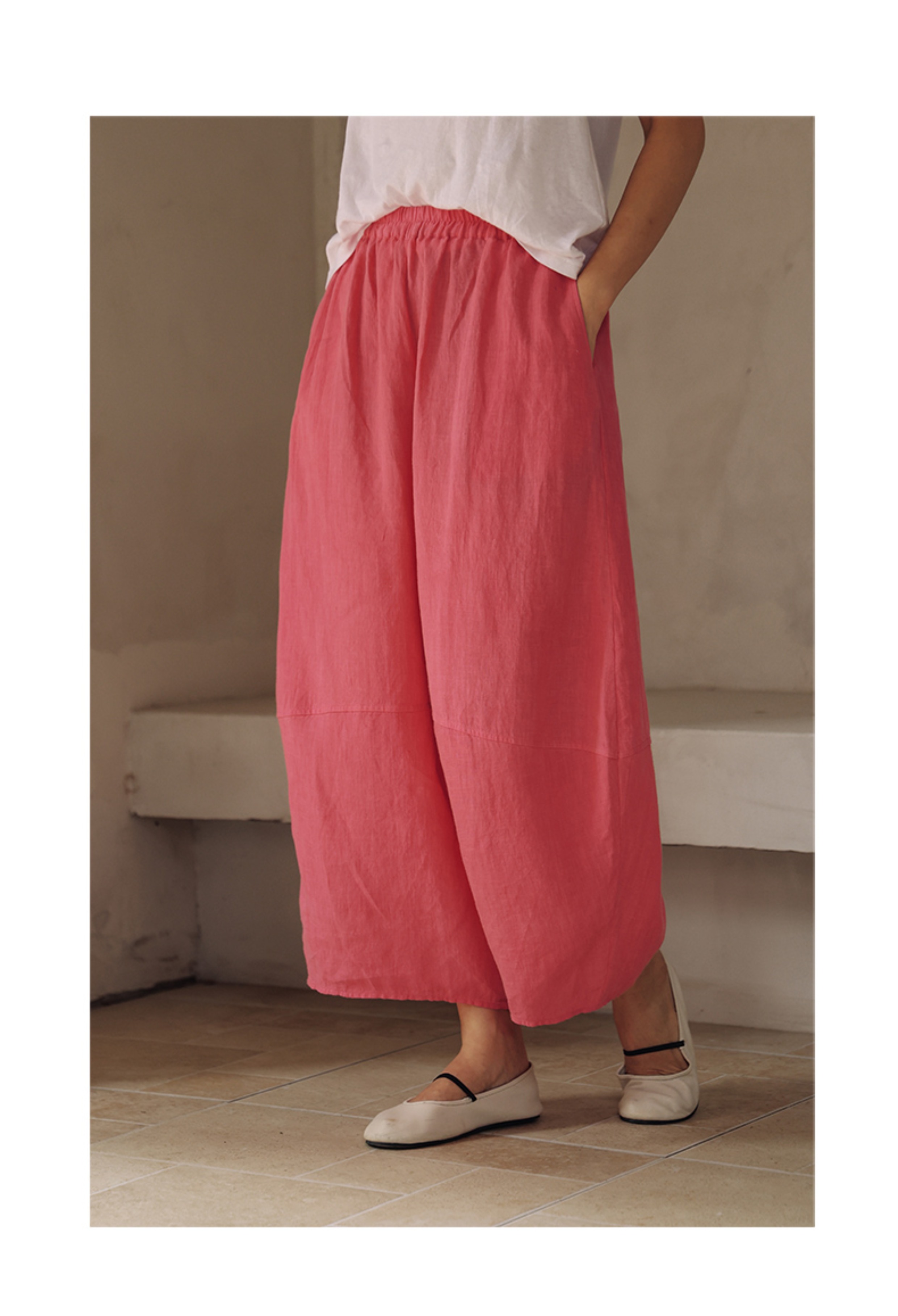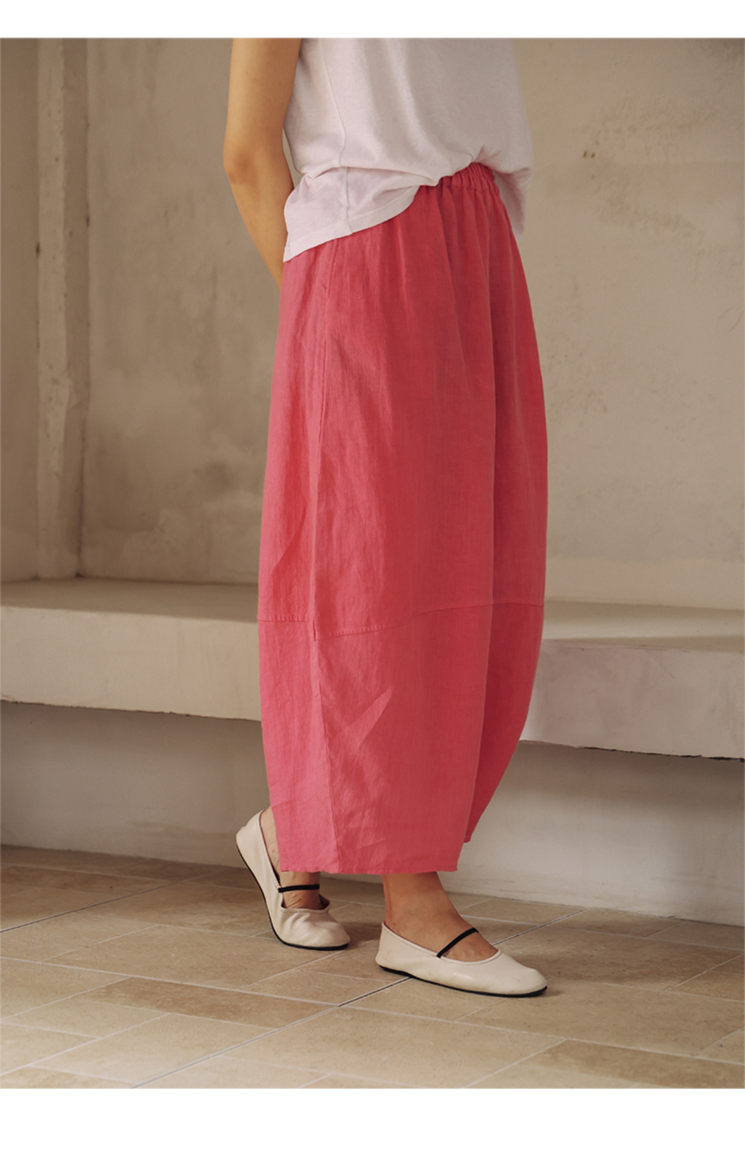 绽放368朵/【多巴胺系列·遛弯裤】高支砂洗薄款亚麻松紧腰九分裤