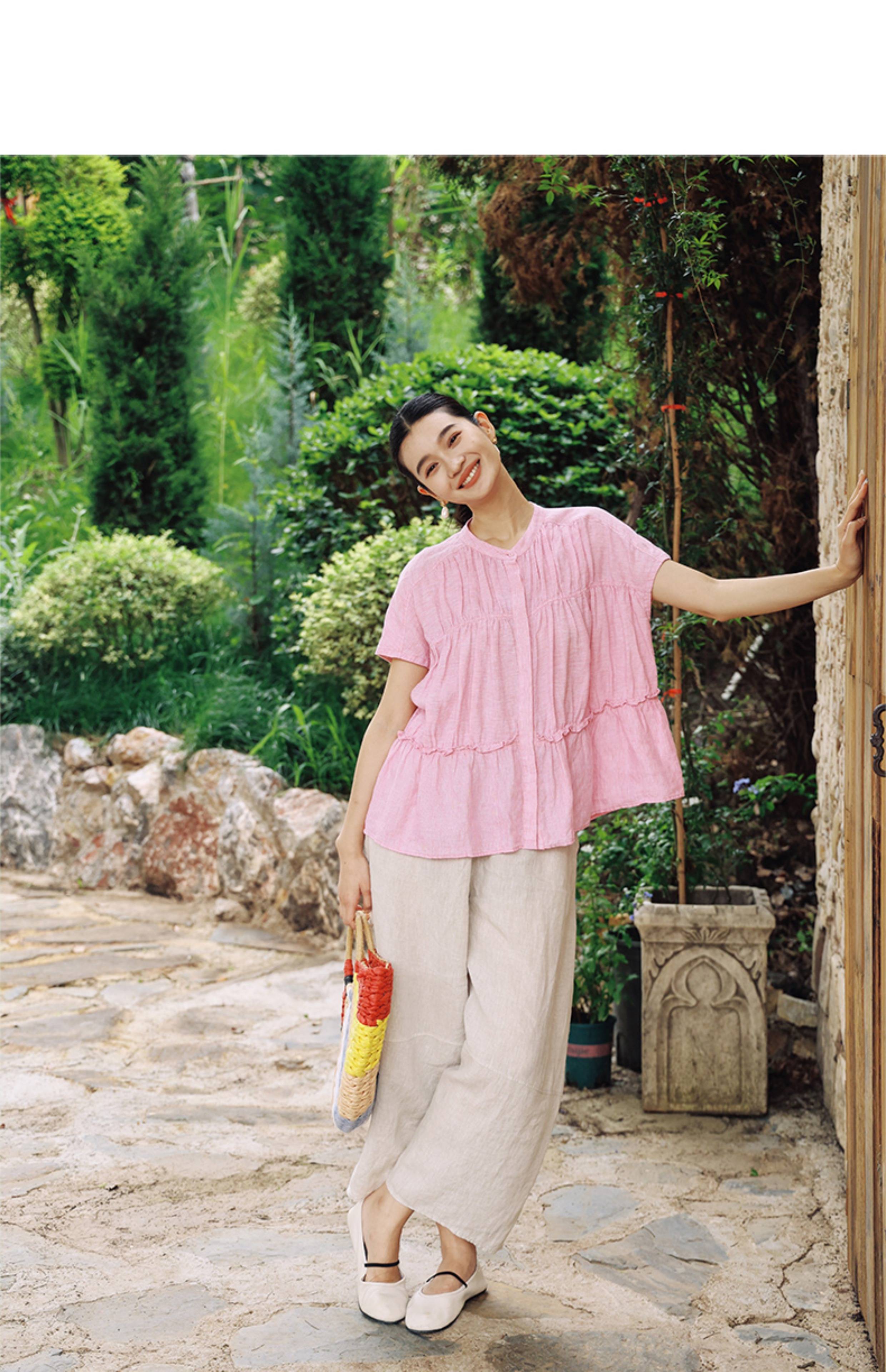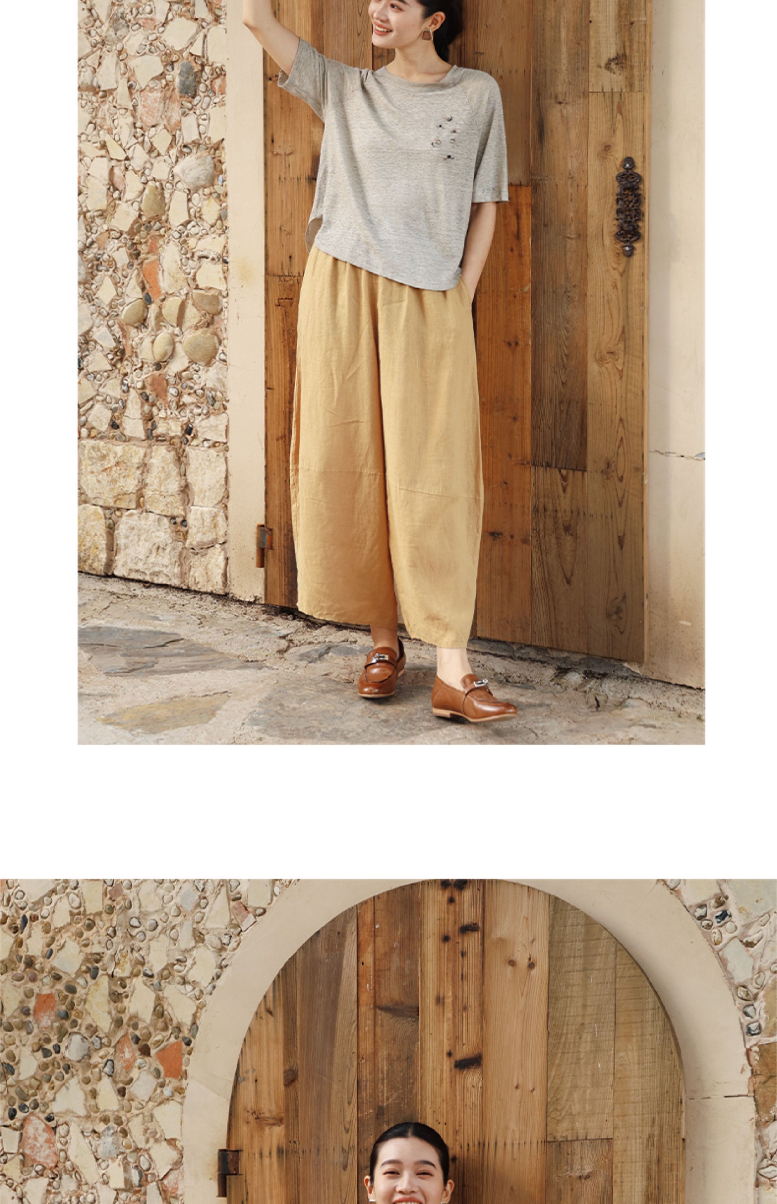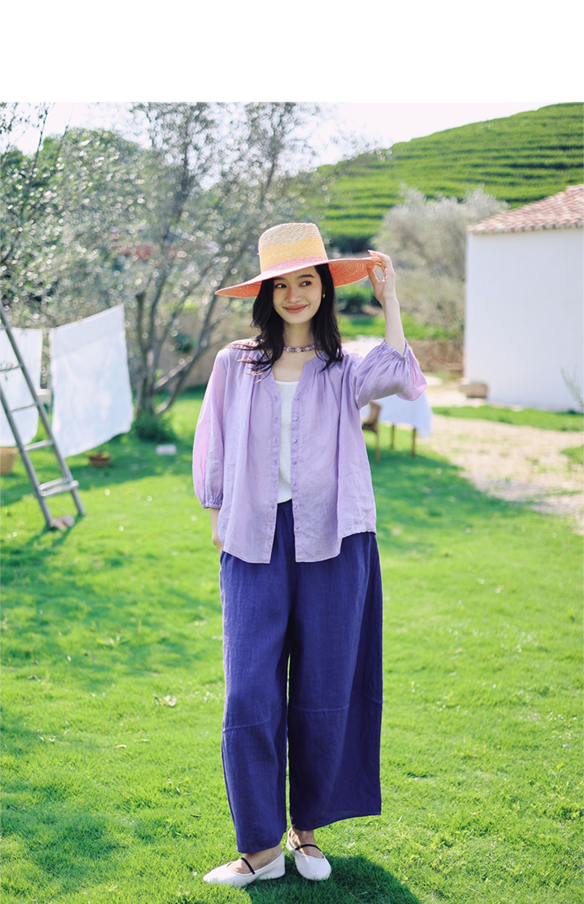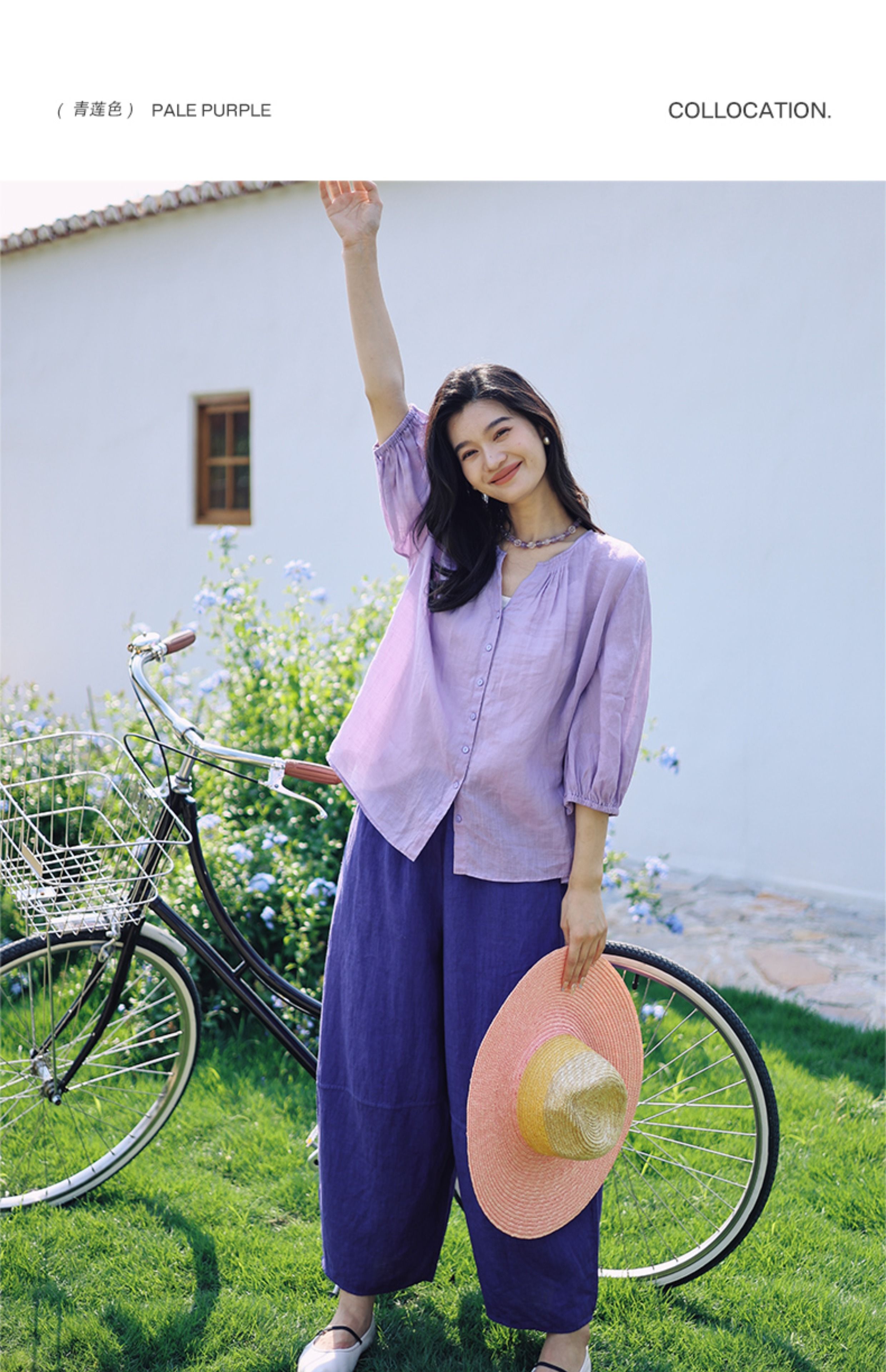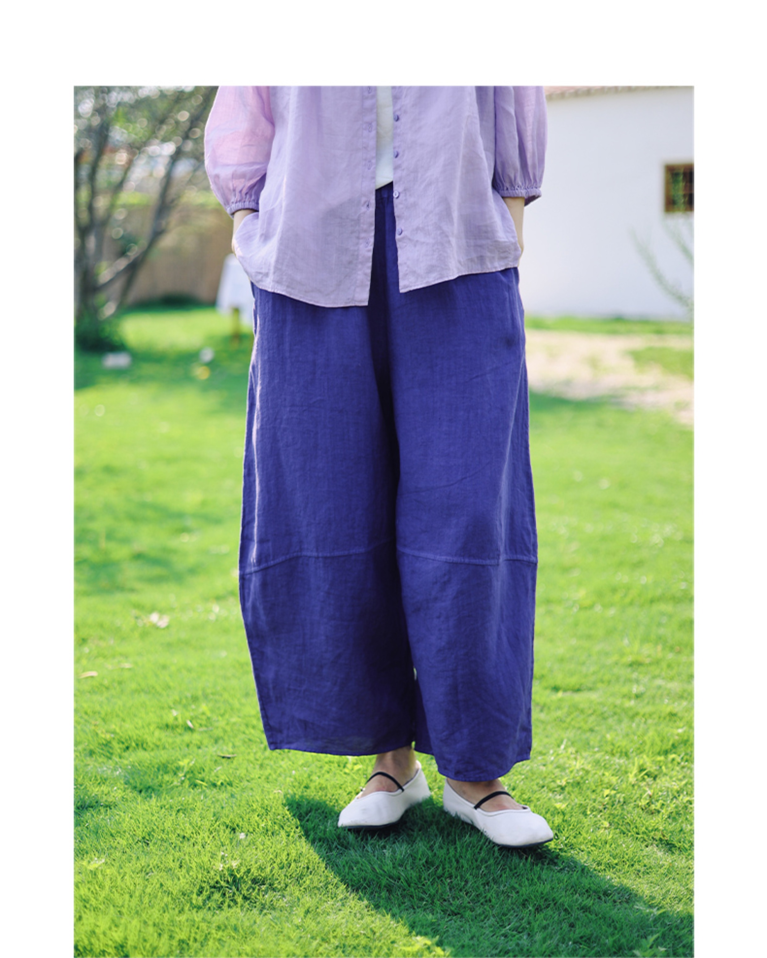 绽放368朵/【多巴胺系列·遛弯裤】高支砂洗薄款亚麻松紧腰九分裤