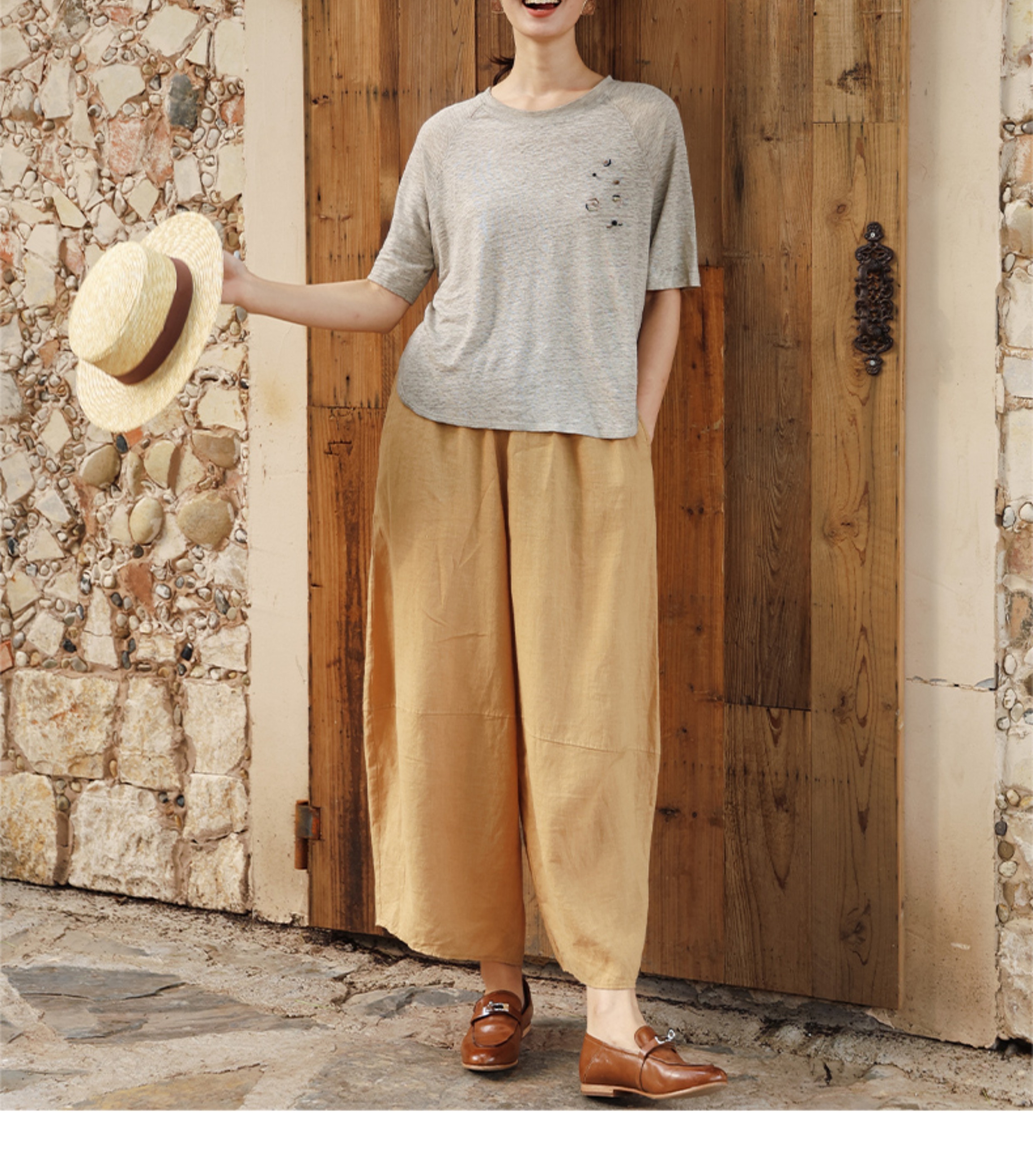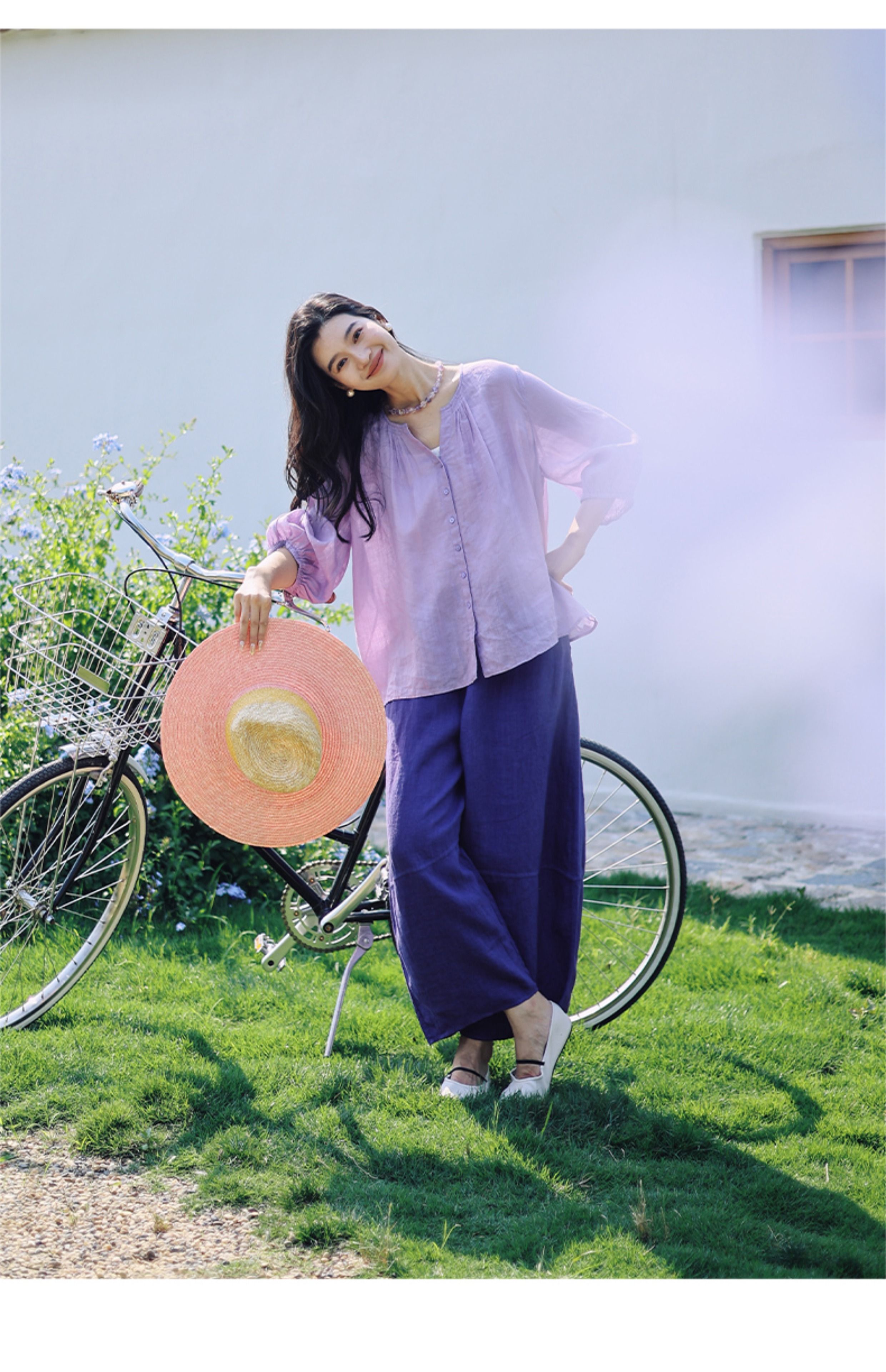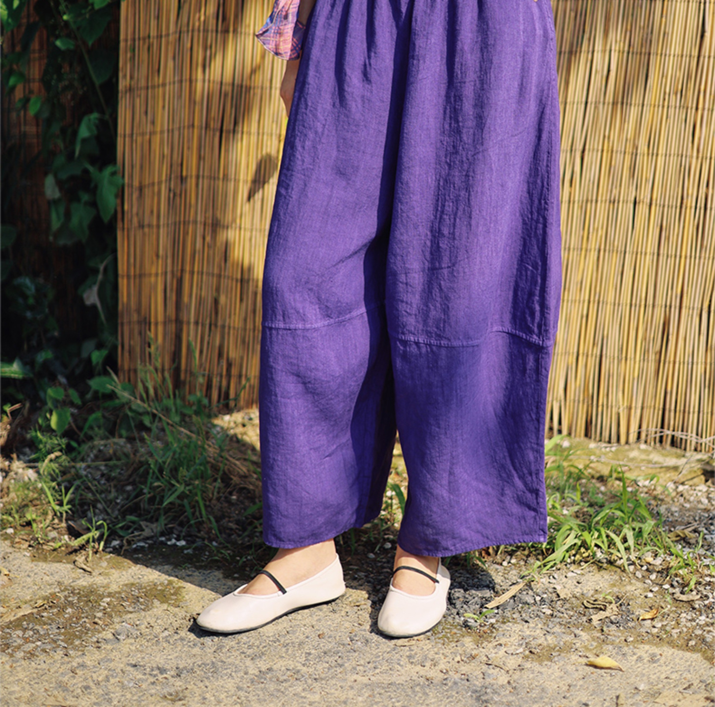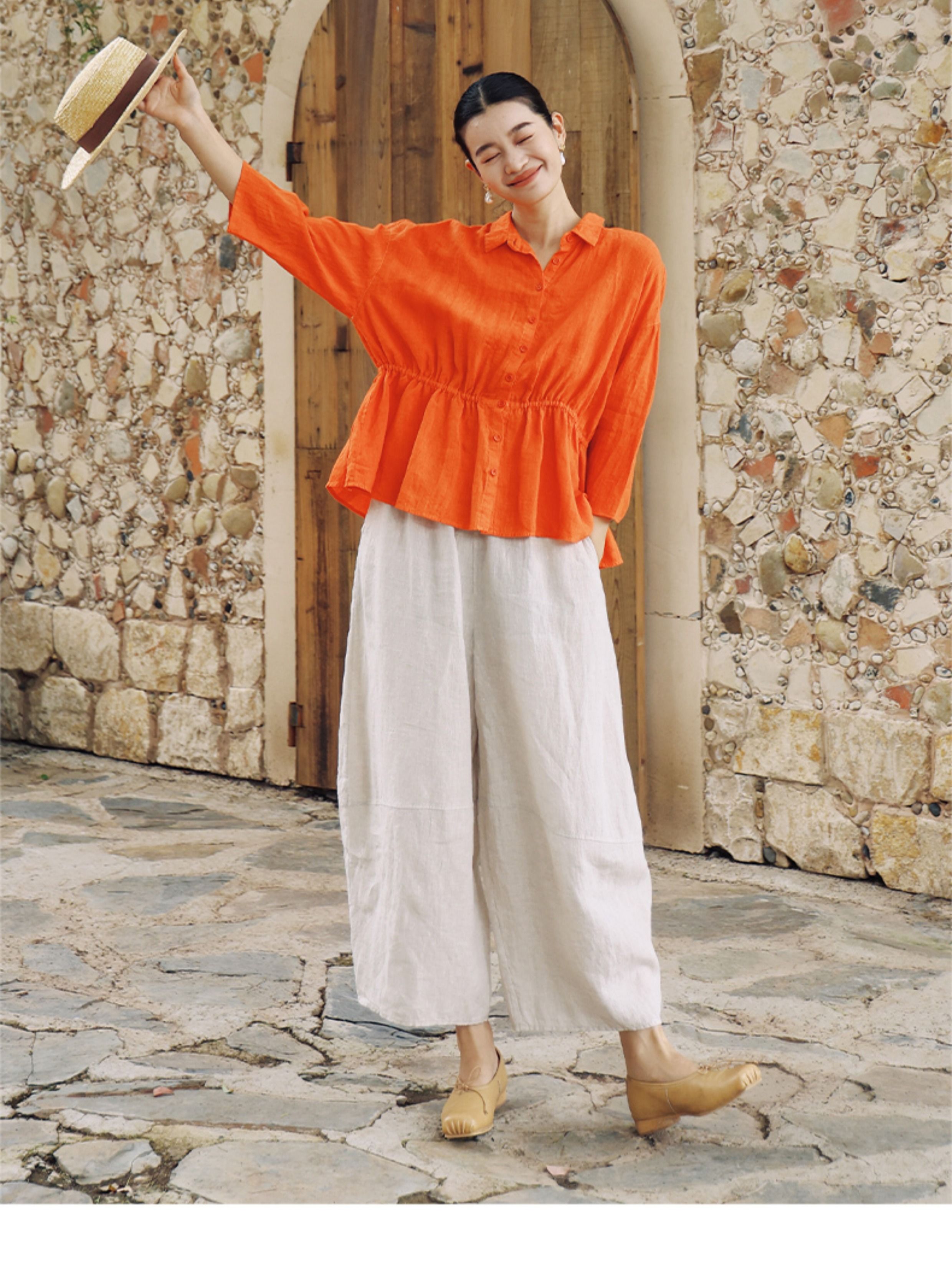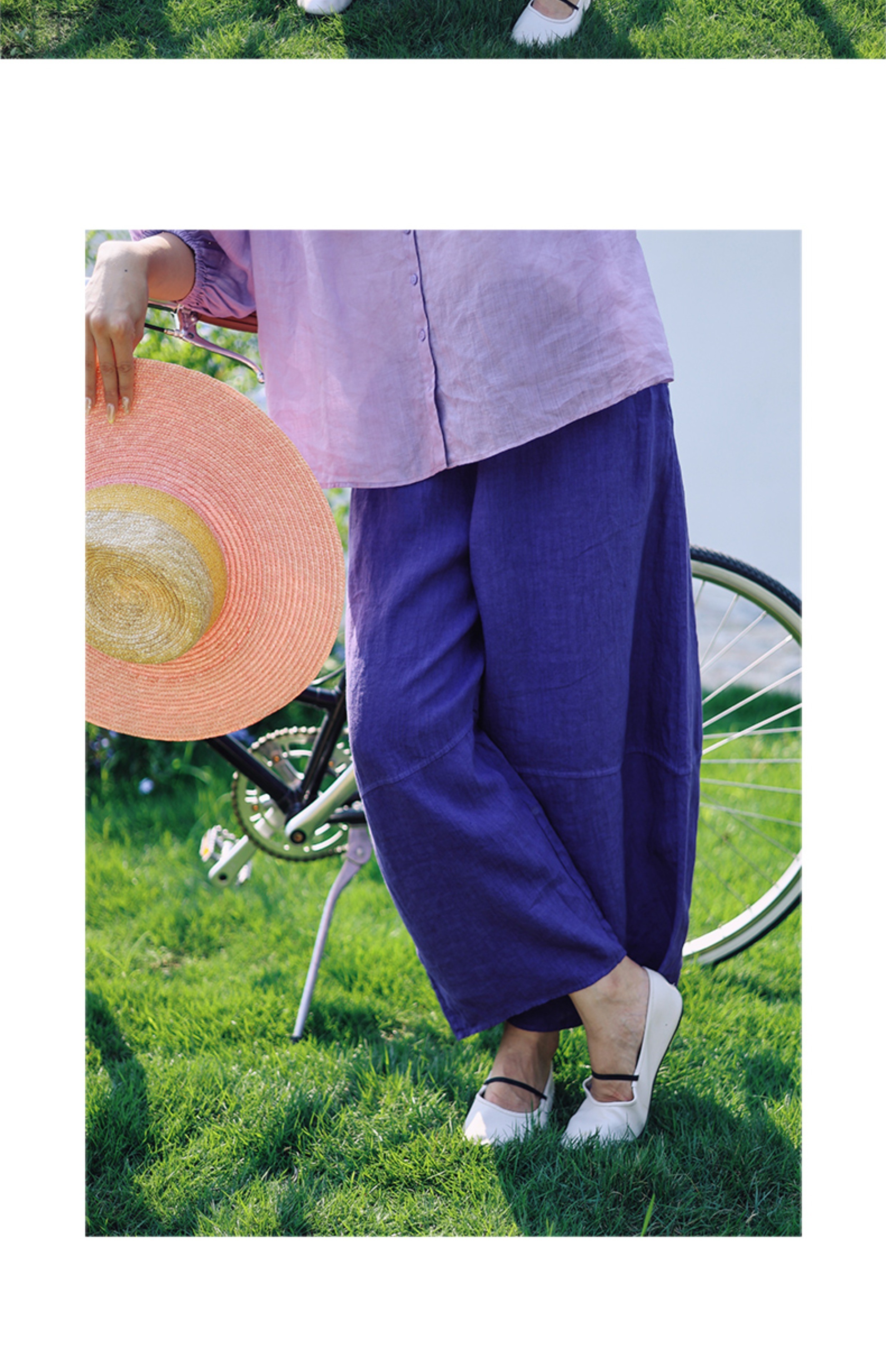 绽放368朵/【多巴胺系列·遛弯裤】高支砂洗薄款亚麻松紧腰九分裤