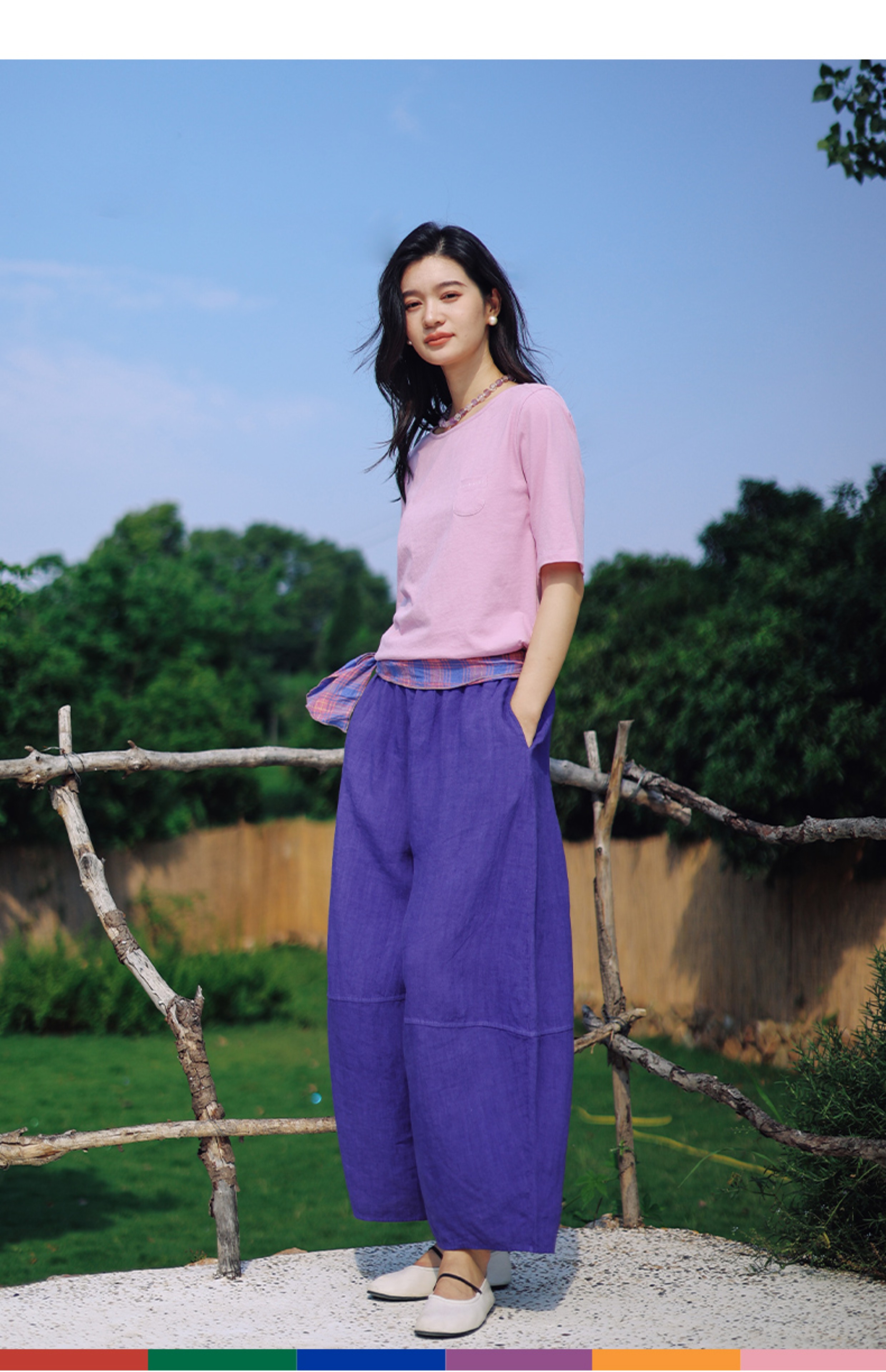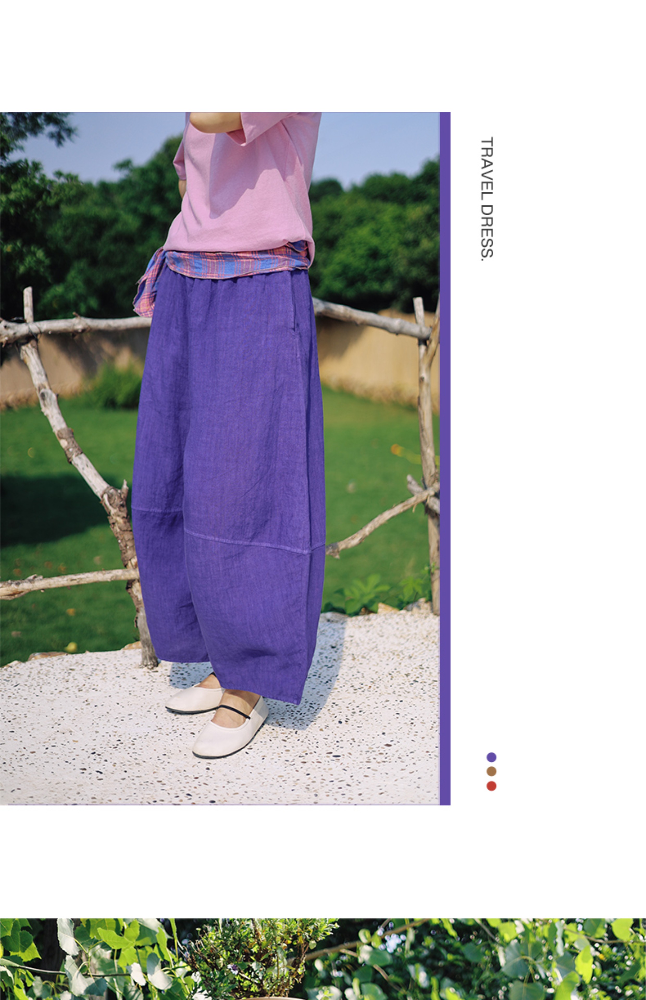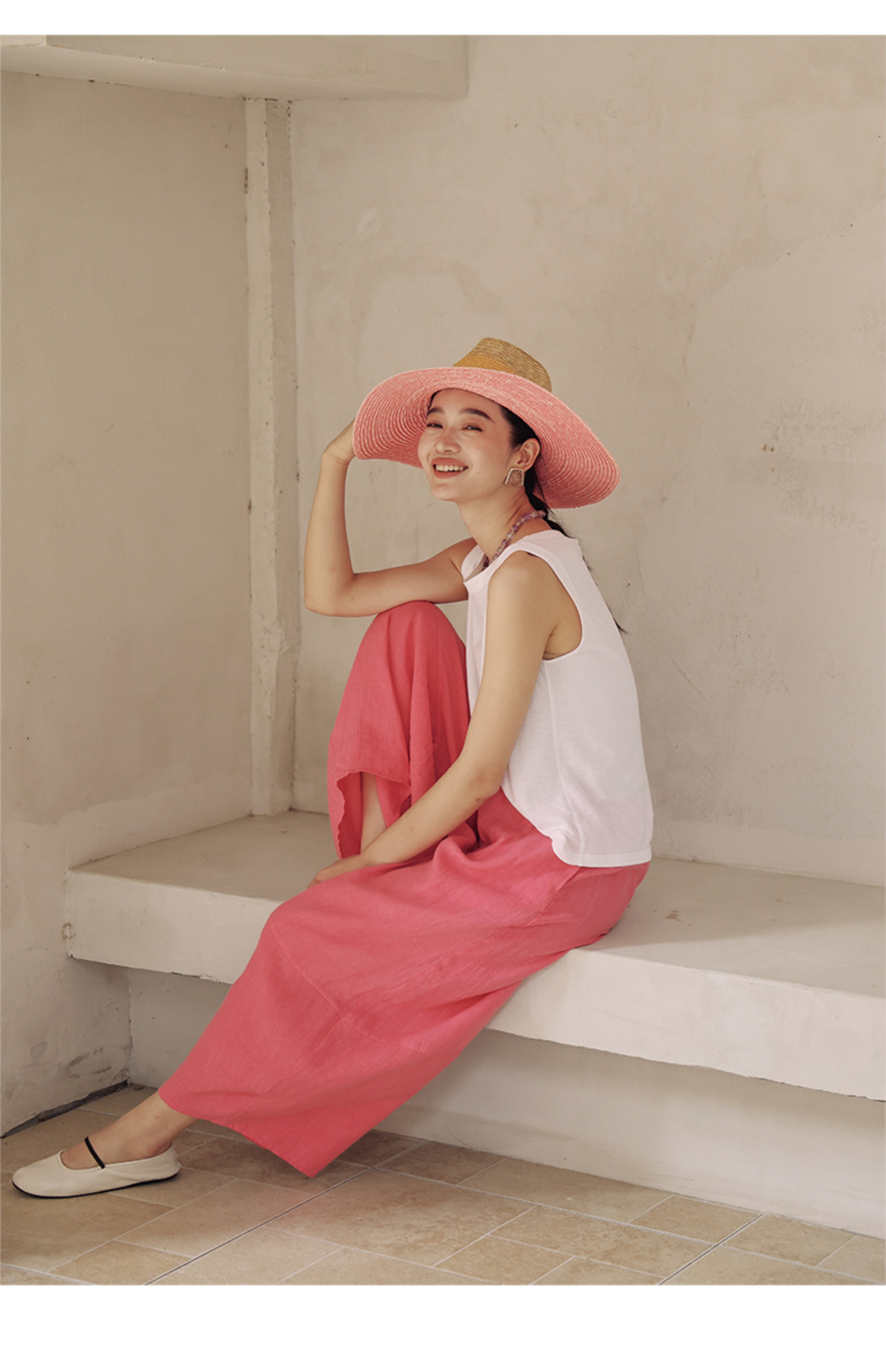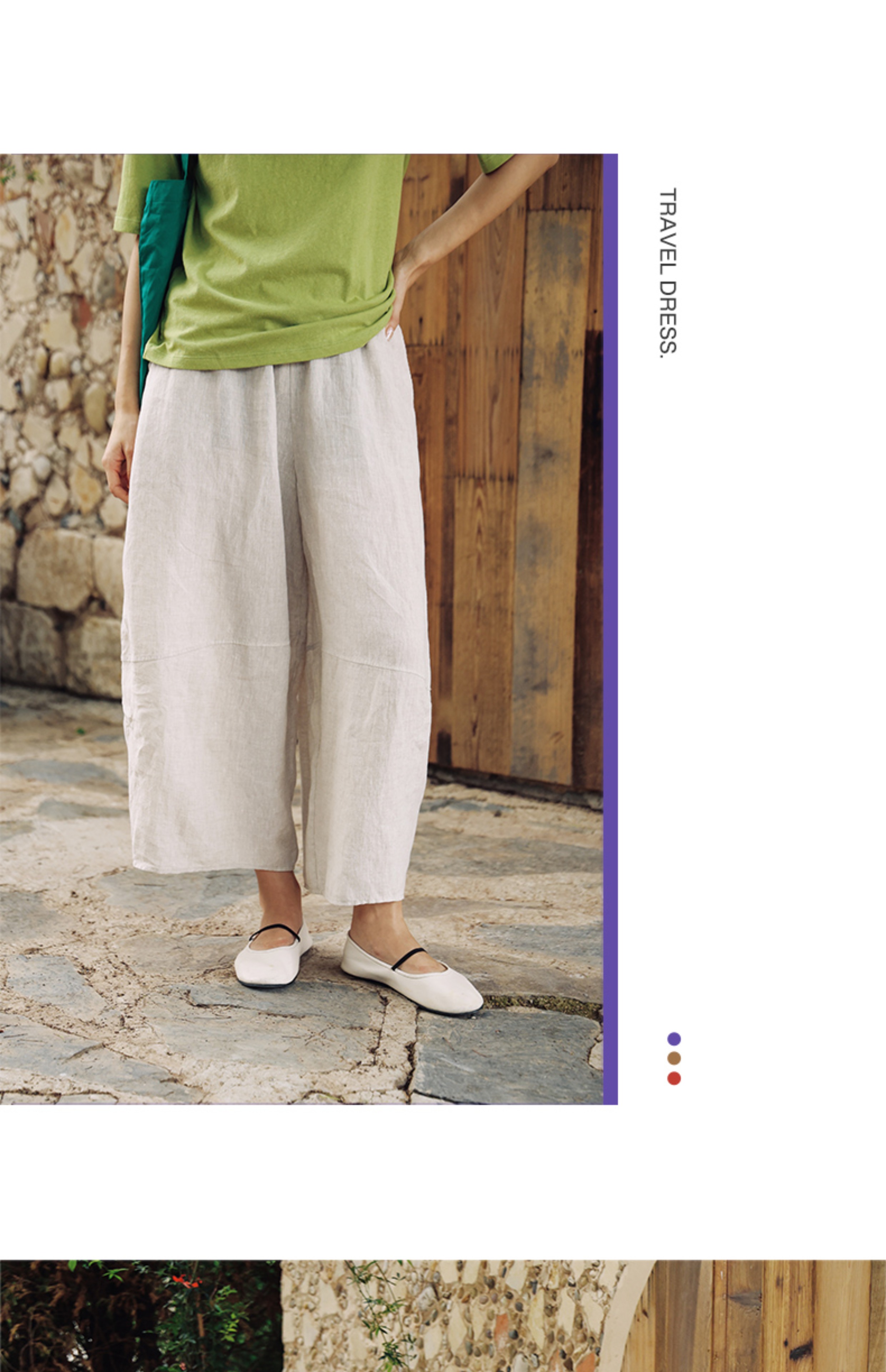 以天然亚麻为载体,融合热烈色彩与自在剪裁为身在城市、心怀远方的女性提供兼具美学与舒适的旅行着装