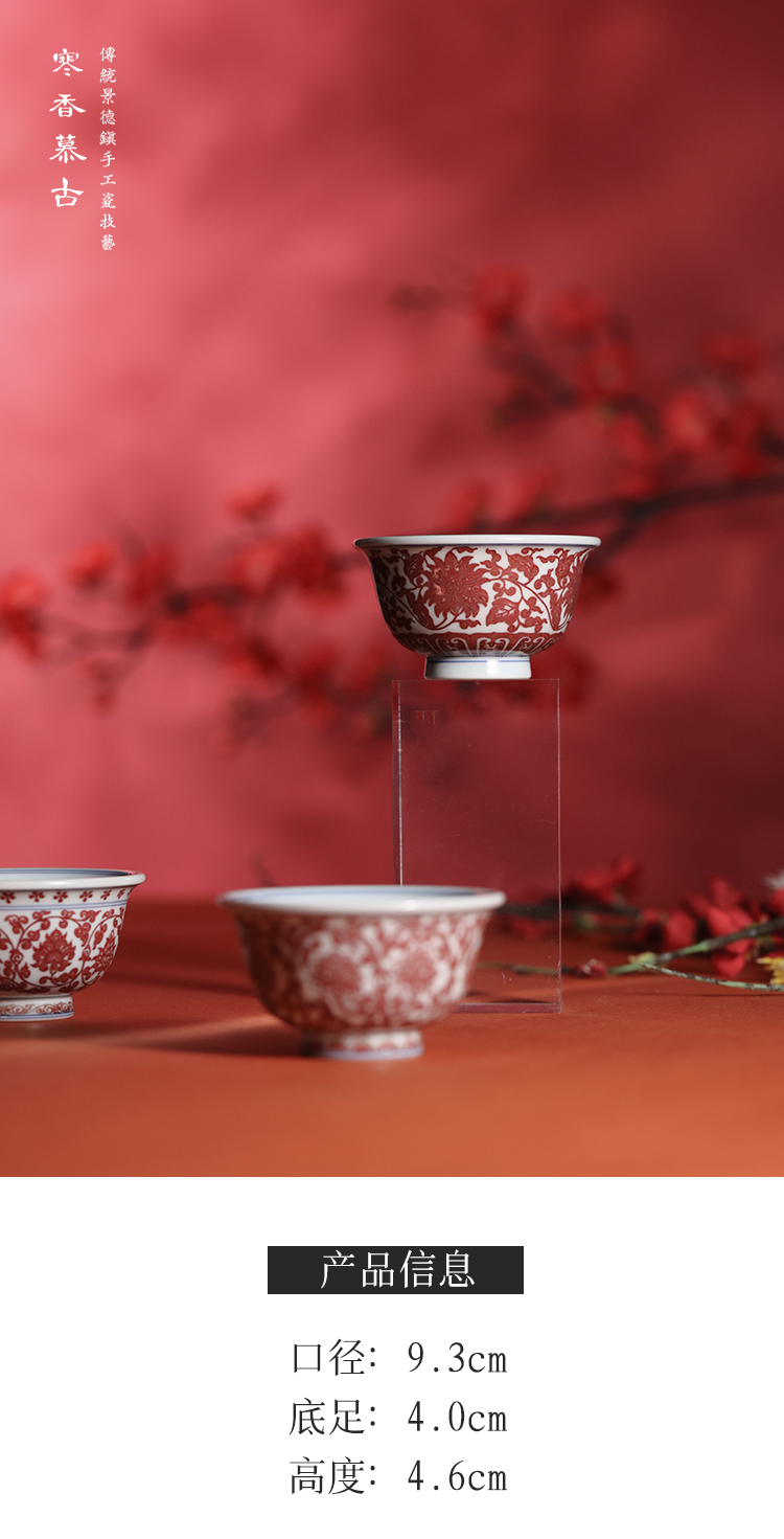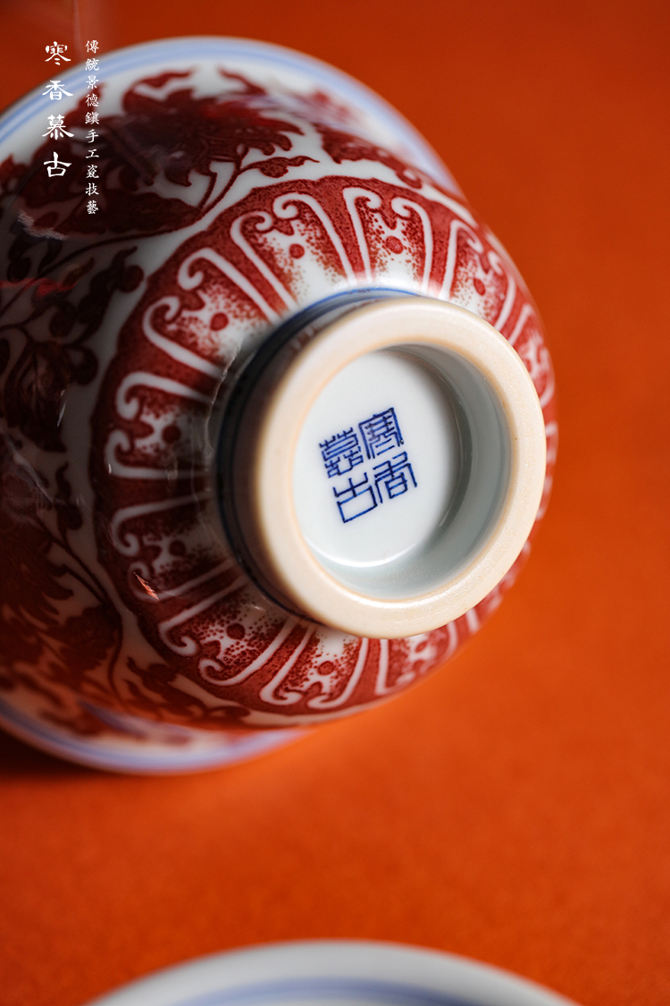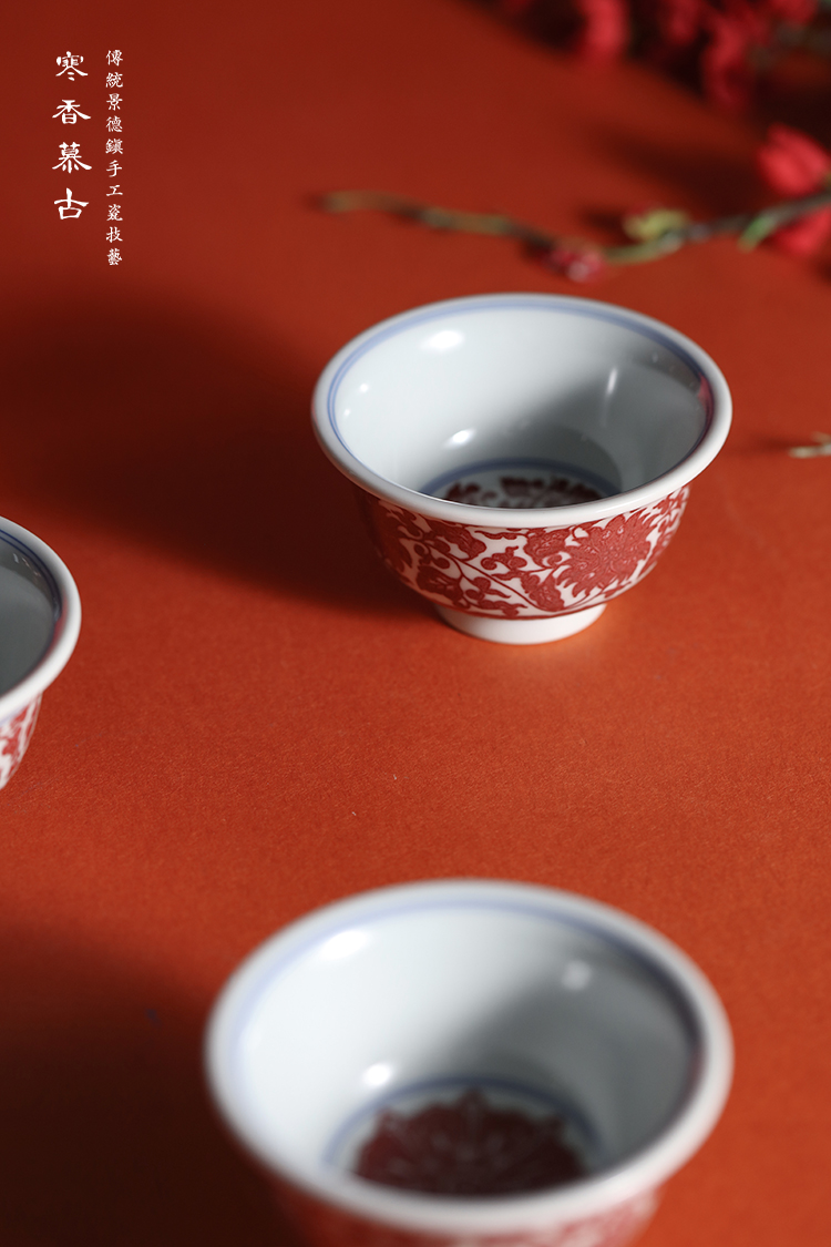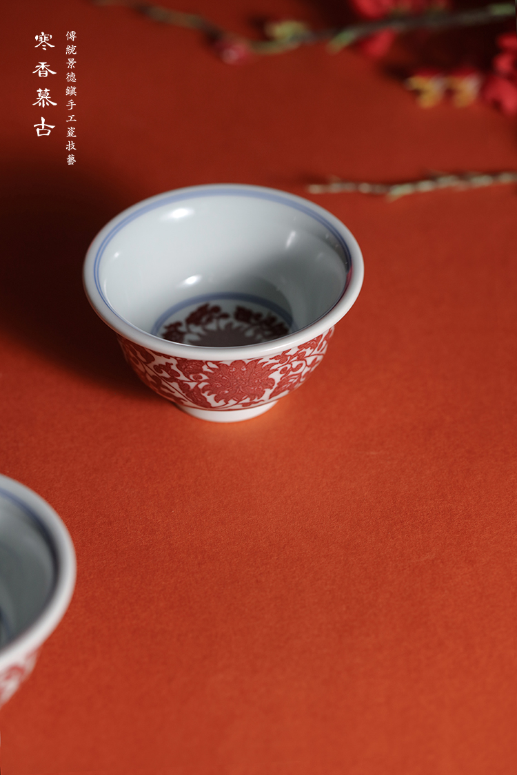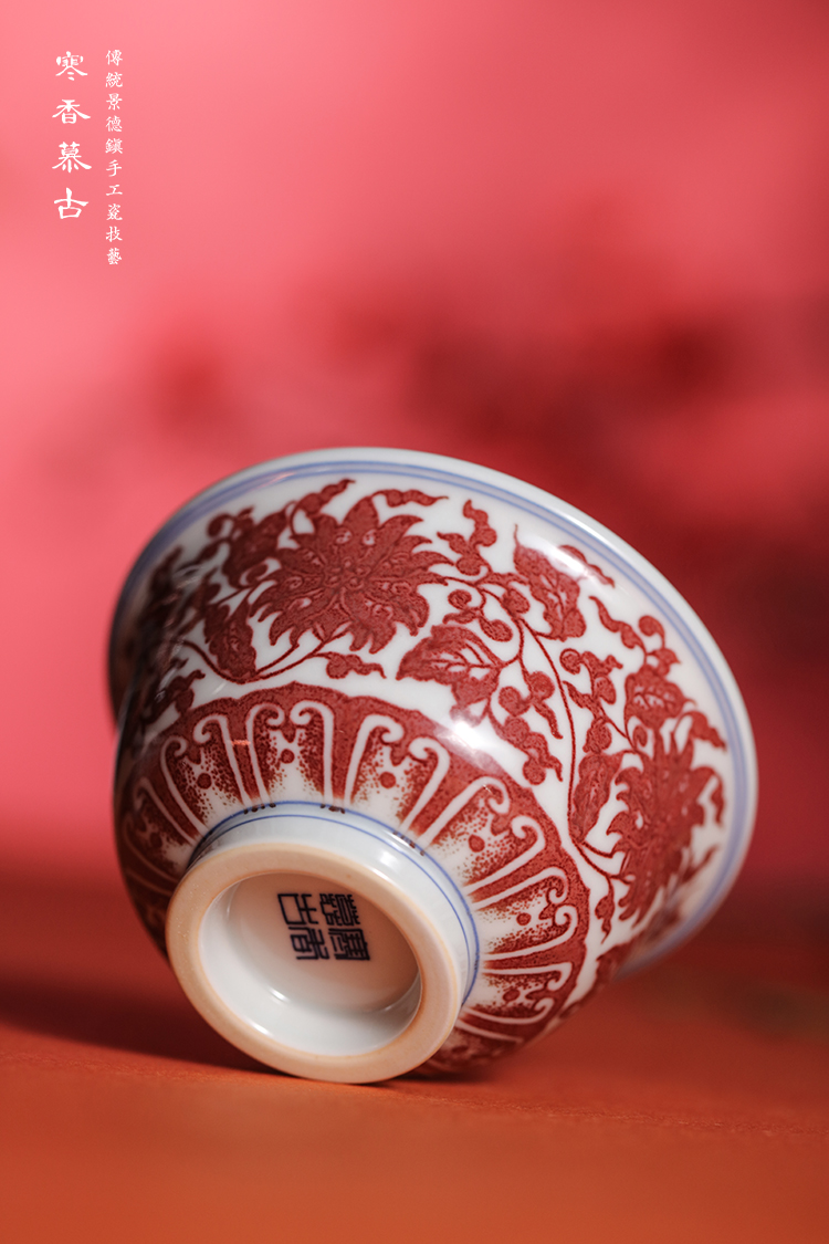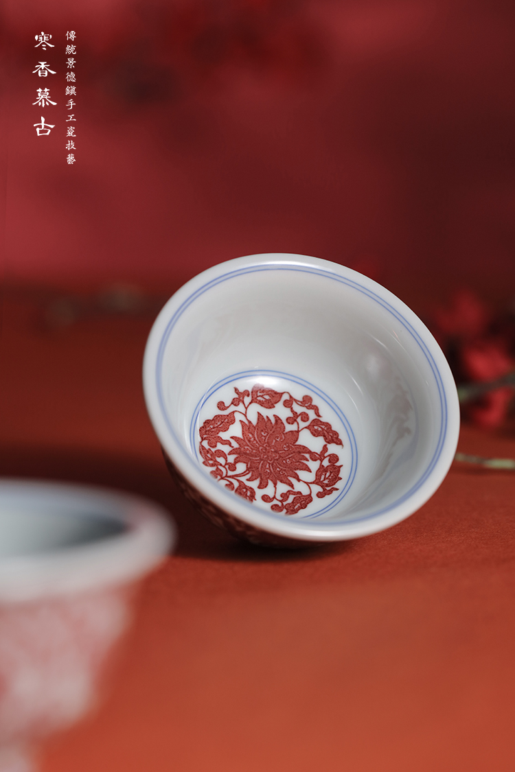 寒香慕古釉里红缠枝莲花心压手杯(下单前请先咨询客服)