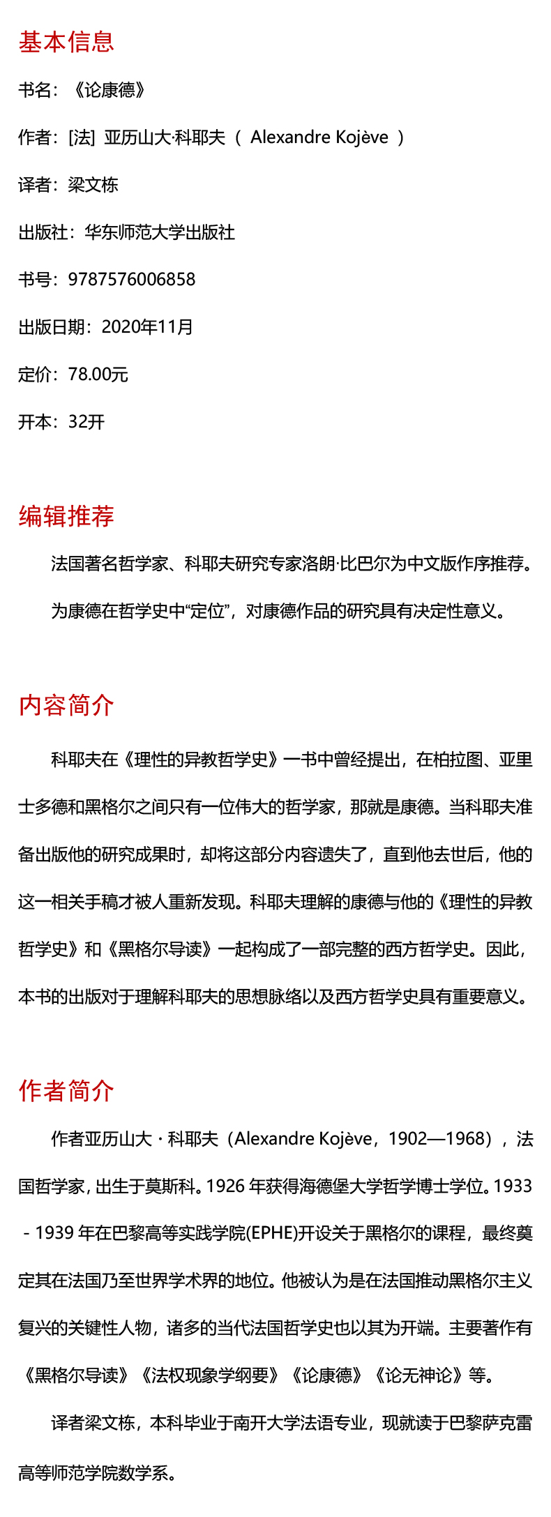 论康德 快与慢文丛 科耶夫 西方哲学史 正版 精装 华东师范大学出版社