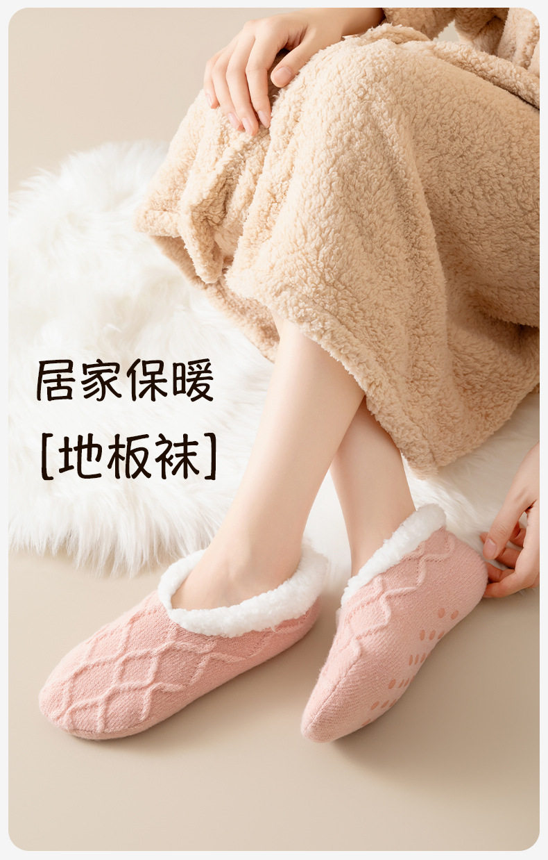 【居家保暖防滑暖脚地板袜】地板袜冬季大人加绒加厚保暖鞋袜女士居家袜套羊羔绒鞋袜
