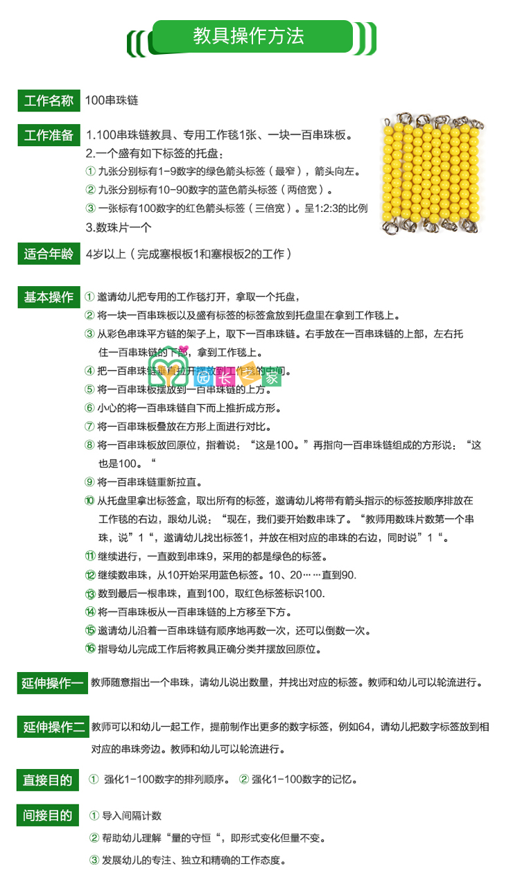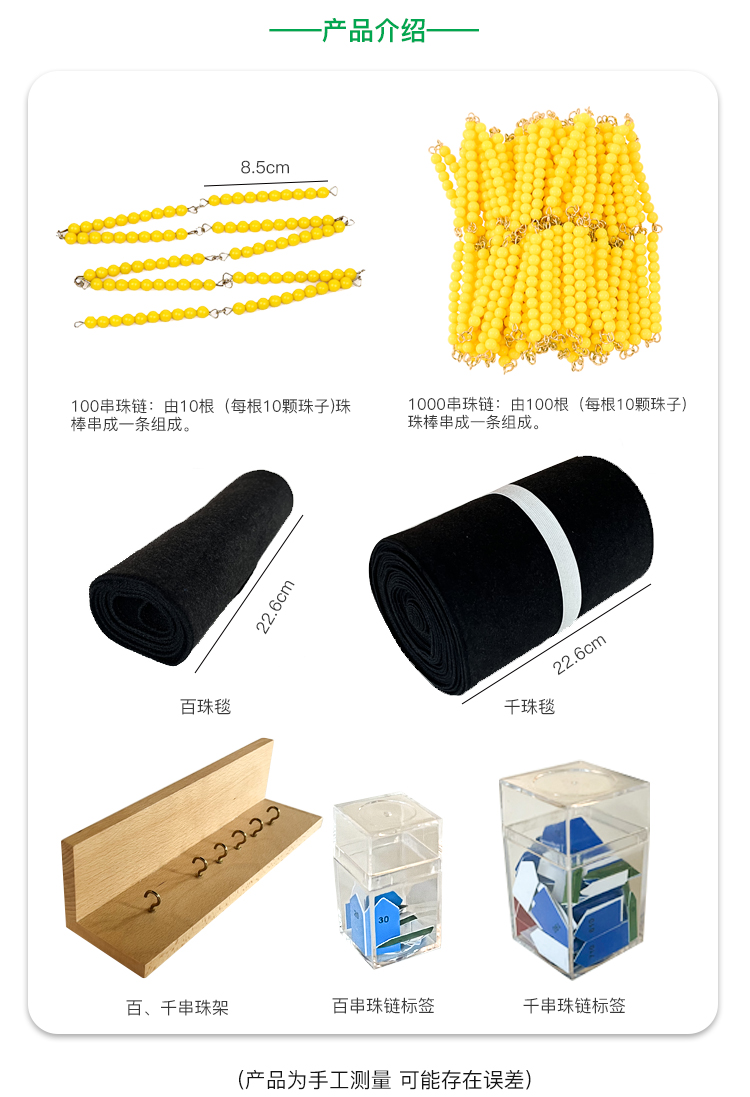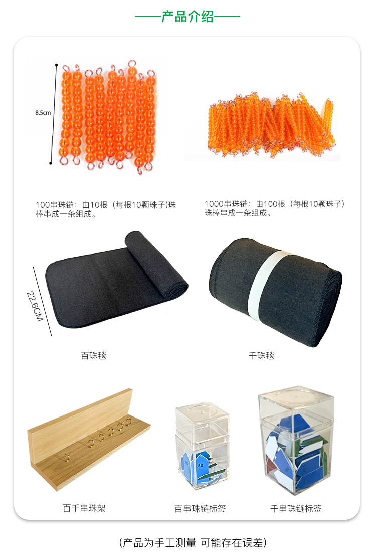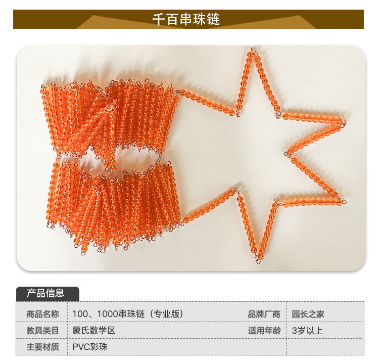 蒙氏数学教具100个1000个 串珠链博苑幼儿园蒙台蒙特梭利早教玩具