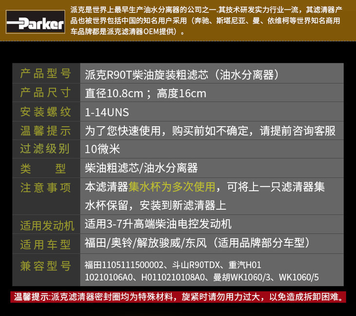 派克 柴滤粗滤 R90T/10微米