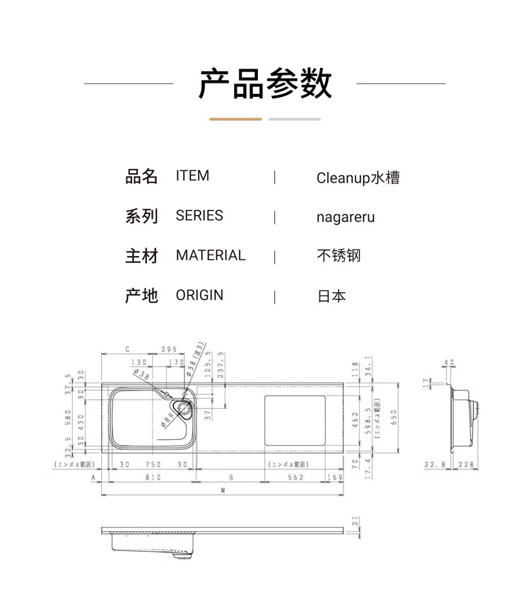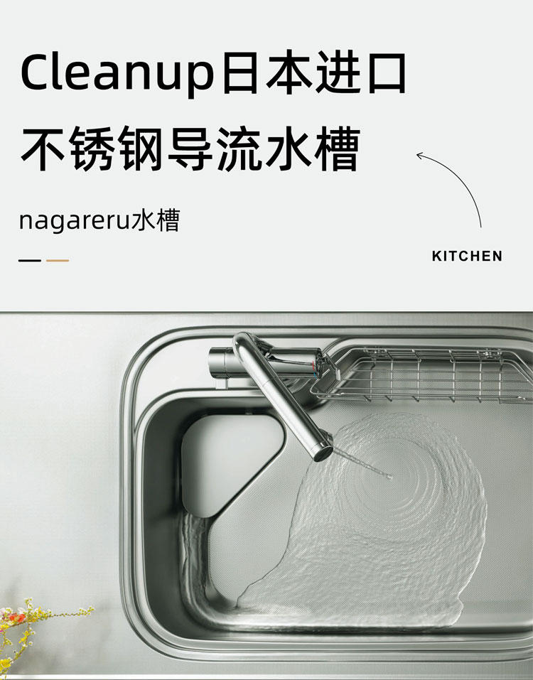 日本CLEANUP可丽娜不锈钢导流水槽nagareru大单槽(含砧板架+沥水篮)