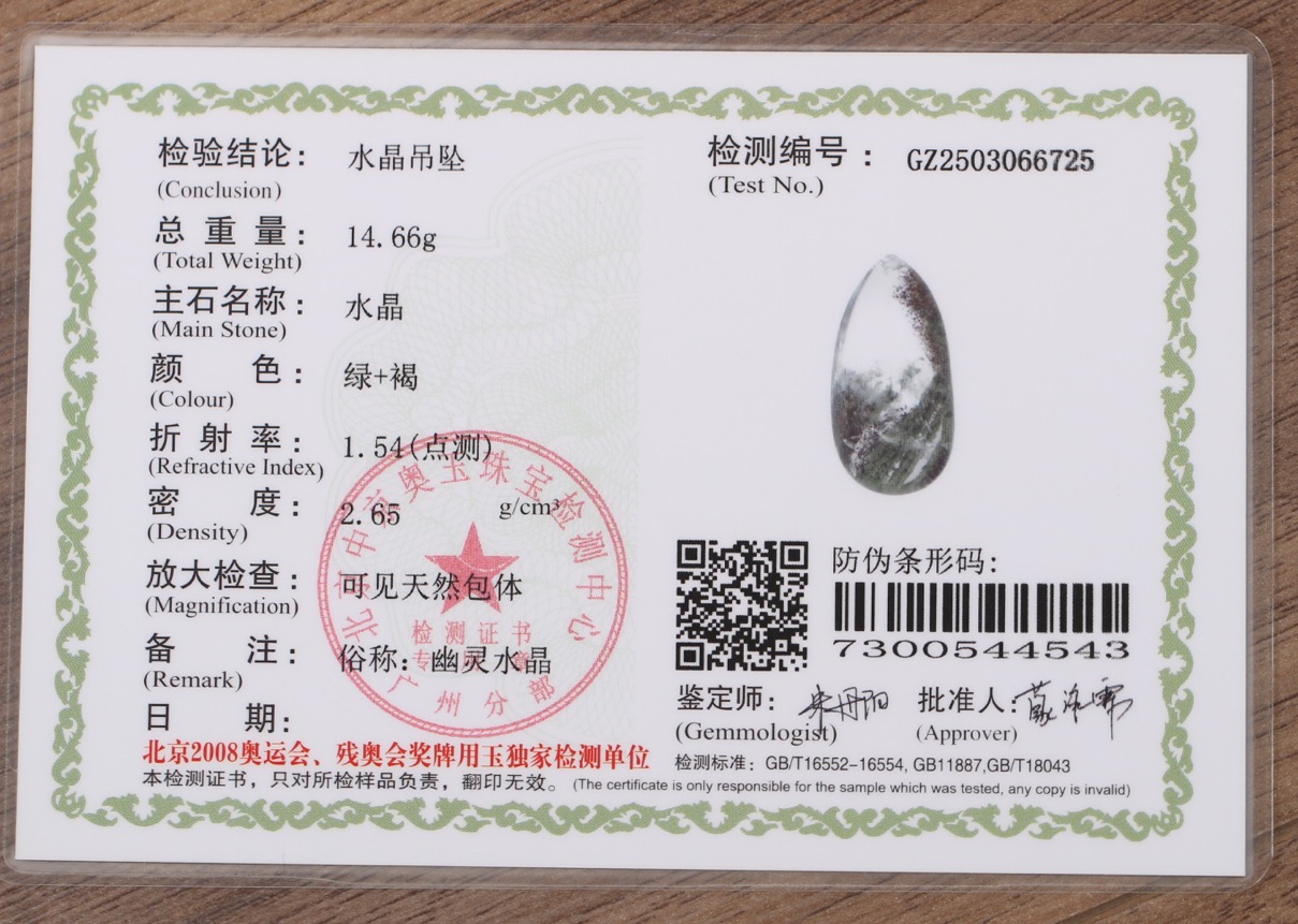【幽翠幻镜】绿幽灵水晶吊坠 配精美挂绳