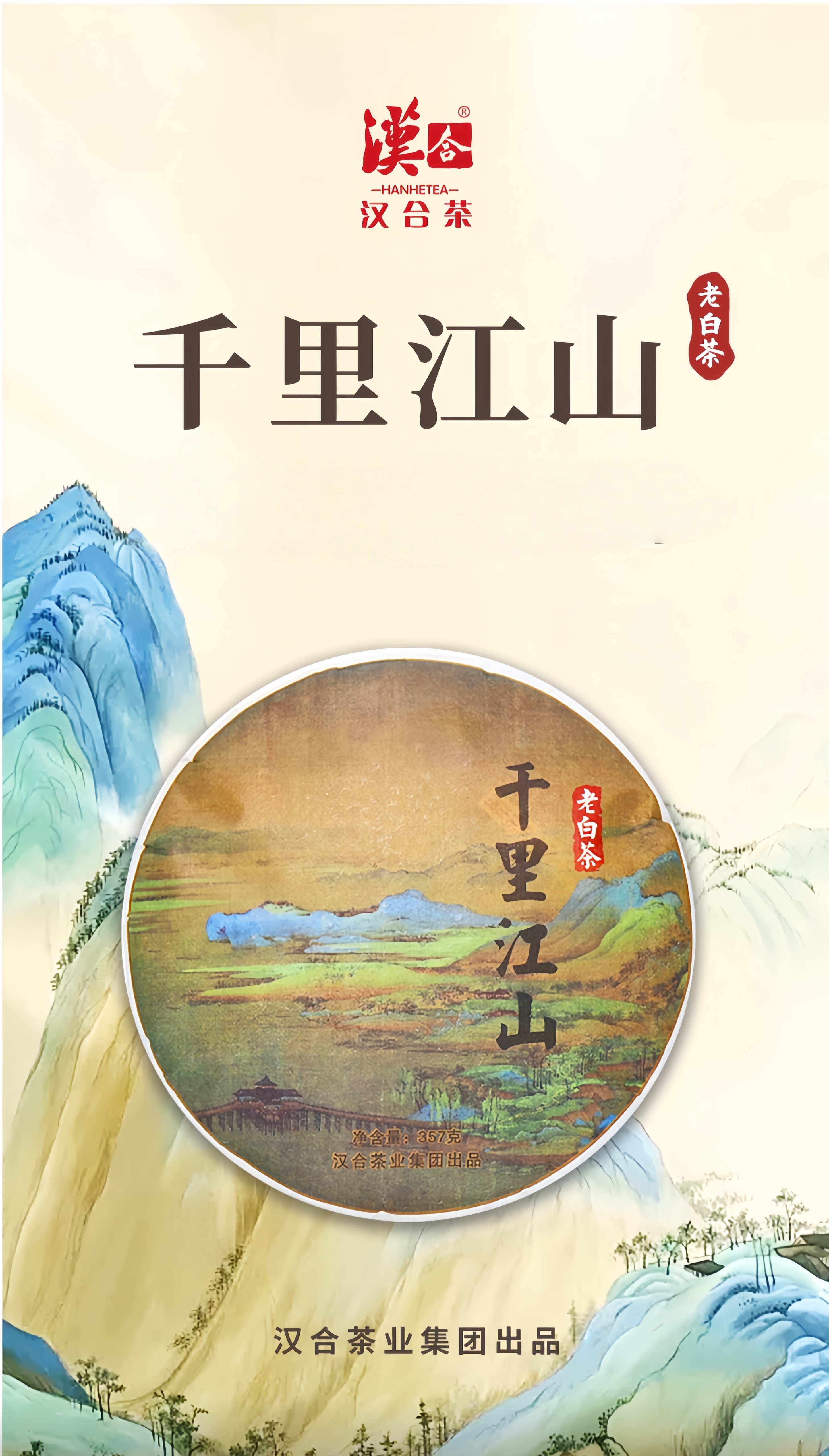 汉合茶 千里江山老白茶饼2019年 特级 春寿眉 357