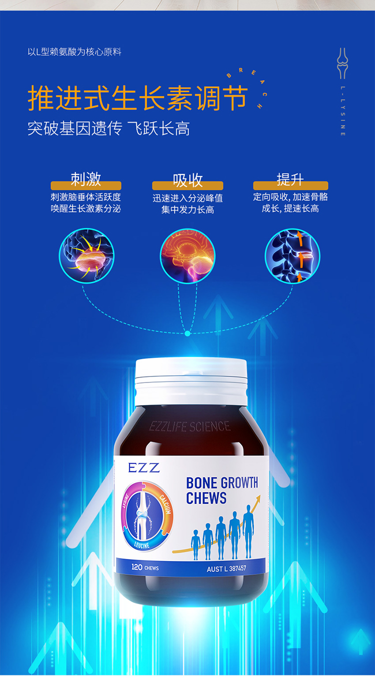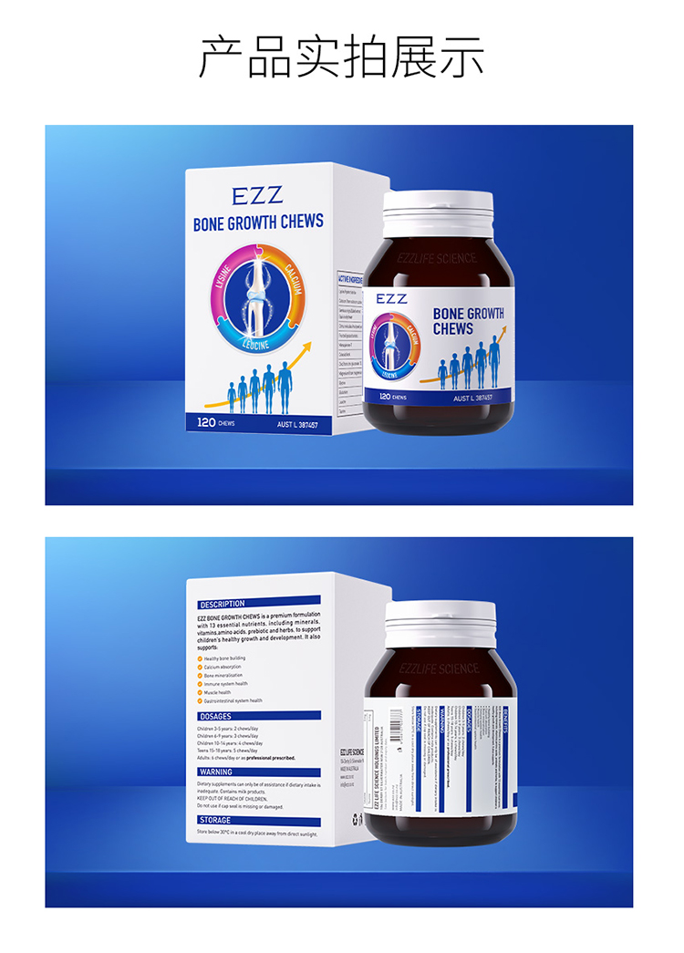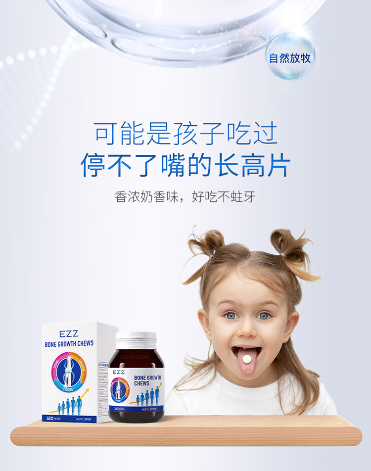 【ezz骨乐咀嚼片一代】儿童青少年学生成长发育,三效合一激发身高潜能,澳洲TGA认证增高补充剂,小孩子喜欢的味道