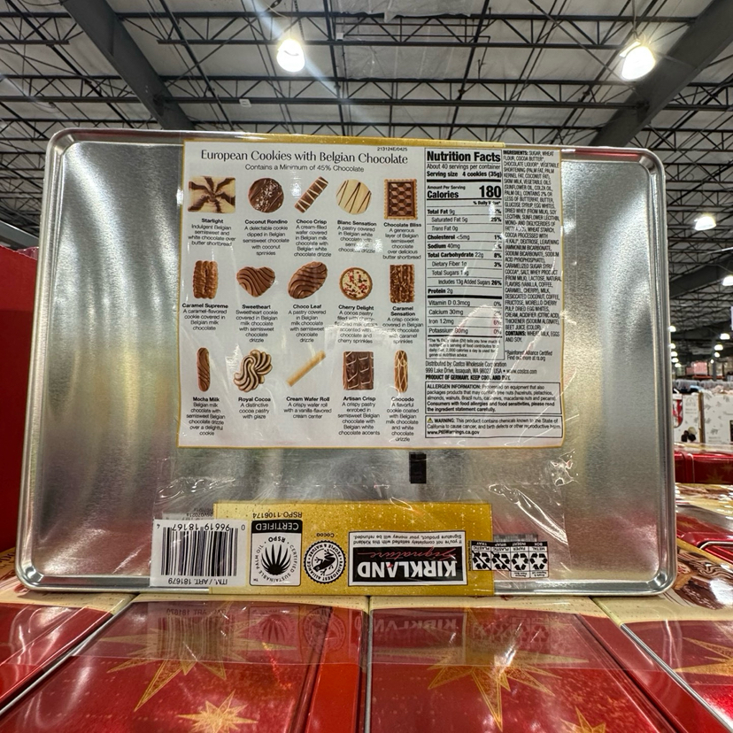 美国🇺🇸特价折扣340元🉐🉐直邮包税!Kirkland 多口味欧式比利时巧克力曲奇饼干礼盒。1.4公斤😋没有看错是 公斤,内含15种不同口味,上下两层。传统欧式口味,配奶茶,咖啡都是极好的。精美礼盒吃完了还可以做收纳盒😍一物多用~