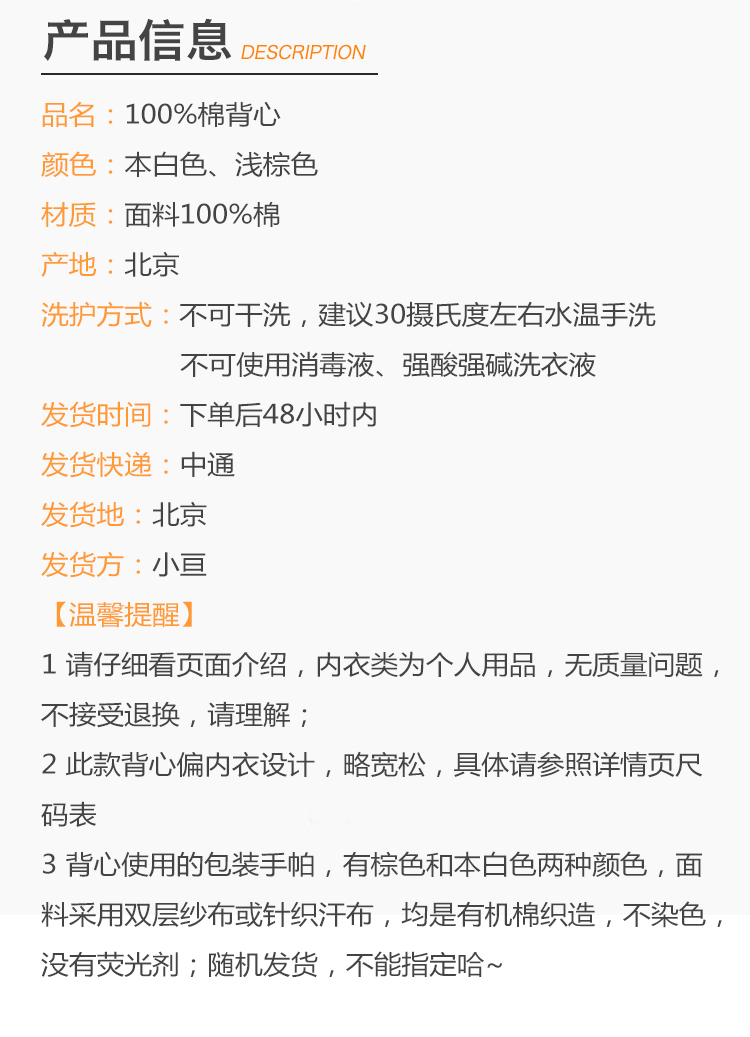 小亘纯棉短袖T恤 打底衣睡衣背心 本白色【贴身衣物非质量问题不支持退换、常规地区满120包邮】