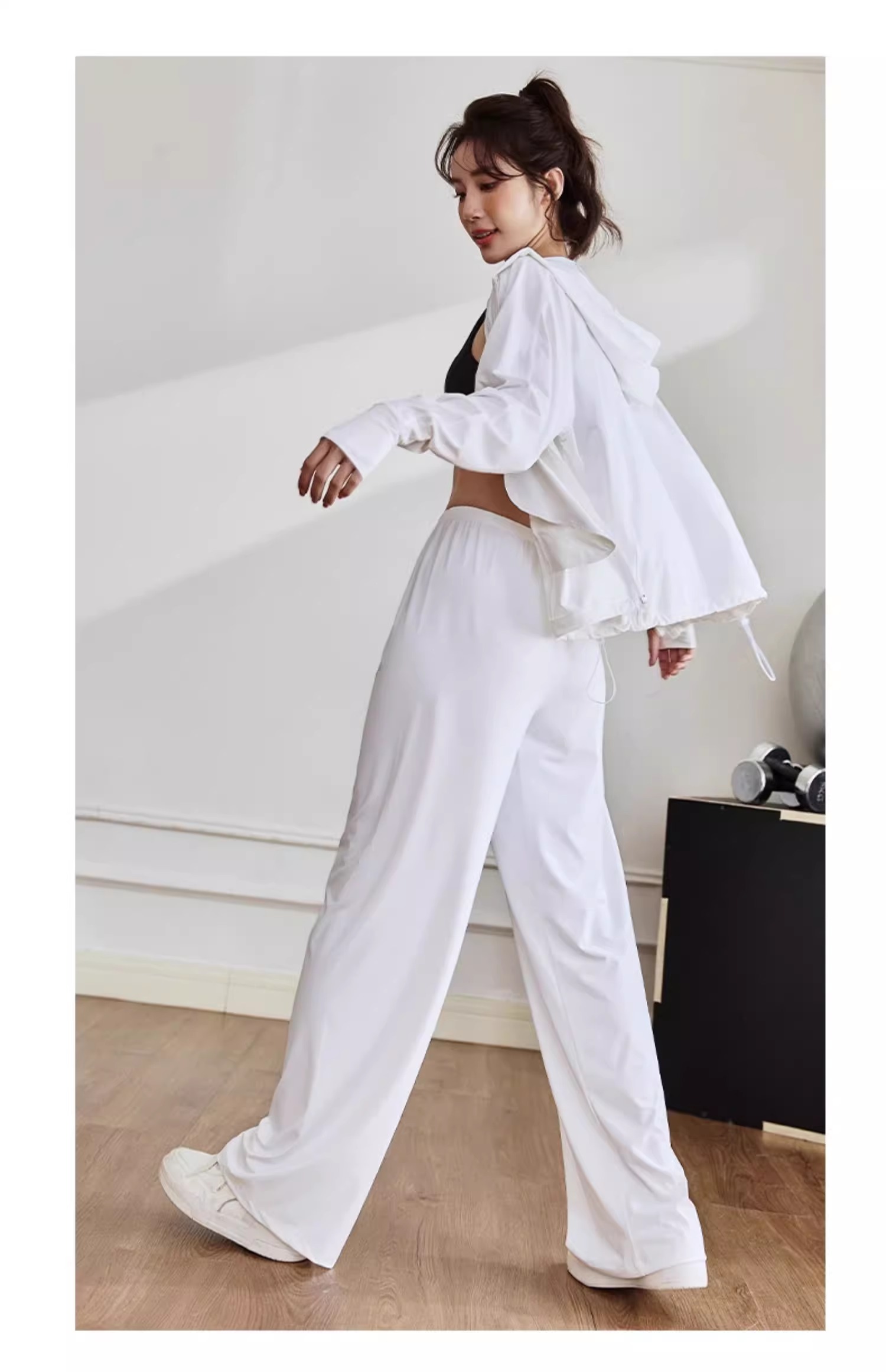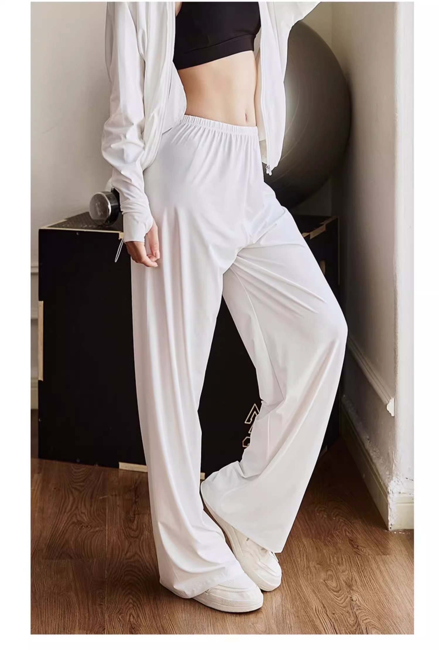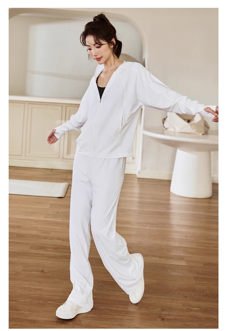 跃牌【周游世界系列】休闲裤女运动长裤白色直 筒高腰裤 PT2368